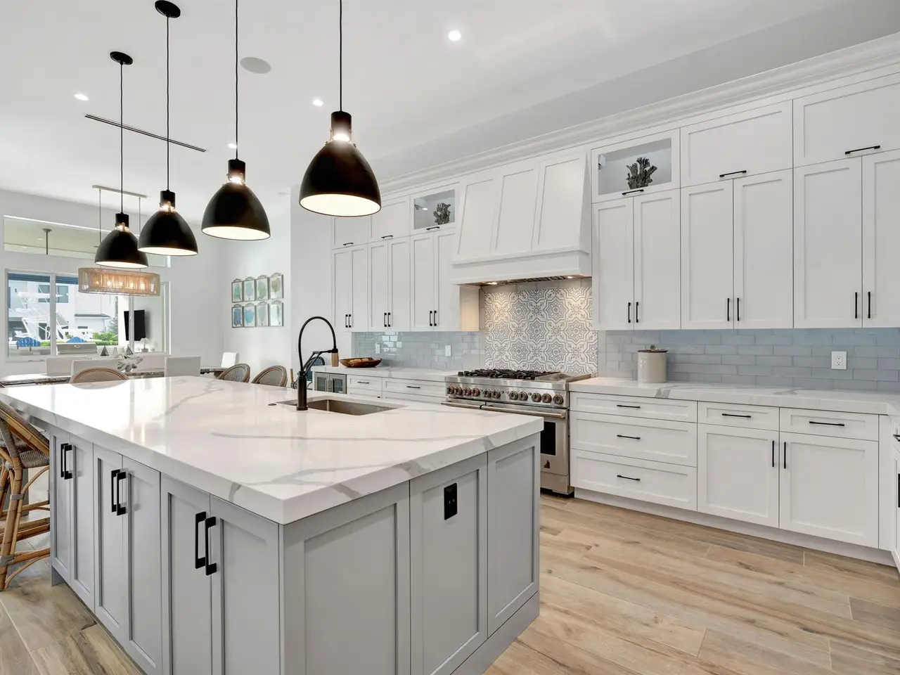Experience coastal living in this 2022 custom-built waterfront estate in prestigious North Palm Beach. Perfectly situated on 80 feet of direct water frontage with a brand-new seawall, private dock, and 24,000 lb. lift, this residence offers effortless access to the Intracoastal and Atlantic Ocean; ideal for yachting, sport fishing, or sunset cruising. Designed with timeless elegance and modern sophistication, the home features 4 bedrooms, 3.5 baths, a private study, and an oversized 2-car garage. The chef's kitchen, complete with a massive pantry and top-tier finishes, anchors the open-concept living space with soaring 12-foot ceilings, creating an atmosphere of understated grandeur. The serene primary suite is a private sanctuary with spa-inspired details and sweeping view of the water.