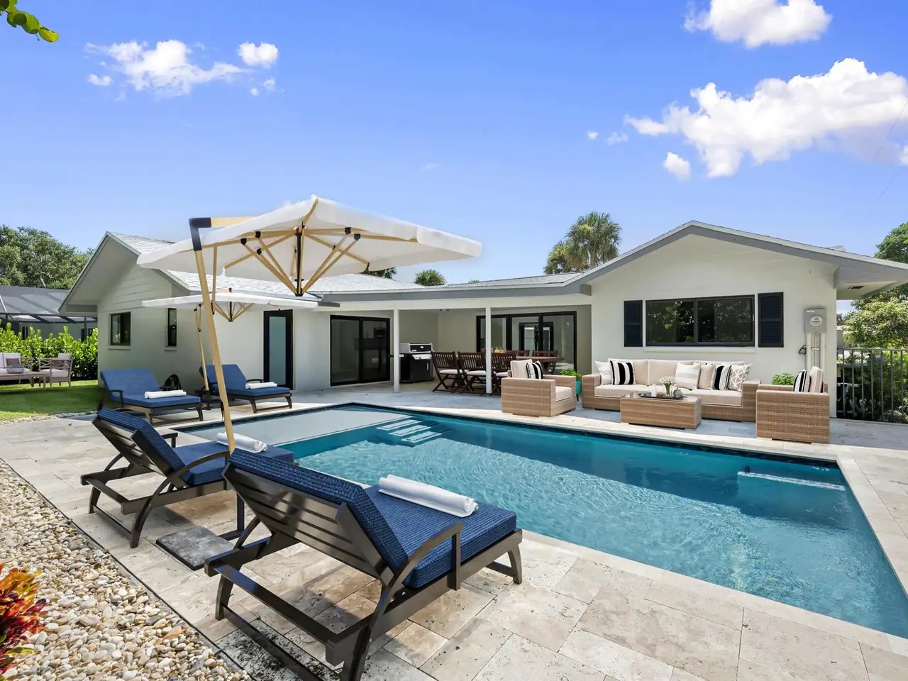 Discover unparalleled luxury in the highly sought-after Hidden Key - Gated and No HOA - neighborhood, where serene living meets the convenience of a prime location. Perfectly nestled across from the Intracoastal Waterway and just moments from pristine beaches, this pool home offers the ultimate Florida lifestyle. With shopping, dining, and the renowned JD McArthur State Park just around the corner, you're at the heart of it all. Step inside this beautifully updated residence and prepare to be impressed. A brand-new roof crowns the home, while impact doors and windows provide both safety and style. The centerpiece of the home is the expansive gourmet kitchen, reimagined with sleek stainless steel appliances, stunning quartz countertops, and ample space to fuel your culinary creativity.