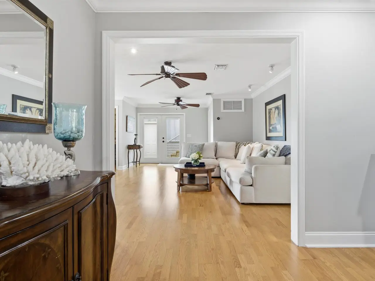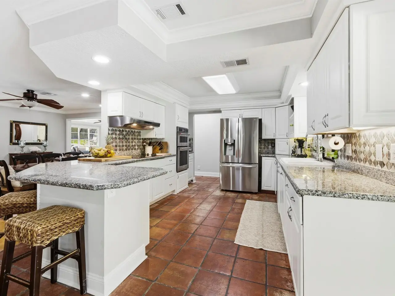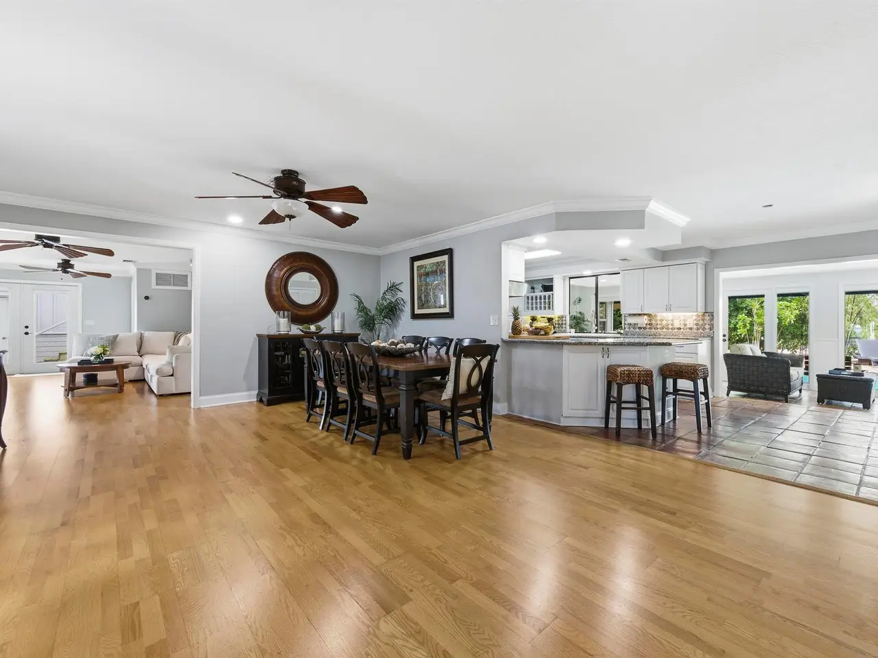 Located in the desirable Village of North Palm Beach, this waterfront residence blends coastal appeal with thoughtful design. The property features partial impact-rated windows, a metal roof, and a private dock with fish-cleaning station, offering direct canal access with fixed bridges leading to the Intracoastal Waterway and Atlantic Ocean. Inside, the home welcomes you with engineered hardwood flooring, recessed lighting, and crown molding throughout the main living areas. The open dining area connects to a well-appointed kitchen featuring granite countertops, a full tile backsplash, stainless-steel appliances. A breakfast nook and enclosed Florida room provide inviting spaces for dining or relaxation, complemented by a built-in cabinetry and reach in pantry.