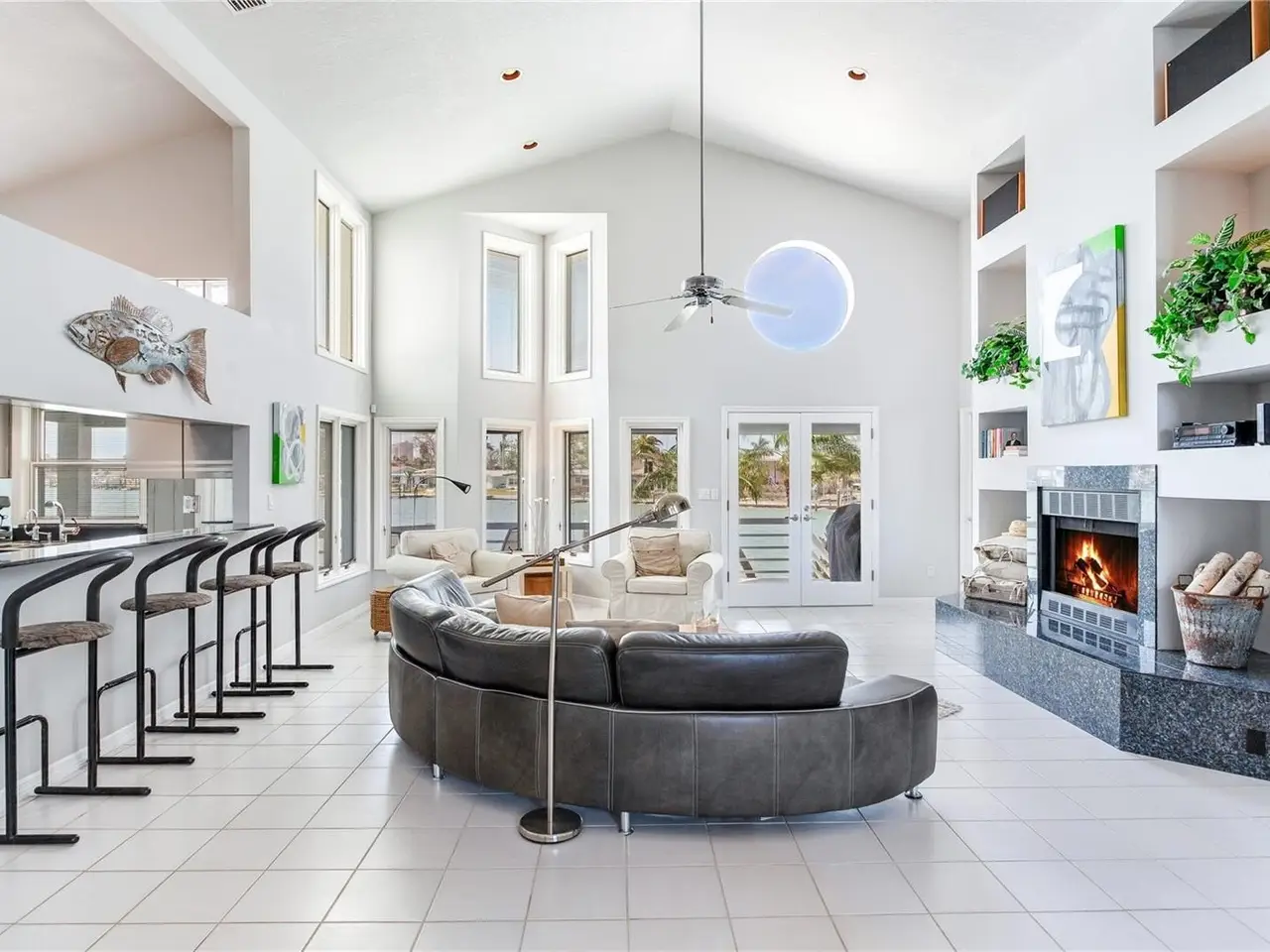 STUNNING ELEVATED CUSTOM-BUILT CONTEMPORARY HOME ON 107 FT OF WATERFRONT IN NORTH REDINGTON BEACH!! Welcome to your slice of waterfront paradise! Perfectly situated at the end of a quiet cul-de-sac, this architecturally unique residence boasts 107 feet of prime open water frontage with spectacular west-facing views—a front-row seat to unforgettable Florida sunsets. Step inside this 3-bedroom(3rd Bedroom has been opened up as a versatile loft space-perfect for a home office, den, or media area-but can easily be enclosed again with a door and half wall to restore full functionality), 3-bathroom home with 2,541 sqft of thoughtfully designed living space, where soaring vaulted ceilings and abundant natural light highlight the home’s open and airy feel. Nearly every room captures panoramic water views, bringing the beauty of the bay right into your living space. The spacious primary suite offers a true retreat, complete with a large walk-in closet and a spa-inspired en suite bath featuring a freestanding designer soaking tub, frameless glass shower, and dual vanities. The kitchen is perfectly positioned to overlook the living area and includes a cozy breakfast nook—ideal for morning coffee with tranquil water views. Luxury finishes throughout include granite countertops, a stunning pearl granite hearth, Pella windows, and storm panels. Step outside to the expansive balcony and enjoy your private dock, heated spa with fountains, and plenty of room for entertaining or unwinding in your peaceful bayfront oasis. The 107-foot seawall (installed in 2006) adds lasting value and peace of mind. Located just a short walk to the beach, near a city park, and surrounded by underground utilities for a clean, serene streetscape—this home seamlessly blends luxury, location, and lifestyle.