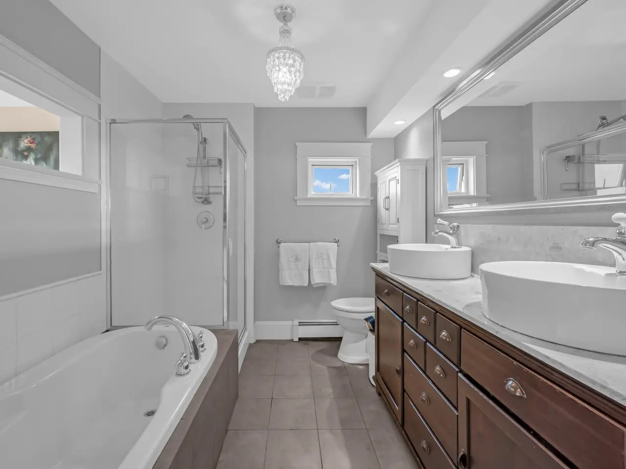 Beautiful spacious Lower Lonsdale character south facing view home, on desirable boulevard street, has it all! Architecturally remodeled 2518 sq ft, with feel of a detached home, maintaining heritage style. Offers spacious living with 4 bedrooms, 2 ½ bathrooms (luxury master suite with spa like bathroom), gourmet kitchen, pantry, formal dining area, large upper rec room with 360 view deck, laundry room, high ceilings, h/w floors & air con. Enjoy covered veranda overlooking fenced garden & decks boasting harbor, city & bridge views from all levels. Garage & Carport. Short stroll to Lonsdale Quay, Seabus, transit, Shipyards, Victoria Park, Spirit Trail, Schools, Hospital, Restaurants, etc. Will appeal to downsizer & growing families alike … a true gem! (priced below assessment).