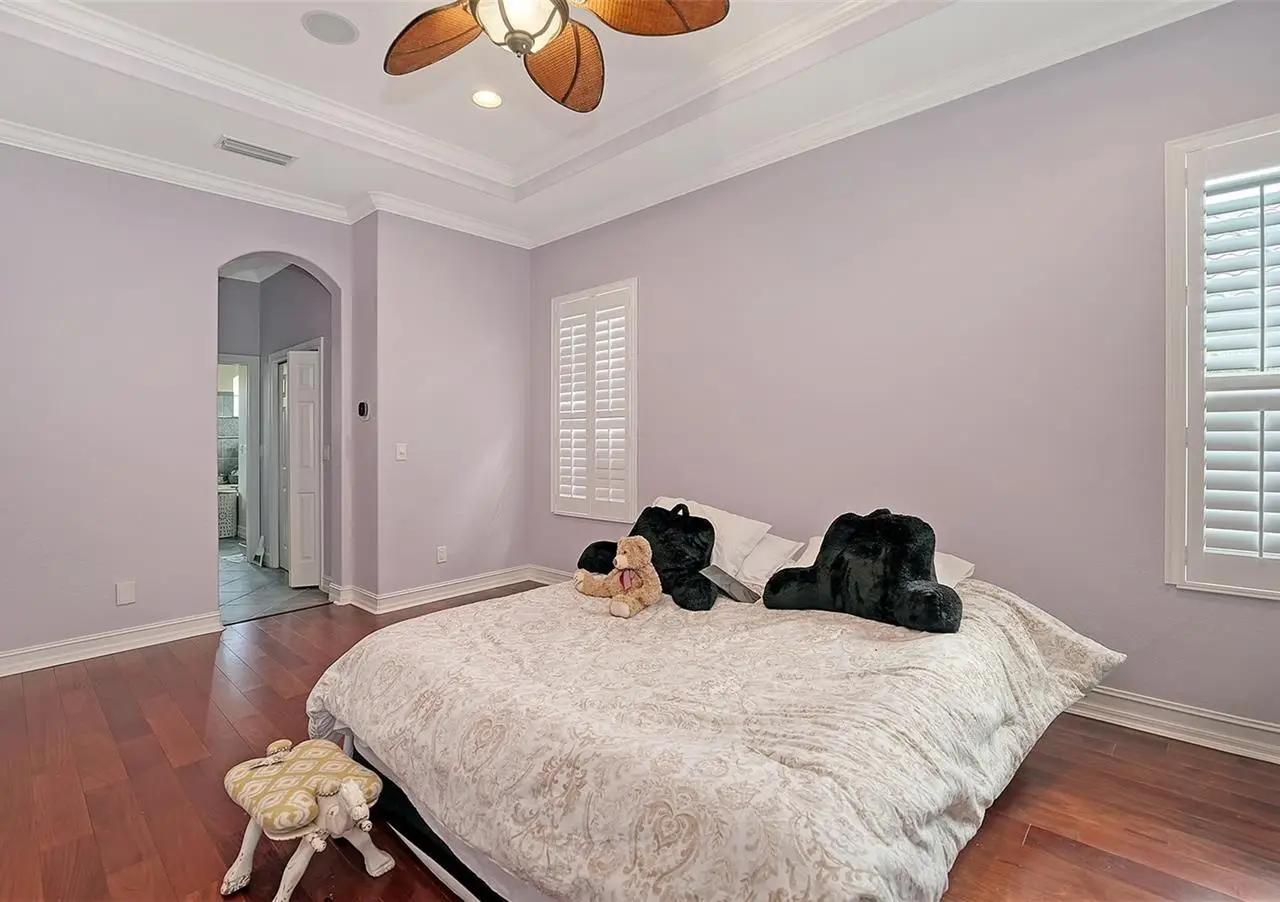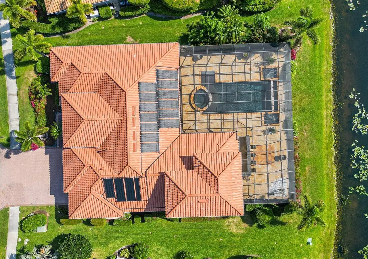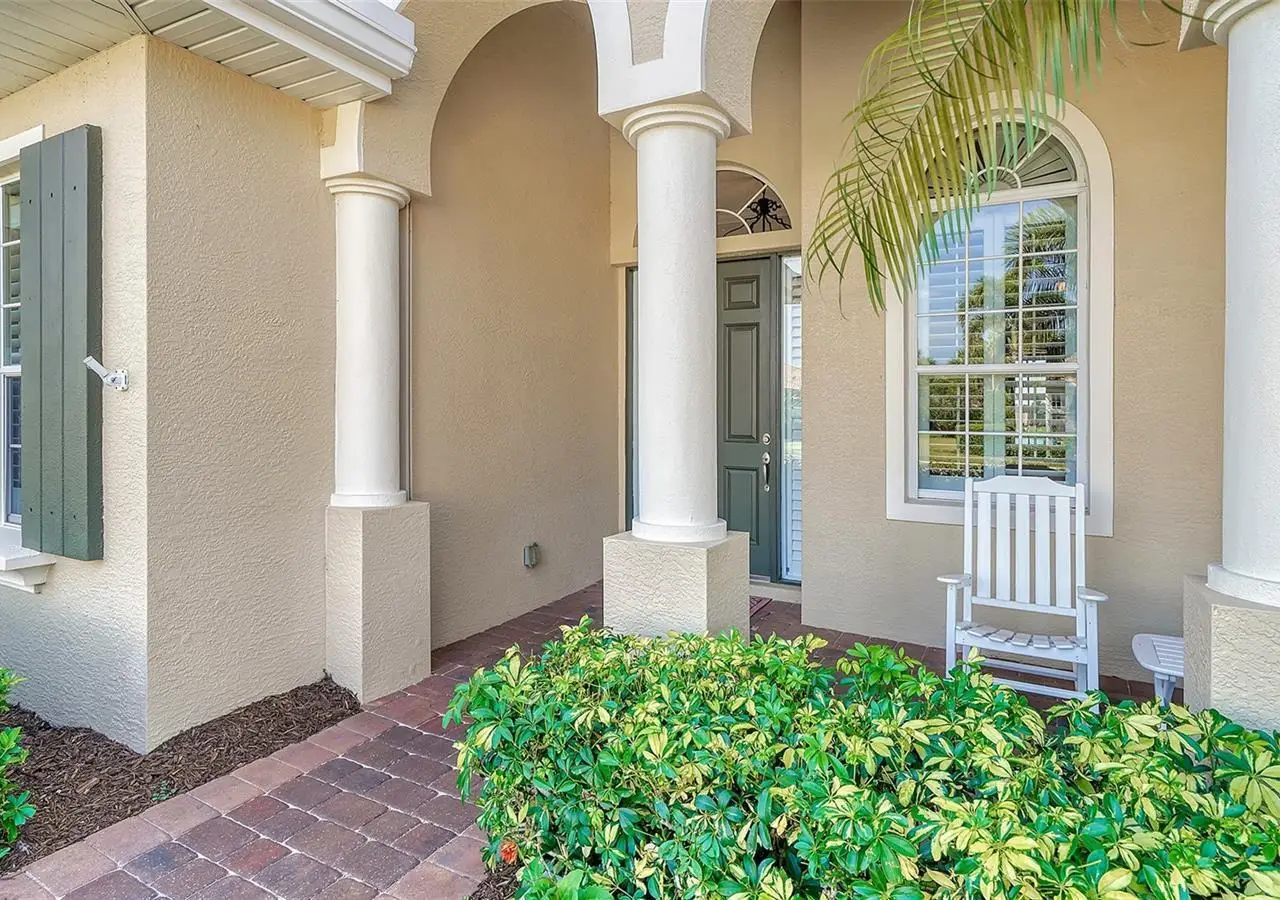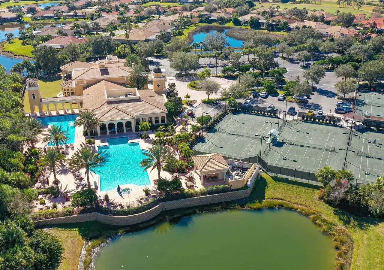 This is a WOW! You will ooh and ahh when you enter this elegant home. Prime lakefront lot with expansive views. The infinity saltwater pool literally flows into the lake and is heated with solar, gas & electric. The chef's kitchen features granite counters, island, breakfast bar, eat-in kitchen area with aquarium window, 6 burner gas stove top, Advantium oven/microwave, convection oven and warming tray, separate ice maker, 42' side-by-side refrigerator, two Bosch dishwashers. All bedroom closets have custom wood shelving. Master bedroom offers an additional sitting/exercise area. Master bath boasts a Jacuzzi tub, dual shower heads, double sinks & tile accents. The Den/library has gorgeous wood built in book cases. You will enjoy all the columns, crown molding, high end ceiling fans, tray ceilings, central vac, beautiful wood flooring, plantation shutters, hurricane shutters or impact windows throughout plus a whole house Generac gas generator with warranty. Barn door separates 2 of the bedrooms and bath. Upgraded A/C unit with air scrubber, electronic Air filtration system, & UV Bulb. Omnilogic Pool control system plus an autofill system. Whole house power cleaner and surge protector. 3 car garage with epoxy coating will hold all your toys & overhead storage. 24/7 security guard at gate. The golf club membership is separate and not required. Including a heated pool, a lap pool, tennis courts, fitness courts, restaurant and boardwalk down to the river. CDD fee is included in the tax amount. Minutes to beaches shopping, banking, restaurants & more. Truly a must see.