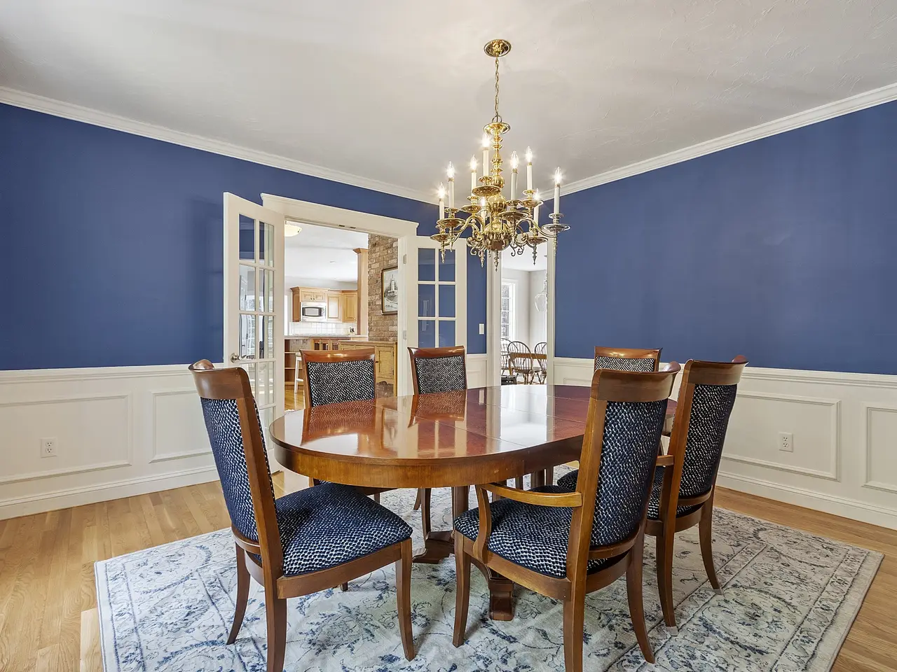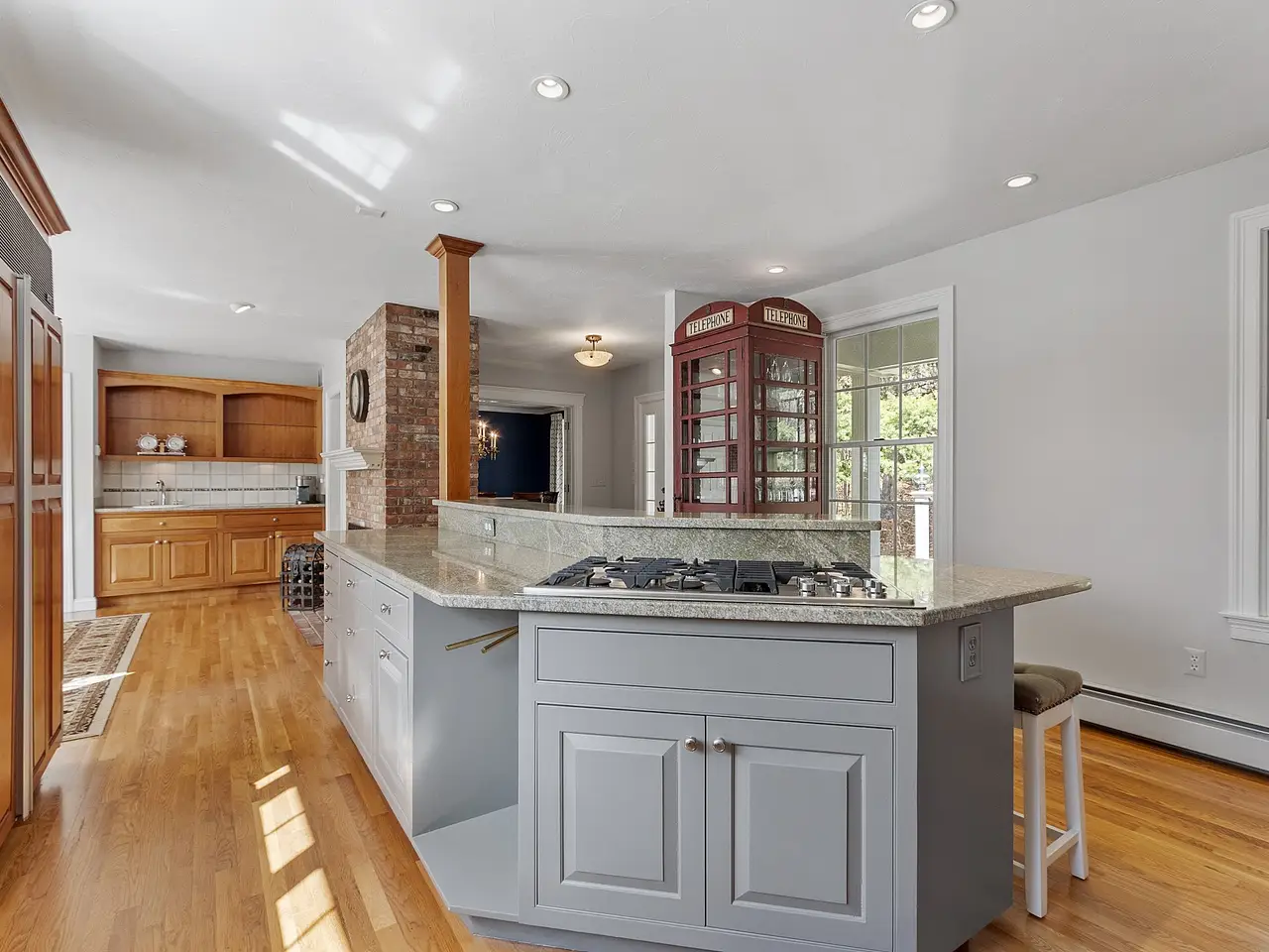 Tucked within a picturesque Currier & Ives–style setting, this bright Cape Cod home embodies classic New England living. Sunlight fills every corner, from the welcoming front approach to the rear façade with southern exposure. The sun-splashed four-season room overlooks a private, tree-lined backyard and flows to a sparkling in-ground pool and spacious patio—perfect for summer gatherings. Inside, craftsmanship shines in the upgraded cherry kitchen with fireplace, inset cabinetry, stainless appliances, and Sub-Zero refrigerator, plus a built-in coffee/wine bar. The wood-paneled fireplaced family room invites relaxation, while the formal dining room framed by French doors hosts memorable celebrations. A first-floor bedroom with bath offers guest or office space. Upstairs, the owner’s suite features sunlit windows, a custom walk-in closet, and spa-like bath. Two bedrooms, a loft, bonus room, and finished walkout level with playroom, bar, and bath complete this serene, commuter-friendly home