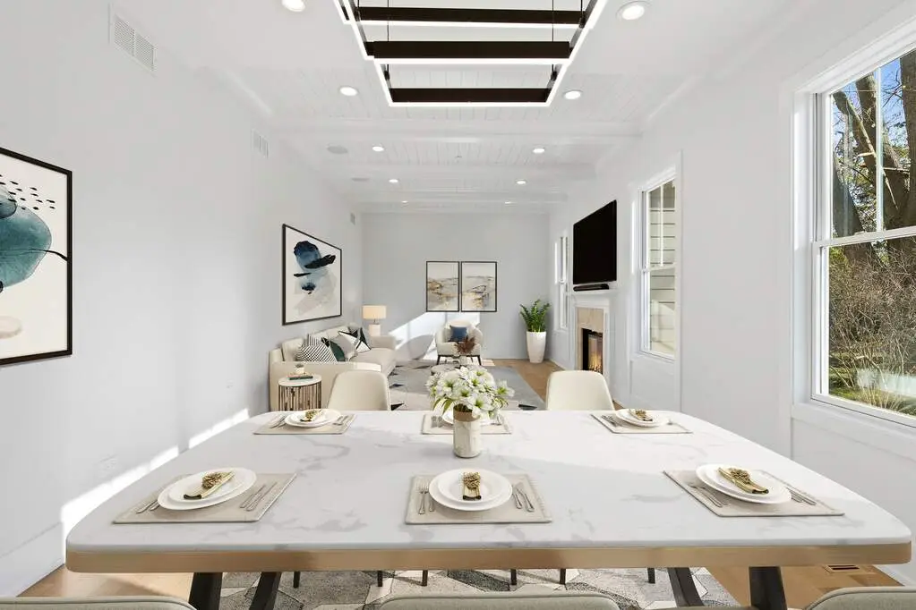 Luxury finishes with premiere amenities at your doorstep makes this stunning 5 bedroom, 3.5 bath new construction home a true winner with coveted Northbrook Schools. A sweet front porch welcomes you to this modern marvel with wide plank white oak flooring throughout. The 10ft ceilings and large Pella windows let the light shine in the open kitchen/dining/ family room with fireplace. Sliding glass door access to a stamped concrete patio in the private backyard backing up to a large park. The top of the line Chef's kitchen features custom cabinetry, TAJ MAHJAL Quartzite counters & Stainless Steel Thermador Appliances (48 in gas range with double oven and 38x84 in XL refrigerator). First floor flex space can be office or formal living/dining area. Attached 2 car garage with mudroom completes the main level. Head up the dramatic staircase with oversized window to the second floor featuring a spacious primary suite with 10ft vaulted ceilings, spa bath with double sinks, separate shower with bench, soaking tub and large walk-in closet. Three more bedrooms share a hall bath with convenient 2nd floor laundry room. Large attic has great storage space! Basement has amazing rec room with bar area featuring TAJ MAHJAL Quartzite counters and 72 in tall glass wine/beverage fridge. Full bath and fifth bedroom with large window well offers private space for guests or office. An incredible lifestyle awaits with easy access out your backyard to West Park / Northbrook Park District Sports Complex with pool, ice rinks, baseball field, tennis courts, volleyball court, park and more. Don't miss this amazing opportunity to customize your new home and move in before the holidays!