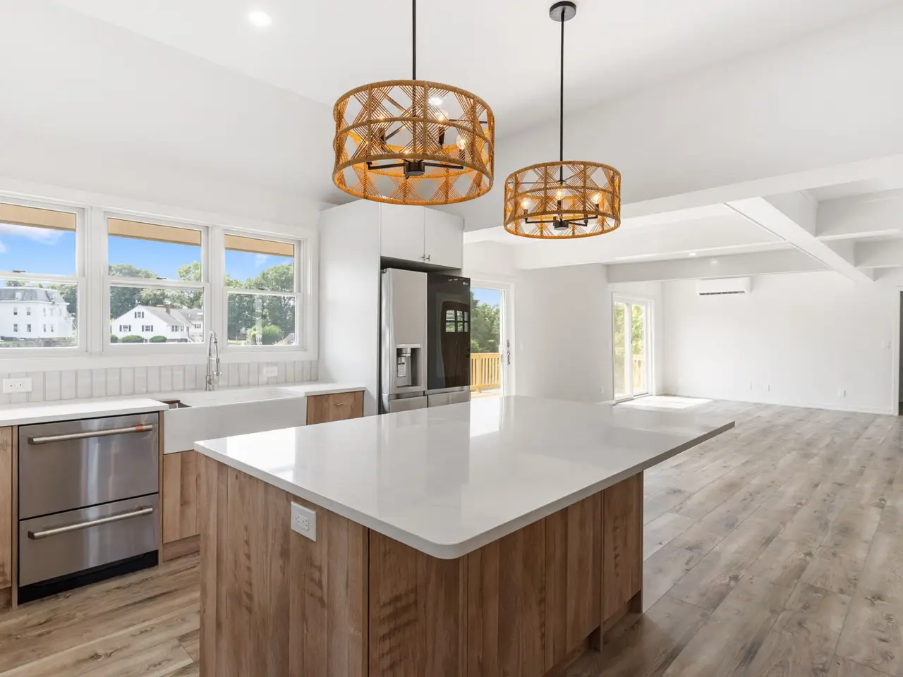 WATERFRONT! EAST NORWALK IN-TOWN! It's too good to be true. This fabulous completely renovated home has been totally reimagined by owner to take full advantage of the beautiful Mill Pond at the mouth of the East Norwalk Harbor. 2 recently built additions were added to bring this home into today's modern lifestyle. The entrance greets you with a wall of windows boasting a spectacular view of Mill Pond. The great room features coffer ceiling and plenty of room to entertain and dine. A stunning kitchen was added with everything today's buyers desire. Luxury appliances, large quartz island, gorgeous cabinets, wet bar and cathedral ceiling assures this room is the place to be. The oversized deck offers plenty of entertaining space with access to a lower patio. A stunning staircase invites you upstairs to a gracious hall leading you to two bedrooms, shared bathroom and laundry area. This split bedroom design offers separate primary suite with luxurious en-suite bath with custom shower, double sinks, large soaking tub and plenty of room to lounge. The large bedroom offers a balcony and high ceiling making it the perfect relaxing place. The bonus area in the home is the lower level. With walk out to a lovely patio overlooking pond, relaxing family room with wet bar. There's an another room that may be a bedroom or office and a full bath. Great walkable neighborhood, with restaurants, grocery, ice cream shops and minutes from SONO, Vets Park and East Norwalk RR station.