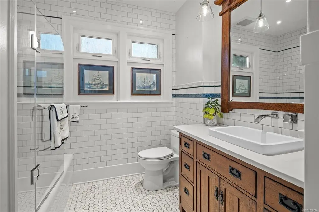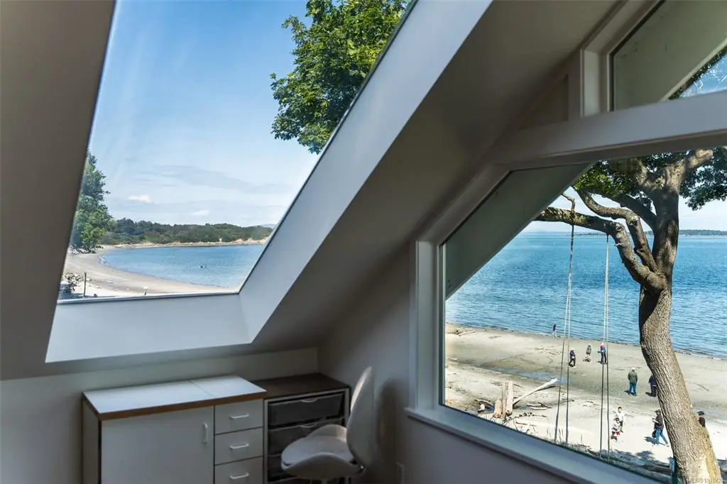 Welcome to The Esplanade – Victoria’s most beloved beachfront community. Tucked along the quiet, tree-lined side of sandy Willows Beach, this charming, fully renovated character home sits on an expansive 11,500-plus square foot lot. The primary residence offers three bedrooms, one bathroom, a custom kitchen with handcrafted rift-cut oak cabinetry, Sub-Zero appliances, in-line dining and a cozy home office with breathtaking 180° ocean views. Upstairs, the dramatic one bedroom loft suite features soaring 8-foot skylights, panoramic views and a 650 square foot rooftop patio made for sunsets. The walk-out basement includes two access points and provides room to expand or create two additional one bedroom suites. The versatile floorplan makes this an ideal multi-generational living opportunity. A private backyard filled with mature fruit trees and two separate driveways opens the door to future development. Rarely do homes come up for sale in this magical seaside setting on Willows Beach.