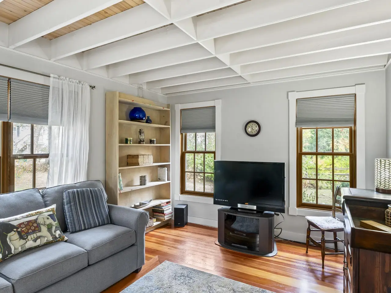 Custom-built 3-bedroom, 1.5-bath Oak Bluffs home on a quiet circle, offering a peaceful setting with convenient access to down-island attractions, charming town centers and year-round ferries. Features include a large primary bedroom, a convenient first floor bedroom, and an open kitchen dining area flowing to a spacious wooden deck and outdoor shower-perfect for indoor-outdoor living. Beautifully maintained with wood floors, skylights, and abundant natural light throughout, this move-in-ready home blends comfort and style. Ideal for year-round living or seasonal retreat.