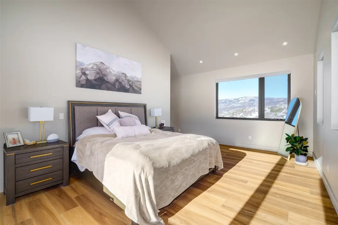 Welcome to 2355 Stageline Avenue, where luxury meets nature in this stunning mountain retreat. Offering 4,300+ sq. ft of living space, this home is designed for comfort, elegance, and breathtaking views. Step inside to vaulted ceilings that create an immediate sense of grandeur. The open-concept layout is perfect for entertaining, while floor-to-ceiling windows flood the space with natural light and panoramic mountain views. The primary suite is a true sanctuary, located on the top level for the ultimate in privacy and serenity. Boasting 8 large windows, this stunning retreat offers unobstructed views of Stagecoach Reservoir, ensuring you wake up to awe-inspiring scenery every day. The suite features motorized blackout shades for ultimate comfort and an opulent en-suite bathroom complete with an oversized soaking tub, LED mirrors, dual sinks, and a spacious walk-in closet. A versatile loft/flex space adjacent to the suite provides additional room for an office, reading nook, or yoga space. The heart of the home is the chef’s kitchen, boasting 26-ft cathedral ceilings, London blue cabinetry with gold finishes, THOR appliances, Calacatta Idillio Quartz countertops, and a subway tile backsplash. The built-in Sonos system ensures seamless sound throughout. Premium finishes include solid core driftwood-stained doors, Revere pewter trim, and custom baseboards. The fully finished basement offers a second living area, and a large 5th bedroom that could also be used as a rec room or bunk room, a large mechanical room with almost 500 sq. ft. of storage, and a walkout patio leading to a flat backyard. The exterior blends wood, metal, and black roofing for a modern, rustic appeal. Located 1.4 miles from Stagecoach Reservoir. Adjacent to nearly 2 acres of HOA-protected green space, with scenic walking trails just steps away. With its unparalleled craftsmanship, luxurious finishes, and spectacular surroundings, this home is a rare opportunity to own a piece of Colorado paradise.