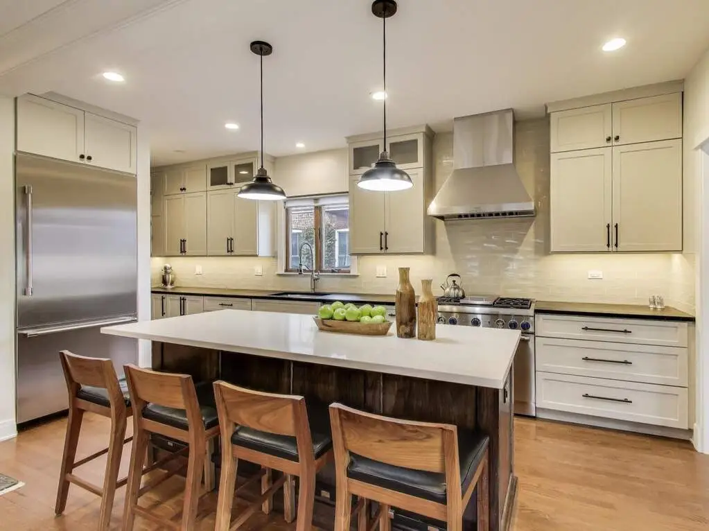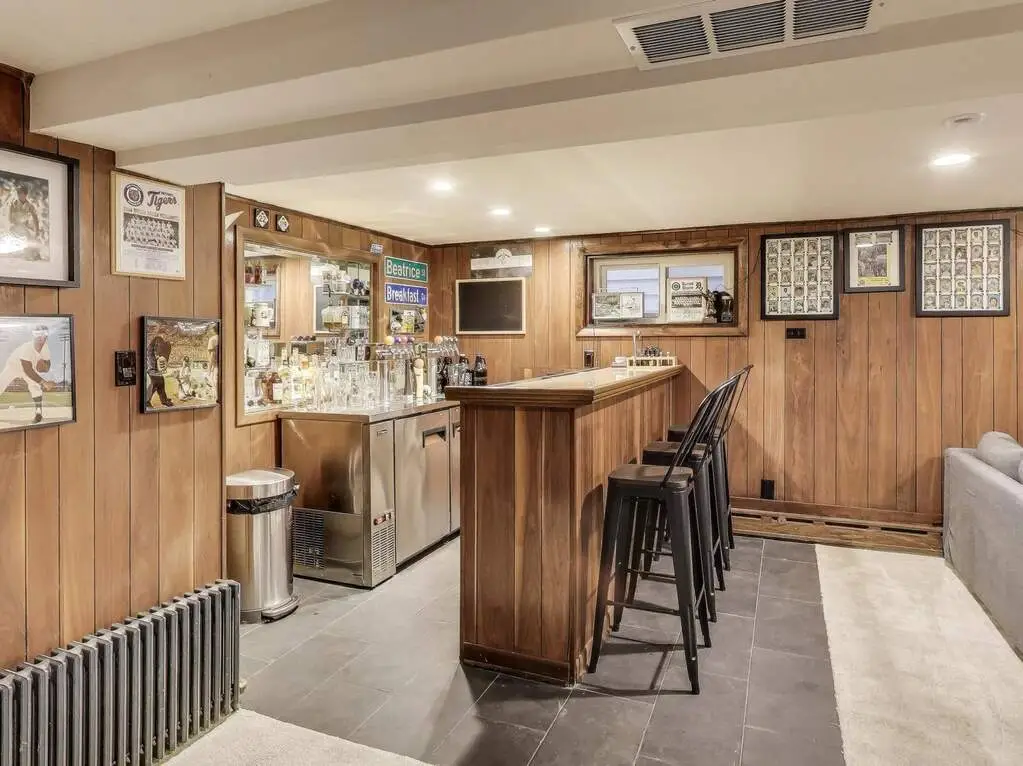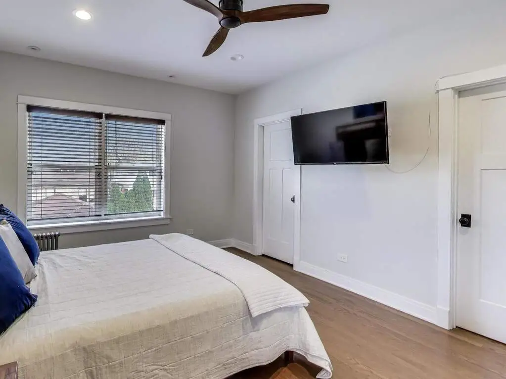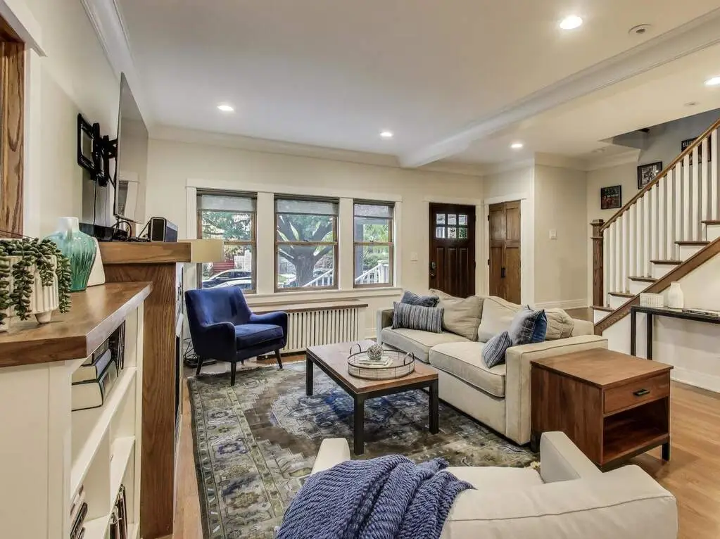 Welcome to this stunning, remodeled home nestled on a friendly, tree-lined street just moments from the city. Fully renovated to the studs in 2019, the open and inviting floorplan is flooded with light. The welcoming front porch was constructed with maintenance-free TimberTech and has the look of real wood with greater sustainability. Step inside to the spacious living room which includes a custom tile surround fireplace fueled by natural gas and enclosed with built-in bookcases which can also be enjoyed from the attached dining room. The kitchen is a showstopper and features a large island with quartz countertop. Oversized, gray cabinets outline the wall and are a striking contrast to the black, soapstone countertop. Thermador appliances, floating shelves, and a coffee nook are a few more touches that complement this incredible space. Directly off the kitchen is an attached family room and mud room with large, oak pantry and seating area with hooks. There is also a first-floor bedroom located off the dining room and full bath with custom tile and bathtub. The second floor features a large primary suite with a spa-like bath and dual walk-in closets. An adjacent laundry room with front loaders and custom, maple shelves for folding. And no need to lug around an ironing board since it folds out from the wall! There are two additional bedrooms and a large, hall bath with beautiful tile, heated floors, and large bathtub. A built-in, floor to ceiling bookcase is featured in the hallway next to the cozy sunroom drenched with light. White trim and baseboards bring a clean, modern finish to first two levels of this home. A fully finished mid-century basement is an entertainer's dream. The rec room features a bar with sink and shelving for beverages. The bar currently has an 8-tap kegerator (negotiable). The back of the basement presently serves as an in-law kitchen and brewery (appliances and equipment negotiable). The fourth bathroom is in the basement and is just as wonderful as the rest with a traditional Chicago style design with "daisy" pattern tile and a full, walk-in shower. Clad in Hardie Board siding, the oversized garage has a rear party door providing direct access to the paver patio. Steps to Oak Park Avenue restaurants and the Blue Line and easy access to the Eisenhower expressway. Beyond move-in ready!