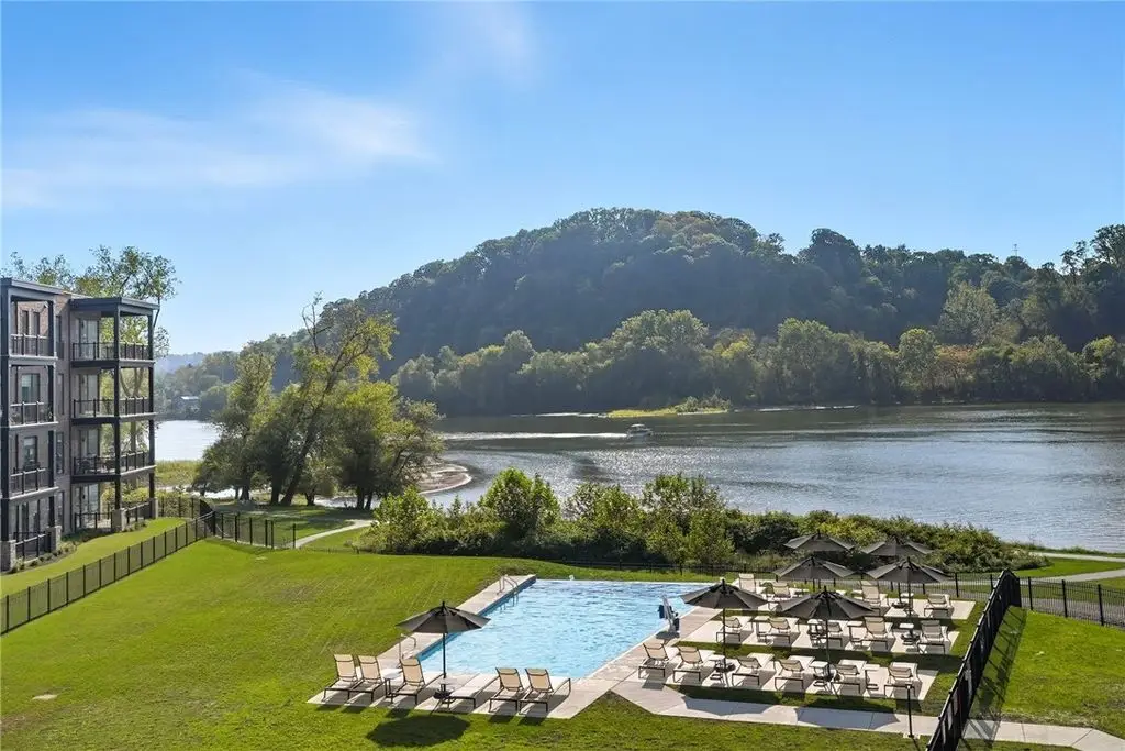 Discover The Brooks, a new resort-style condominium building along the Allegheny River within The River's Edge community. The Brooks condominiums promise an unmatched living experience with breathtaking views. This larger 2nd floor unit, spanning 1,471 sq ft, is located in the north wing of the building. Enjoy breathtaking water vistas from the living area & bedrooms, enhanced by tall windows & spacious covered balcony. A beautifully designed kitchen awaits, showcasing an oversized island, stainless appliances & sleek quartz countertops. Adjacent is a versatile den, perfect as eat-in kitchen or home office. Resort-style amenities include a large lobby with water views, meeting rooms, fitness center, & outdoor infinity pool. Indoor garage parking or private garage available for add'l cost. HOA fee includes water, sewer, trash, cable, internet, building maint/insurance. Property not yet assessed. Renderings/pictures shown for illustration purposes only/photos may not be of unit listed.