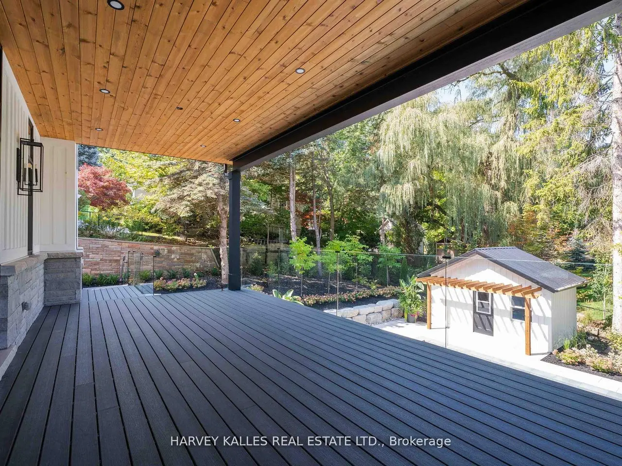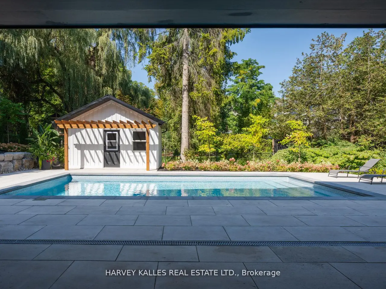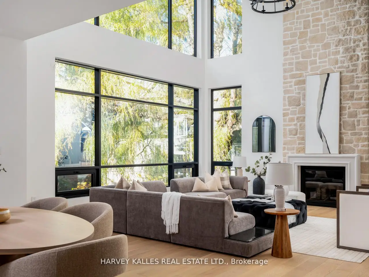 Tucked away on a coveted cul-de-sac in South Oakville, just steps from Lake Ontario, stands a residence that feels as much a work of art as it is a home. Designed by architect David Smalls, this 6,500sq.ft. haven is a study in quiet luxury where proportions, textures, and natural light compose an atmosphere of effortless refinement. From the moment you enter, the foyer reveals the homes narrative: a seamless dialogue between architecture and nature. Towering windows in the living room frame a canopy of mature trees, dissolving the boundaries between indoors and out. The kitchen is a chefs sanctuary, anchored by an oak island, marble countertops, and integrated appliances. A discreet, well-appointed servery hides just beyond, while the adjacent formal dining room invites candlelit evenings and intimate gatherings. A covered deck, complete with outdoor fireplace, extends the living space, while the organized mudroom and powder room round out the main levels composition. Upstairs, the primary suite is a private retreat of understated opulence, offering dual walk-in closets and a spa-like ensuite swathed in natural stone. Down the hall, three additional bedrooms each boast their own walk-in closets and ensuite or Jack-and-Jill bathrooms. The walk-out lower level is conceived for whole-home living: a gym, office, guest bedroom, and entertaining area with gas fireplace and wet bar open directly to the outdoors. Here, a covered terrace spills onto the backyards crown jewela heated saltwater pool framed by lush landscaping for ultimate privacy. Every detail has been considered: 10ft. ceilings on the main floor, 9ft. ceilings above and below, heated tile floors, three fireplaces, a three-car tandem garage, central vacuum, irrigation, and a smart-home lighting system. Set within walking distance to Downtown Oakville, moments from top public and private schools, this home is a sanctuary for those who value architecture that whispers its luxury rather than shouts it.