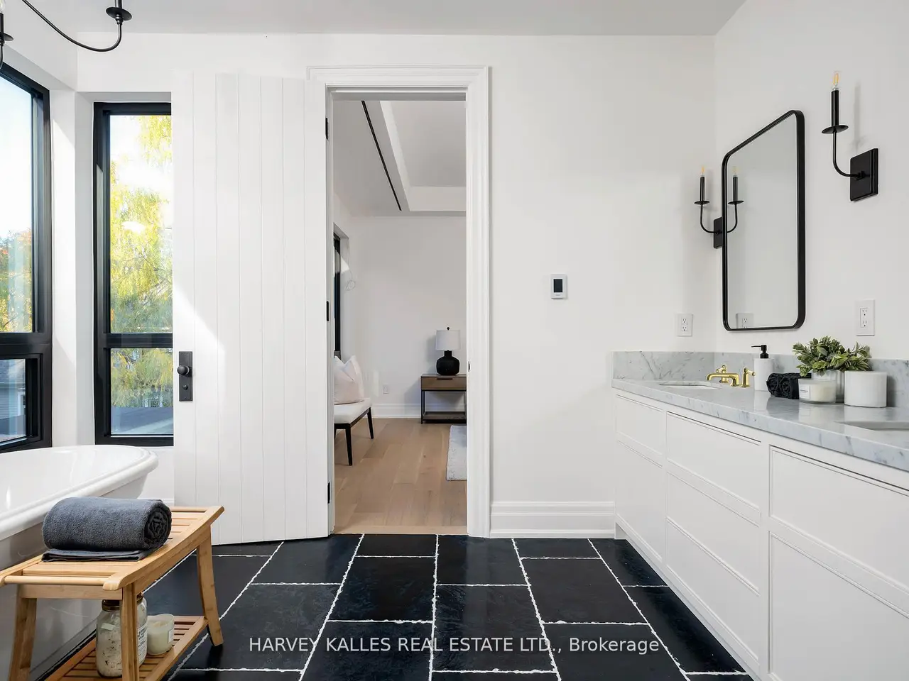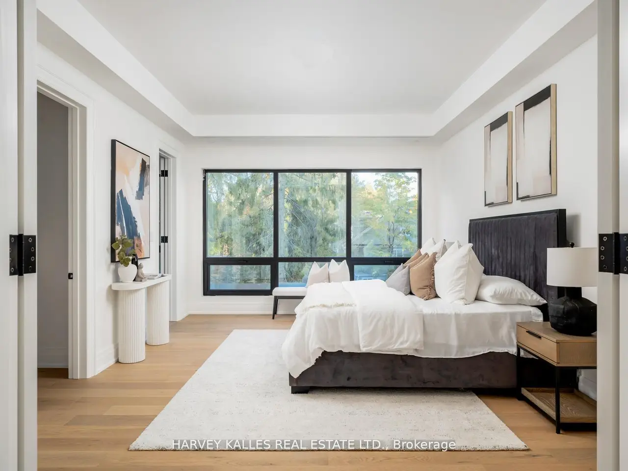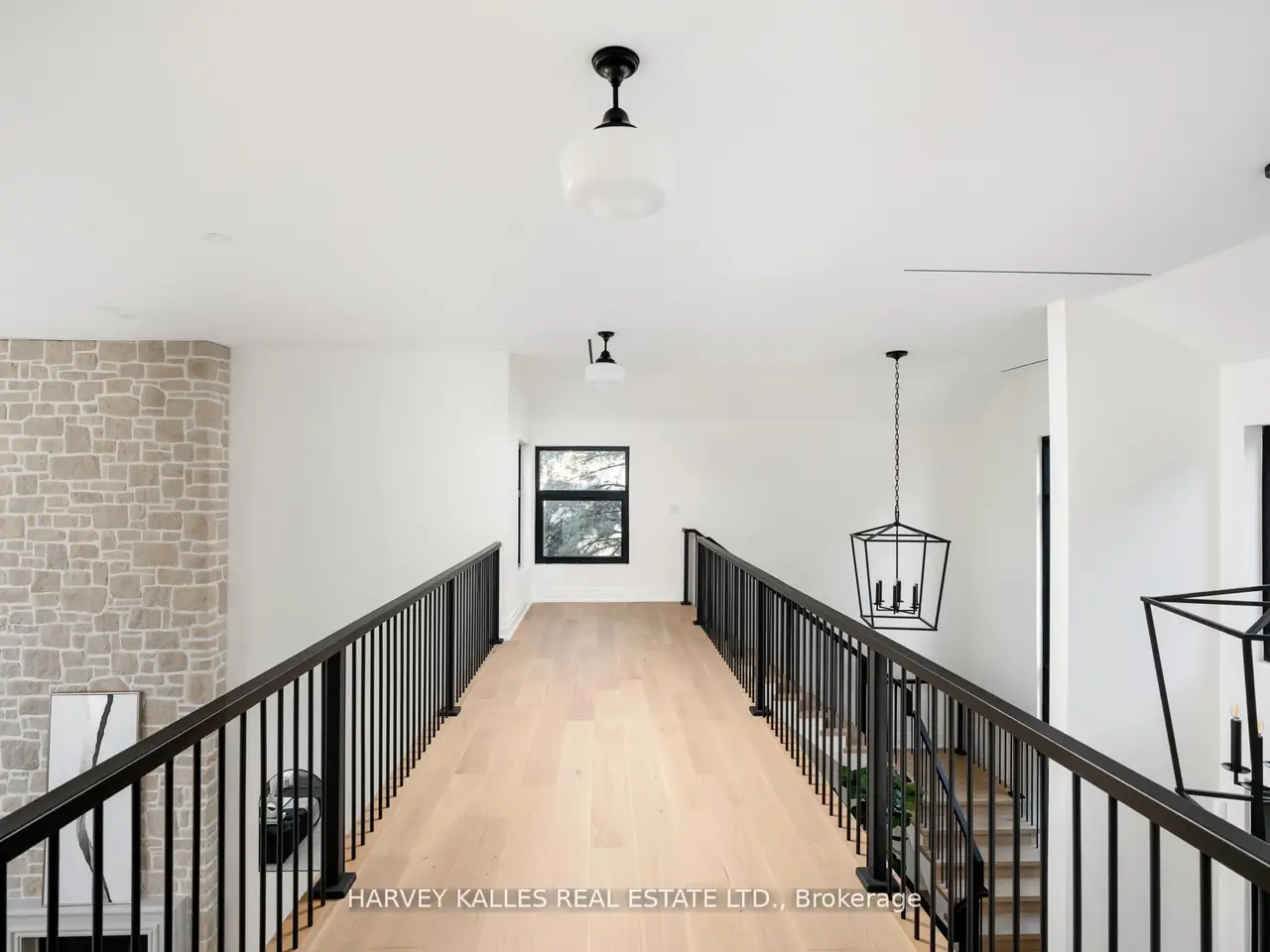 Tucked away on a coveted cul-de-sac in South Oakville, just steps from Lake Ontario, stands a residence that feels as much a work of art as it is a home. Designed by architect David Smalls, this 6,500sq.ft. haven is a study in quiet luxury where proportions, textures, and natural light compose an atmosphere of effortless refinement. From the moment you enter, the foyer reveals the homes narrative: a seamless dialogue between architecture and nature. Towering windows in the living room frame a canopy of mature trees, dissolving the boundaries between indoors and out. The kitchen is a chefs sanctuary, anchored by an oak island, marble countertops, and integrated appliances. A discreet, well-appointed servery hides just beyond, while the adjacent formal dining room invites candlelit evenings and intimate gatherings. A covered deck, complete with outdoor fireplace, extends the living space, while the organized mudroom and powder room round out the main levels composition. Upstairs, the primary suite is a private retreat of understated opulence, offering dual walk-in closets and a spa-like ensuite swathed in natural stone. Down the hall, three additional bedrooms each boast their own walk-in closets and ensuite or Jack-and-Jill bathrooms. The walk-out lower level is conceived for whole-home living: a gym, office, guest bedroom, and entertaining area with gas fireplace and wet bar open directly to the outdoors. Here, a covered terrace spills onto the backyards crown jewela heated saltwater pool framed by lush landscaping for ultimate privacy. Every detail has been considered: 10ft. ceilings on the main floor, 9ft. ceilings above and below, heated tile floors, three fireplaces, a three-car tandem garage, central vacuum, irrigation, and a smart-home lighting system. Set within walking distance to Downtown Oakville, moments from top public and private schools, this home is a sanctuary for those who value architecture that whispers its luxury rather than shouts it.