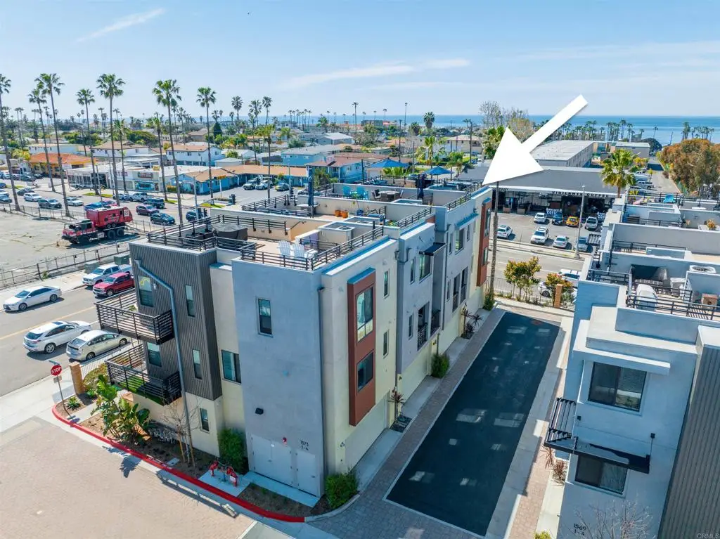 Experience the epitome of coastal luxury with this spectacular 3-bedroom, 3.5-bath townhome located west of I-5 and only a couple blocks to the beach! Situated in a coveted corner location, this property offers sweeping panoramic ocean views from its expansive rooftop deck--no need to look over other decks to take in the stunning coastline! Enjoy breathtaking sunsets as well as the surrounding mountains and city lights. Built in 2019, this home is thoughtfully designed with modern finishes and high-end upgrades. The spacious 1,951 sqft layout features a first-floor bedroom with a private full bathroom, ideal for guests or a home office. The open-concept second floor includes a gourmet kitchen with stainless steel appliances, quartz countertops, a large center island, and a sleek dining and living area that seamlessly flows onto a balcony--perfect for entertaining. The third floor boasts a luxurious primary suite with ocean views, a walk-in closet, and an impeccably upgraded en-suite bath with a large walk-in shower and double vanity. A second en-suite bedroom on the same level offers additional comfort and privacy. The highlight of this townhome is the stunning rooftop deck--complete with custom kitchen with barbecue, fire table, and ample space to host gatherings while soaking in the panoramic ocean views. Additional features include custom epoxy floor in garage, custom closets, custom garage cabinets, air conditioning, smart home controls with intercom iPads on each floor. Option to purchase completely furnished for an additional cost, so you can enjoy your new home right away!