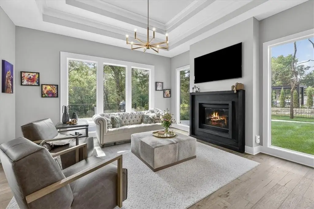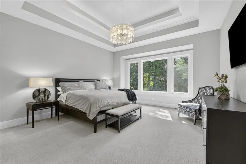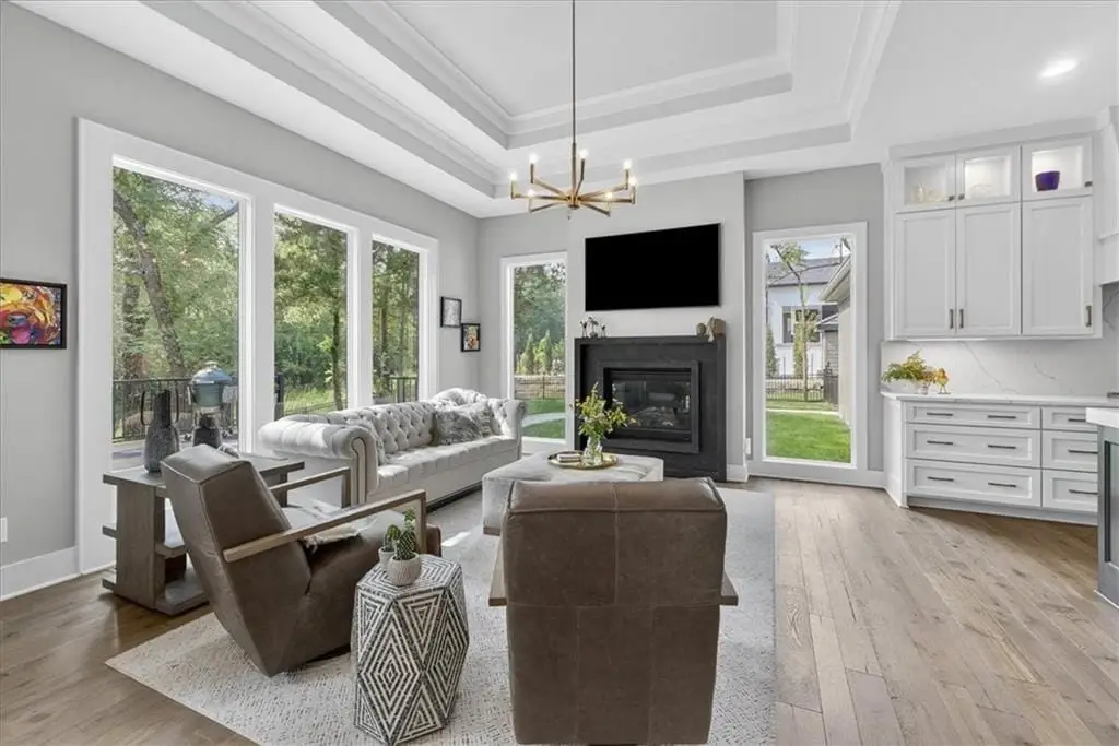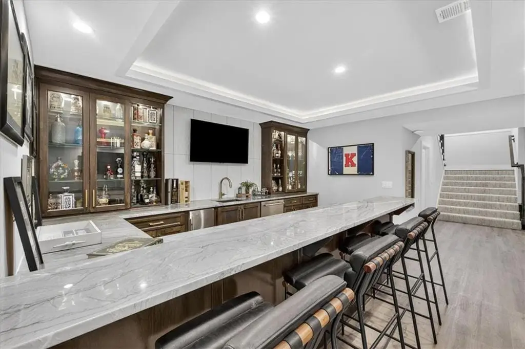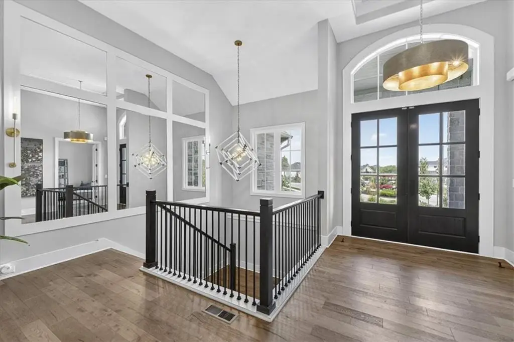 Luxury and modern elegance converge in this custom reverse 1.5-story by Kessler Custom Homes, ideally located in Cedar Creek's coveted Hidden Lake Estates. Situated on a .66-acre treed cul-de-sac lot, this 4-bed, 4-bath showpiece offers nearly 5,000 square feet of impeccably designed living space with a walkout basement and oversized 4-car side-entry garage with epoxy floors. The chef's kitchen is a dream, featuring top-of-the-line BlueStar appliances, six ovens, a massive quartz island, custom cabinetry, and a walk-in butler's pantry that doubles as a prep kitchen or secondary office. The open main level boasts vaulted ceilings, exposed beams, designer lighting, hardwood floors, and built-in speakers throughout. A dramatic wall of windows and sliding doors open to a stamped concrete patio overlooking the private, fully fenced backyard. The luxurious primary suite features two walk-in closets and a spa-worthy bath with floating vanities, herringbone tile, soaking tub, and dual-head walk-in shower. The lower level offers a full wet bar with ice maker and dishwasher, glass-enclosed wine cellar, game room, and two spacious bedrooms with ensuite baths and private patio access. Enjoy direct access to Cedar Creek's resort-style amenities, including a 65-acre lake, multiple pools, clubhouse, trails, tennis, and Shadow Glen Golf Club just minutes away.
