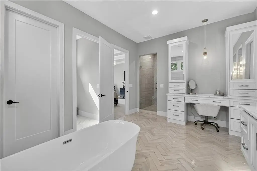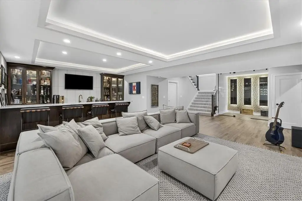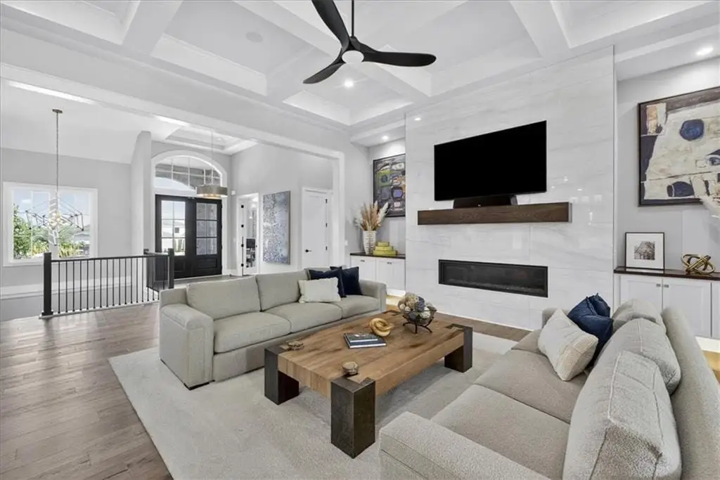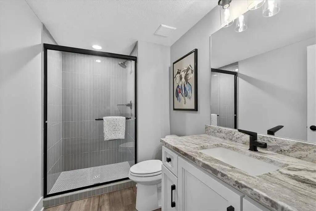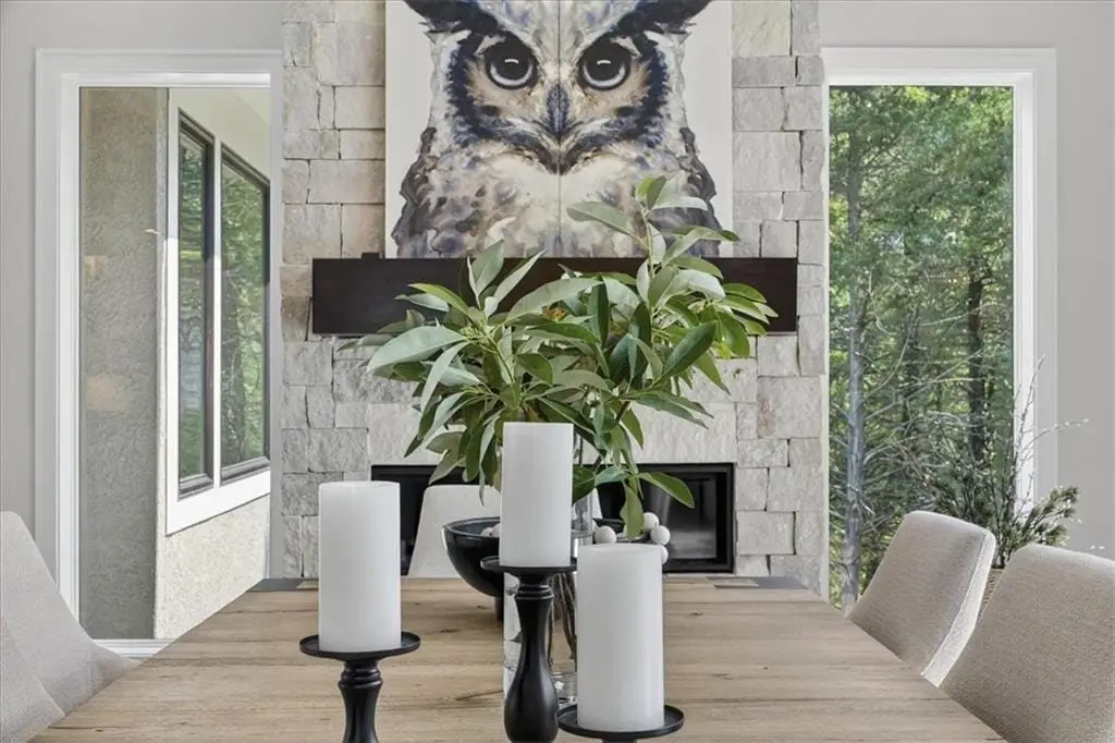 Luxury and modern elegance converge in this custom reverse 1.5-story by Kessler Custom Homes, ideally located in Cedar Creek's coveted Hidden Lake Estates. Situated on a .66-acre treed cul-de-sac lot, this 4-bed, 4-bath showpiece offers nearly 5,000 square feet of impeccably designed living space with a walkout basement and oversized 4-car side-entry garage with epoxy floors. The chef's kitchen is a dream, featuring top-of-the-line BlueStar appliances, six ovens, a massive quartz island, custom cabinetry, and a walk-in butler's pantry that doubles as a prep kitchen or secondary office. The open main level boasts vaulted ceilings, exposed beams, designer lighting, hardwood floors, and built-in speakers throughout. A dramatic wall of windows and sliding doors open to a stamped concrete patio overlooking the private, fully fenced backyard. The luxurious primary suite features two walk-in closets and a spa-worthy bath with floating vanities, herringbone tile, soaking tub, and dual-head walk-in shower. The lower level offers a full wet bar with ice maker and dishwasher, glass-enclosed wine cellar, game room, and two spacious bedrooms with ensuite baths and private patio access. Enjoy direct access to Cedar Creek's resort-style amenities, including a 65-acre lake, multiple pools, clubhouse, trails, tennis, and Shadow Glen Golf Club just minutes away.