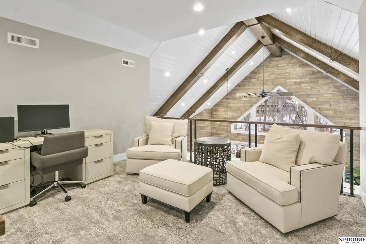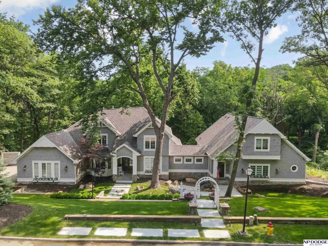 TURNKEY HOME sitting on almost 1.5 acres in the woods along the edge of Omaha Country Club golf course. No need to wait to build or remodel this has all been done for you. Pack your suitcase & move right in, truly resort style living in Omaha! Numerous renovations over 2024 including all bathrooms, a seventh bathroom was added & a seventh bedroom. Bathrooms have Restoration Hardware vanities, lighting & mirrors making them private en-suites. Fresh basement remodel including new onyx marble bar, cabinetry & carpeting. You will be impressed w/ the new custom modern master carpentry added throughout. Shiplap, ceiling treatments & wall treatments have added rich new layers. Designed for entertaining, it has the potential to be a multi-generational home. W/ two separate entrances & private quarters offering privacy & space for all. A place for relaxation & play w/ the Trackman two story golf simulator & custom putting greens bringing the course directly to you. Seize this remarkable estate.