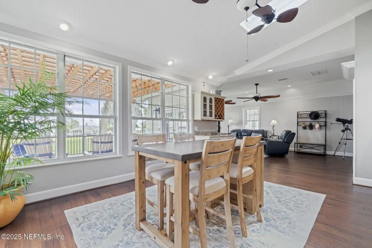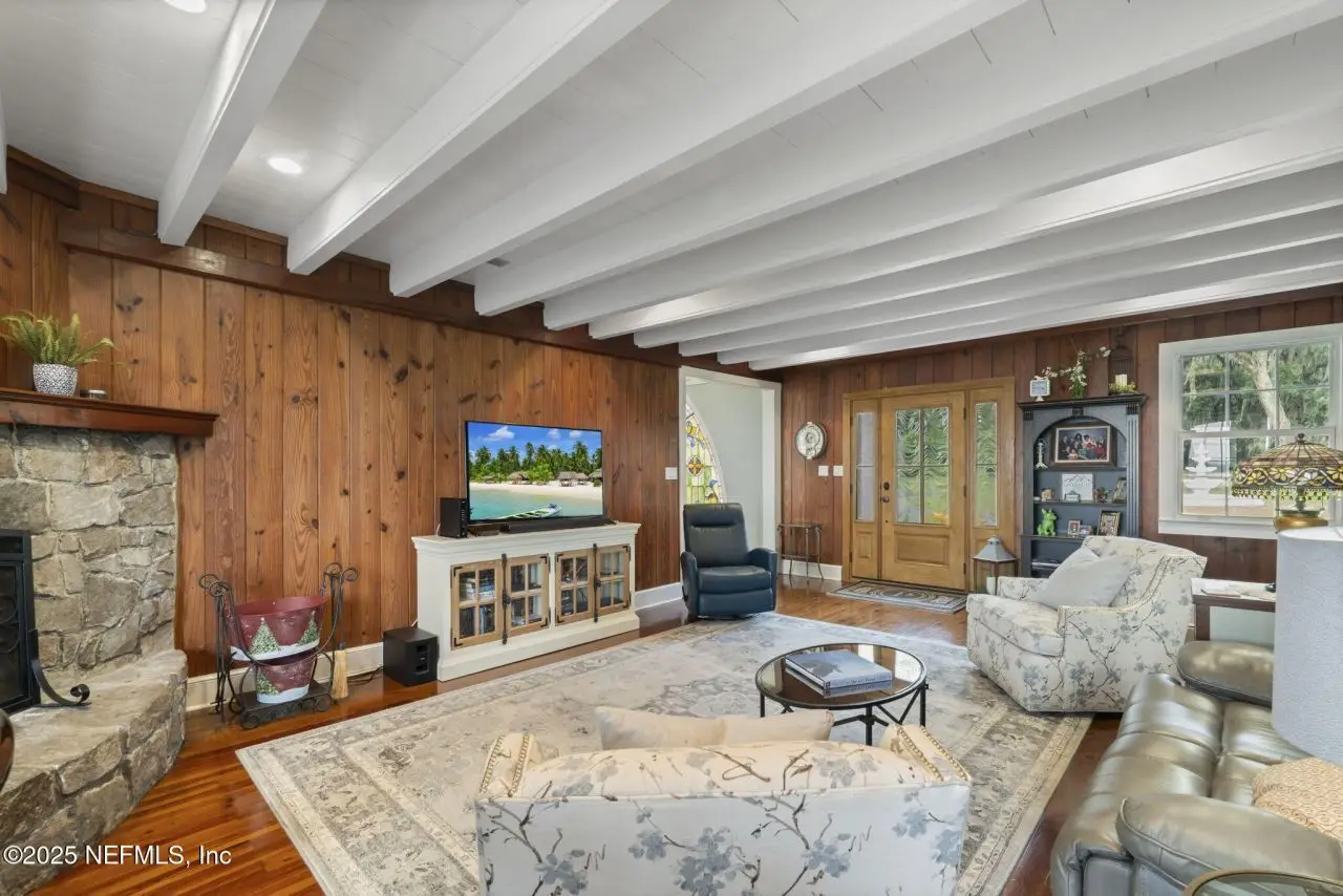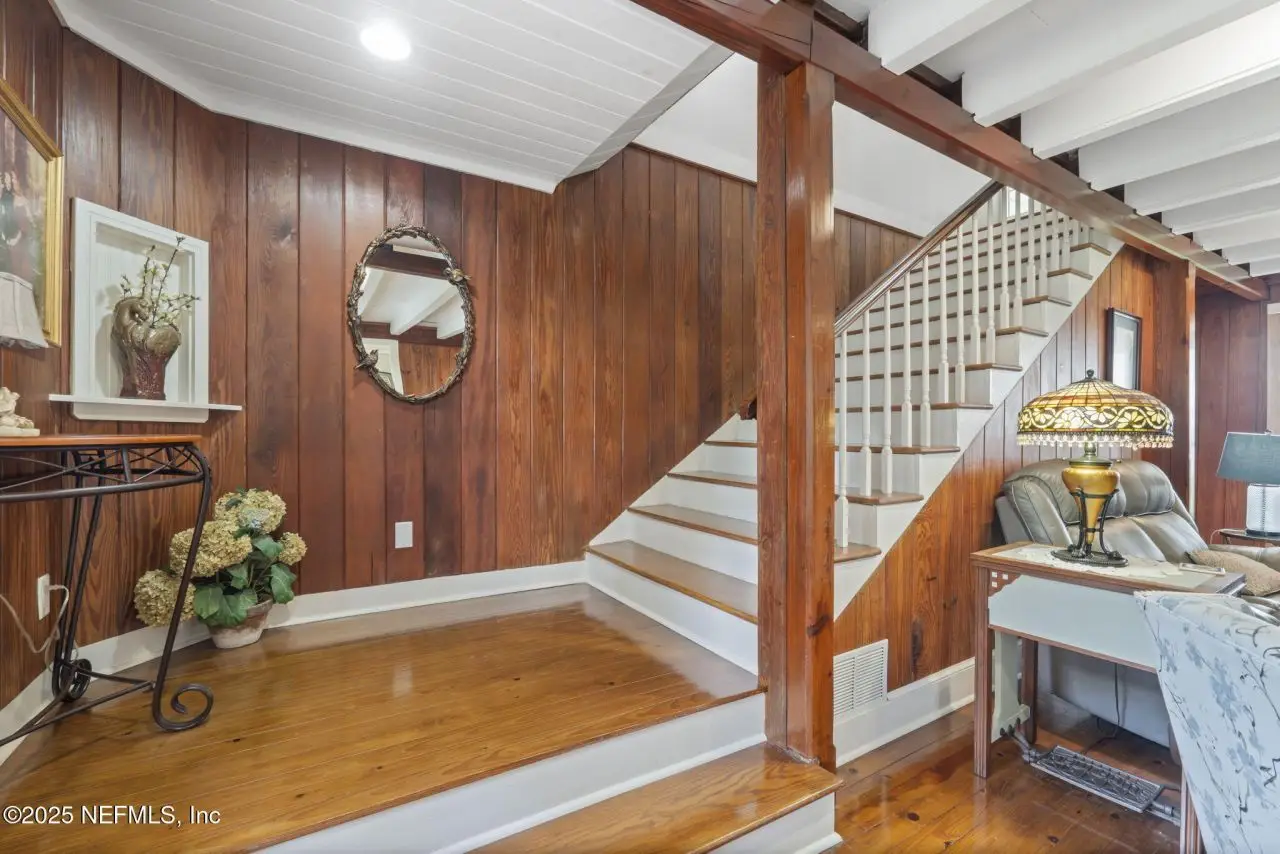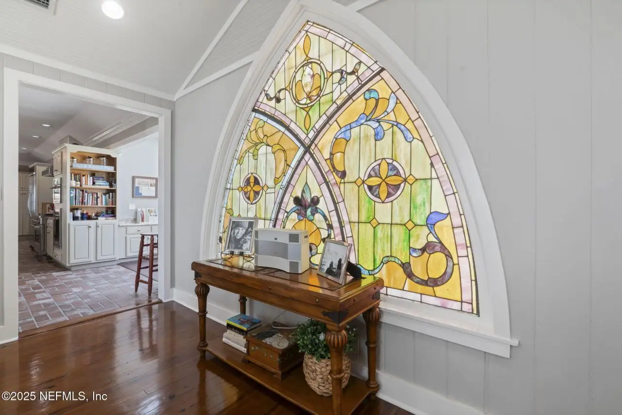 This outstanding waterfront estate has all the charm of old Florida combined with an exceptional renovation! This beautiful property boasts a large parcel of land, 287 feet of Doctors Lake (St. Johns River) direct frontage with a sea wall and dock w/ covered slip and second story deck. This property is high and dry (flood zone 'x') with beautiful old live oak trees and even a gazebo out by the water. The roof is from 2015 and looks great. The kitchen is huge and has lots of cabinets, lots of granite, stainless appliances, an office and a large dining area as well as a separate dining room w/ vaulted ceiling and stained glass window as well as water views. The primary suite is on the first floor and features more water views as well as a white marble bath that looks straight out of a Flagler era mansion.There are three bedrooms upstairs and two full baths that were completely remodeled to the studs and floor joists. the property also features a 1 bed/ 1 bath apartment and more!