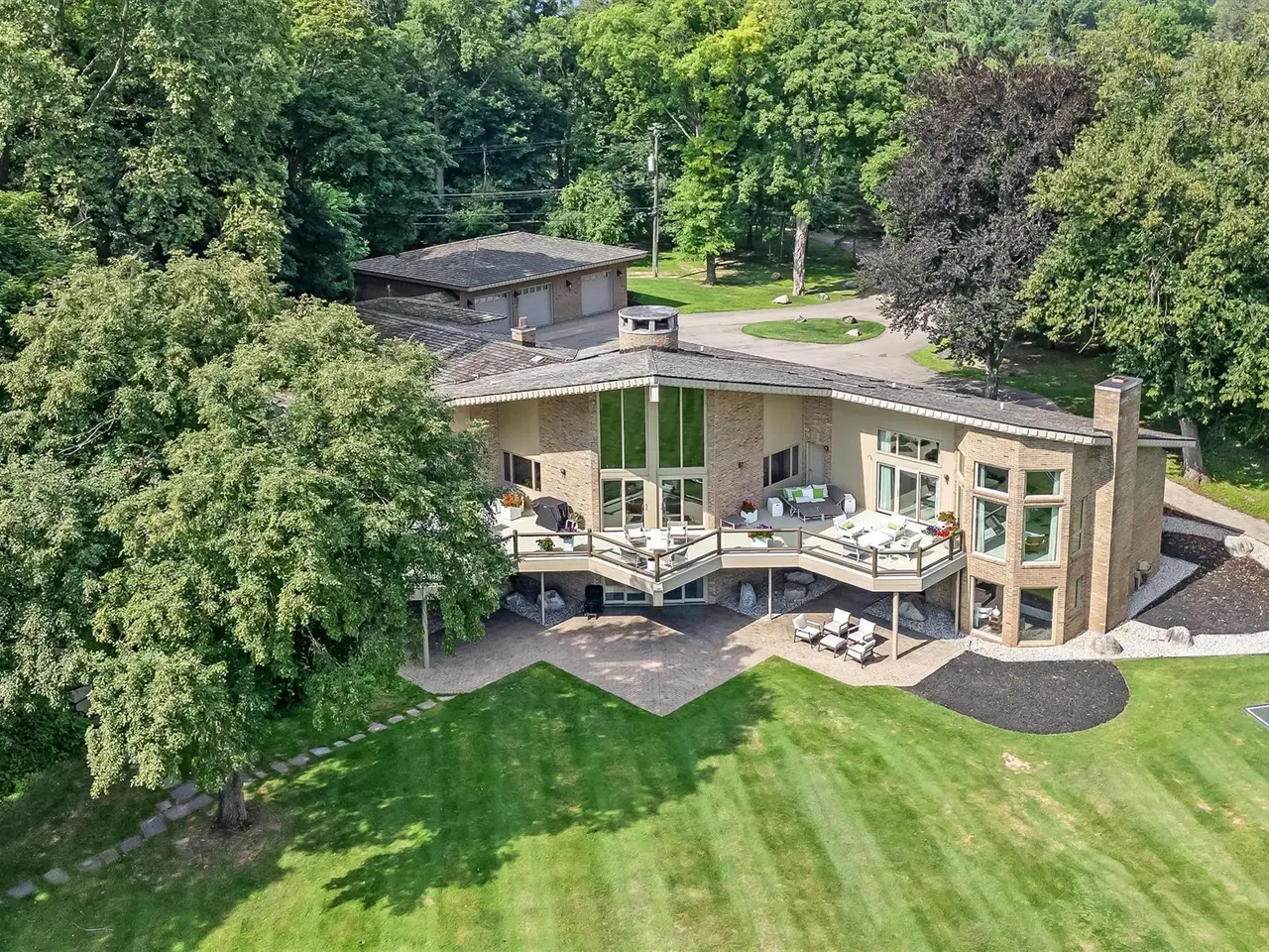 Meander through the Orchard Lake Country Club property to your home on the best street on Orchard Lake. On an exclusive stretch of shoreline, with only fourteen estate-sized parcels on this private, dead-end street. Unparalleled privacy, prestige & panoramic lake views from nearly every room. 3333 W Shore features 2.12 acres & 230’ of lake frontage on 795-acre all-sports Orchard Lake, with picturesque views of Apple Island. Blend of mid-century modern & contemporary design, desirable ranch with finished walkout lower-level offers over 9,200 square feet. Striking architecture, cedar shake roof, vaulted ceilings, floor-to-ceiling windows, skylights, & hardwood floors throughout. Intricate, detailed, solid wood doors & leaded glass doors. The enormous great room is the interior focal point, two-story fireplace. Gourmet granite kitchen, oversized island with counter-top seating for six. Thermador six-burner, plus griddle gas cooktop, double ovens, & wine refrigerator. Luxurious primary suite offering stunning lake views. Dual walk-in closets, coffee bar, over-sized marble shower, sleek stone soaking tub & washer & dryer. Walkout lower level features three en-suites, theater with leather reclining chairs, entertainment area, partial second kitchen. Enormous, mirrored exercise studio with rubber floor, gym lockers & dry sauna. Cedar closet. Three fireplaces. Elevator. 90-foot deck spanning the entire home, glass railing. Steps down to the brick paver patio, offering multiple outdoor entertaining areas. Sports court. Newer mechanicals & some Pella windows. Large circular driveway for ample guest parking. Three-car attached garage, plus a secondary garage that accommodates six cars with room for lifts, perfect for your boat storage. Private entrance office/in-law/guest suite offers a separate home office, bedroom & full bathroom. Taxes are currently non-homestead. West Bloomfield schools. A rare opportunity to own one of the most coveted addresses on Orchard Lake!