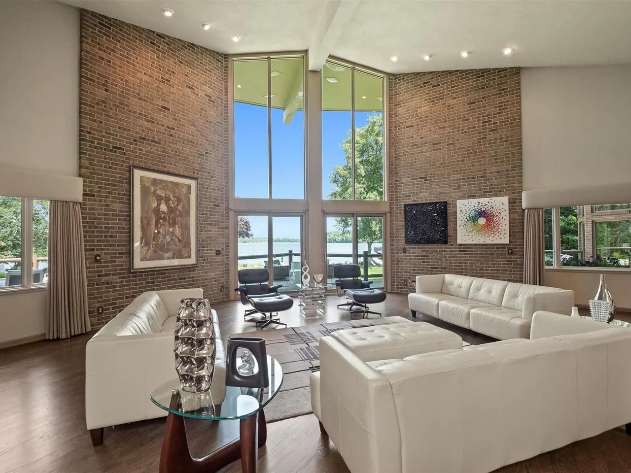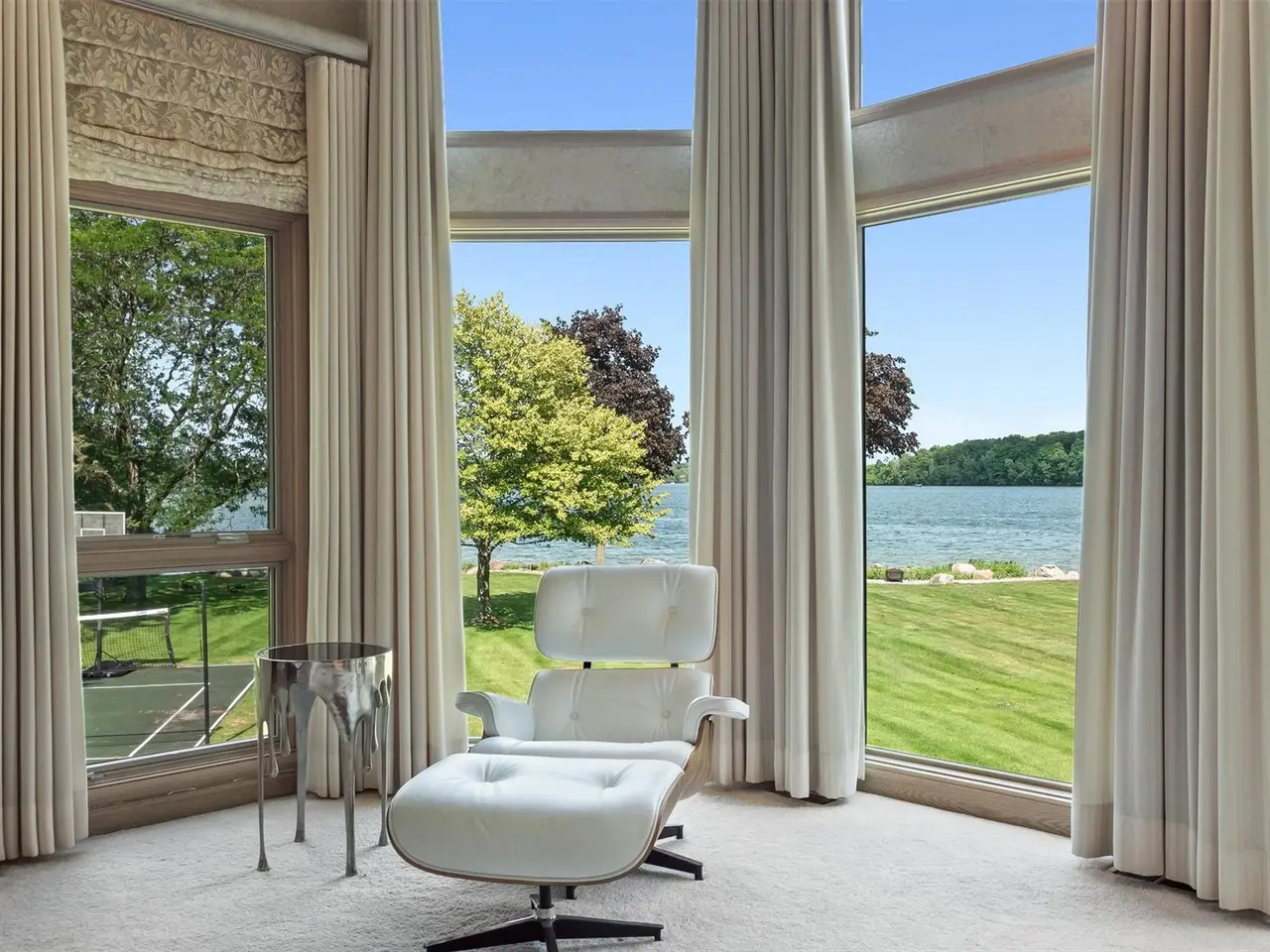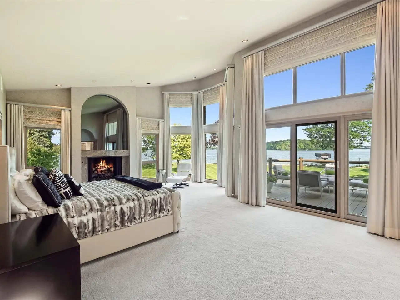 Luxurious primary suite with stunning lake views