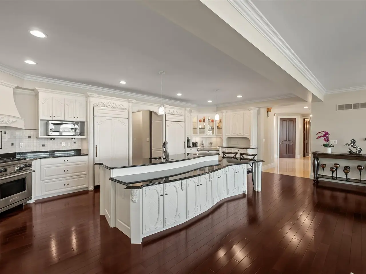 Situated on Dow Ridge Road, one of the most prestigious streets in Oakland County, and certainly the epitome of Cass Lake living. Perched above the shoreline on just over three quarters of an acre lot. 108' of crystal clear, sandy shoreline. Newer built in 2012. Long double-wide driveway, with circular fountain area, provides ample parking for large gatherings. Grand two-story foyer and great room. The great room offers floor-to-ceiling windows with magnificent unobstructed views of the lake. Library/office with custom built-ins. Bright, white gourmet granite kitchen, oversized island with countertop seating, and premium stainless steel appliances: SubZero refrigerator and freezer, Wolf gas range, KitchenAid dishwasher. Walk-in pantry. Full back hall bath, great when coming off a day on the lake. Desirable first-floor primary suite, doorwall to deck, dual walk-in closets. Curved hardwood and wrought iron staircase. Three en-suites upstairs all facing the lake with their own balconies, granite baths and walk-in closets. The second floor loft/office area could easily be enclosed to create an additional bedroom. Lower-level walk-up, second full kitchen, exercise area, 5th en-suite. Lower level kitchen has two side-by-side six burner gas ranges. Dual staircases, solid core doors, palladium windows, Generator, new roof 2025, interior freshly painted 2025. New tile balcony with a glass railing. Unable to duplicate lot and home for this price. Room for a pool in the backyard. Large brick-paver lakefront patio. Four car garage. West Bloomfield Schools: Gretchko Elementary, new West Bloomfield Middle & West Bloomfield High. Experience lakefront living at its finest!