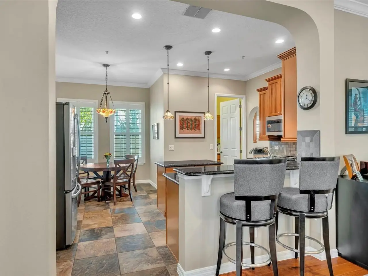 Welcome to this stunning Mediterranean-inspired home in the heart of Baldwin Park! Move right into this 3 bedroom PLUS BONUS ROOM/ 2.5 bath home! Step into your private oasis featuring a captivating backyard pool with elegant fountains, surrounded by a charming courtyard patio framed by classic columns, trellises, and lush mature landscaping — the perfect setting for al fresco dining and entertaining under the Florida sky. A quaint fenced front yard greets you upon arrival, leading inside to soaring ceilings, elegant archways, rich hardwood floors, detailed crown molding, and custom window treatments that exude timeless elegance. The formal living and dining rooms overlook the front yard and flow seamlessly through a butler’s pantry into the serene chef’s kitchen, complete with an island, breakfast bar, gas range and cozy eat-in nook — all open to the inviting family room. The spacious first-floor primary suite with tray ceiling offers the ultimate retreat with its luxurious ensuite bath featuring dual vanities, a soaking tub, walk-in shower, private water closet, and a custom-designed walk-in closet. Upstairs you’ll find two bright guest bedrooms with new carpet, a study nook, and a huge bonus room — ideal for a home office, gym, or additional family space. Additional highlights include an indoor laundry room, rear-entry 2+ car garage with abundant storage (27x23), AC & water heater 2017, double paned windows throughout and an unbeatable location near Cady Way Trail, Baldwin Park Trail, and all the amenities of the Baldwin Park lifestyle — community pools, parks, fitness centers, dining, and shoppes. WELCOME HOME!