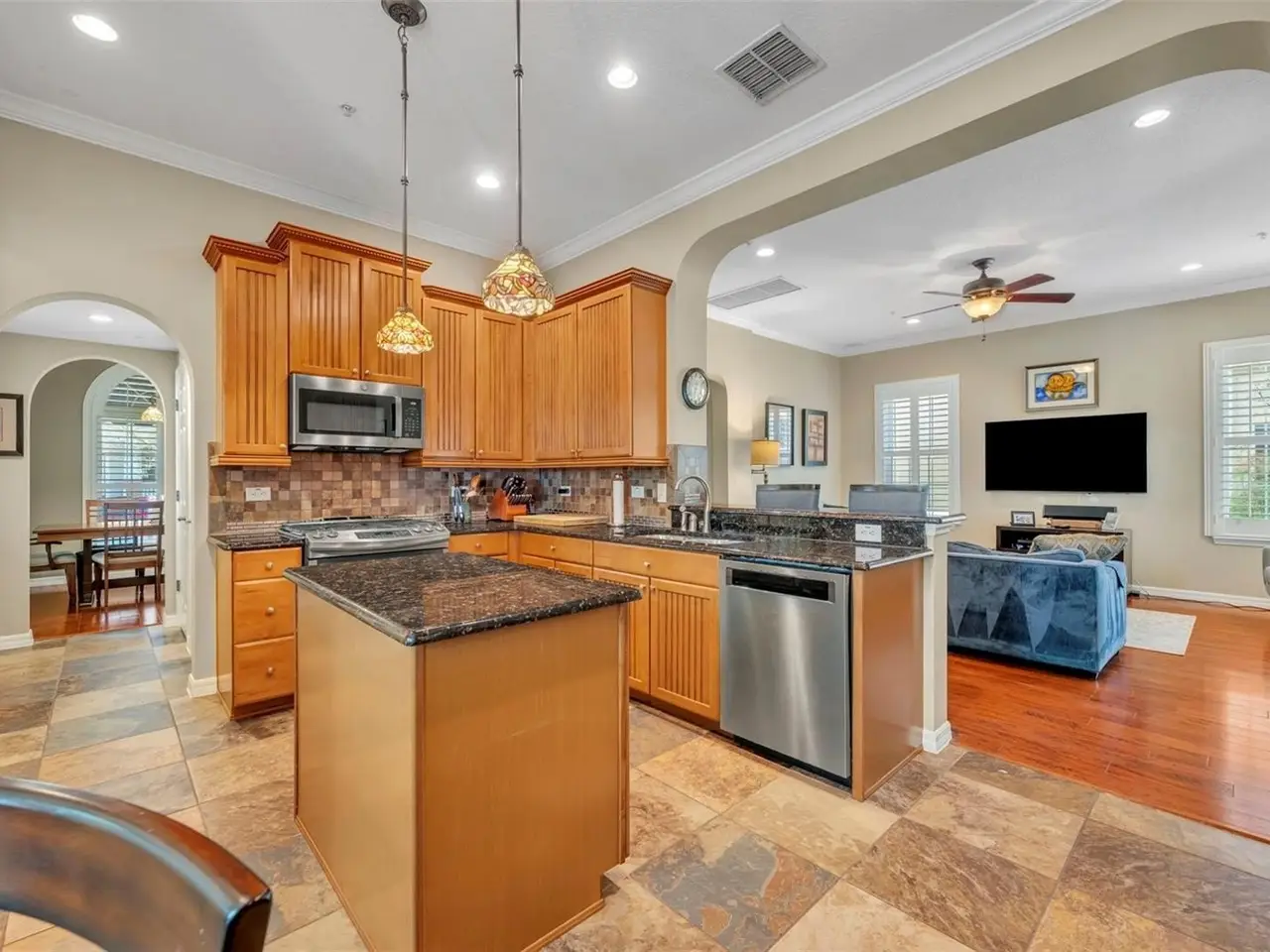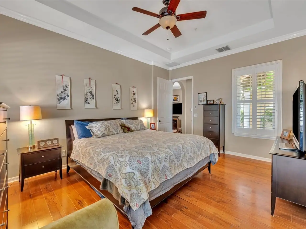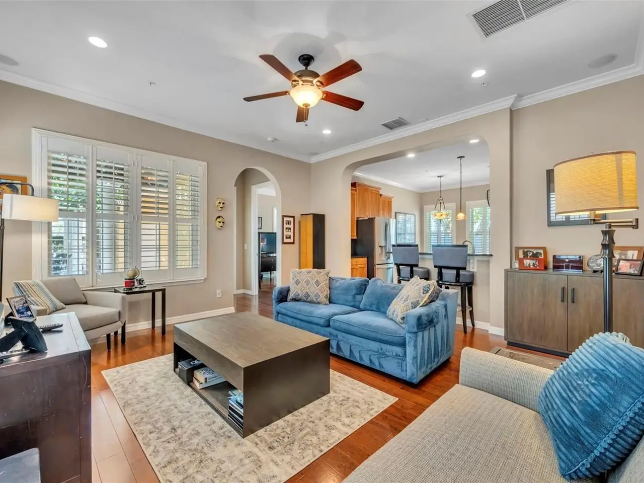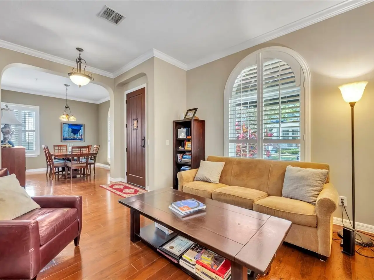 Welcome to this stunning Mediterranean-inspired home in the heart of Baldwin Park! Move right into this 3 bedroom PLUS BONUS ROOM/ 2.5 bath home! Step into your private oasis featuring a captivating backyard pool with elegant fountains, surrounded by a charming courtyard patio framed by classic columns, trellises, and lush mature landscaping — the perfect setting for al fresco dining and entertaining under the Florida sky. A quaint fenced front yard greets you upon arrival, leading inside to soaring ceilings, elegant archways, rich hardwood floors, detailed crown molding, and custom window treatments that exude timeless elegance. The formal living and dining rooms overlook the front yard and flow seamlessly through a butler’s pantry into the serene chef’s kitchen, complete with an island, breakfast bar, gas range and cozy eat-in nook — all open to the inviting family room. The spacious first-floor primary suite with tray ceiling offers the ultimate retreat with its luxurious ensuite bath featuring dual vanities, a soaking tub, walk-in shower, private water closet, and a custom-designed walk-in closet. Upstairs you’ll find two bright guest bedrooms with new carpet, a study nook, and a huge bonus room — ideal for a home office, gym, or additional family space. Additional highlights include an indoor laundry room, rear-entry 2+ car garage with abundant storage (27x23), AC & water heater 2017, double paned windows throughout and an unbeatable location near Cady Way Trail, Baldwin Park Trail, and all the amenities of the Baldwin Park lifestyle — community pools, parks, fitness centers, dining, and shoppes. WELCOME HOME!