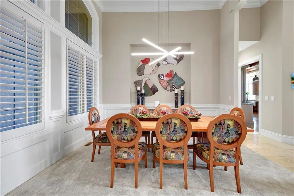 Sold sight unseen. Prepare to be WOWed! Nestled on the 4th hole of Links at Lionsgate, this stunning custom home offers breathtaking views. Enter and take in the attention to detail in every inch. The unique domed ceiling in the living room sets the tone for a beautiful surprise at every corner. Enjoy the ease of main level living with the Primary Bedroom Suite, a Guest Bedroom Suite, Office & two Laundry areas. All while your guests or family members enjoy the Bar/full Kitchen, Office, Living Area, three Bedroom Suites and another Laundry area in the lower level. From each level, step out to the outdoor living areas and take in the beauty of golf course living.*Lionsgate Club Social Membership is $862 per year*