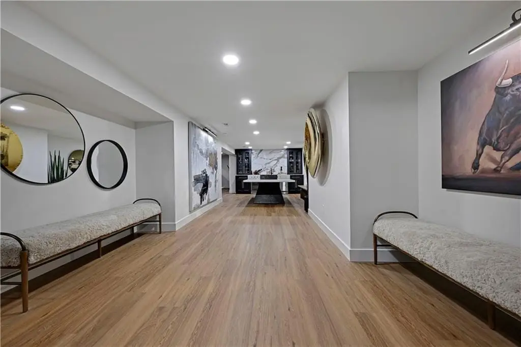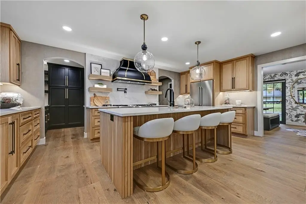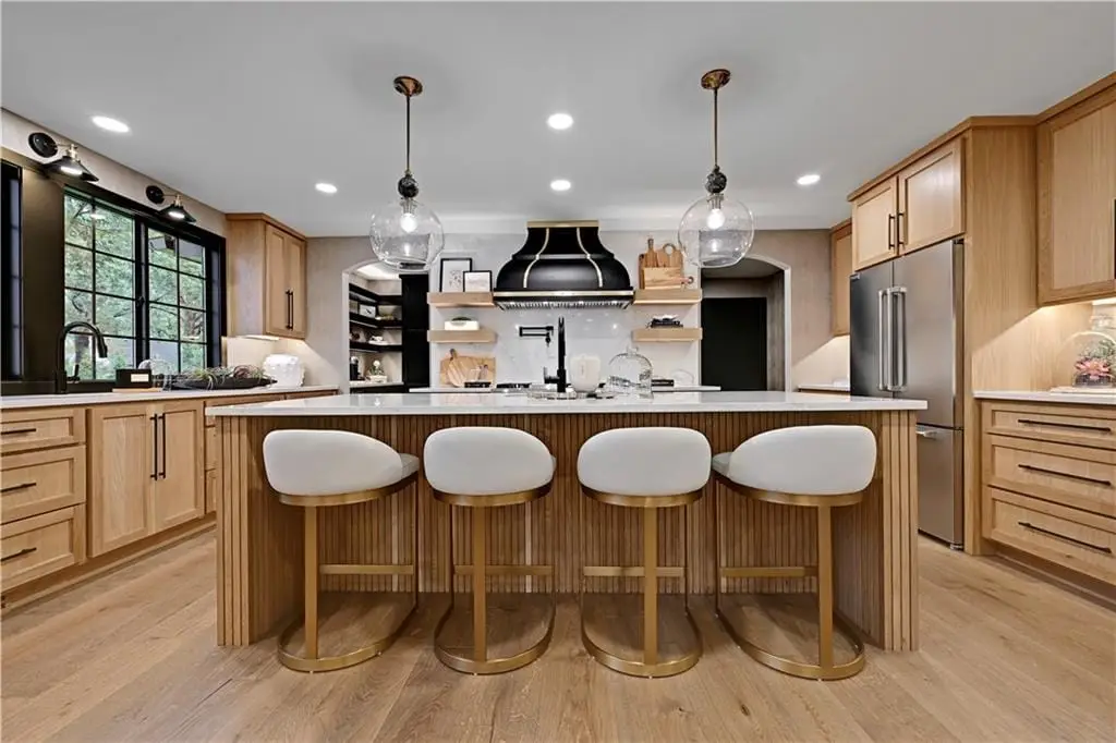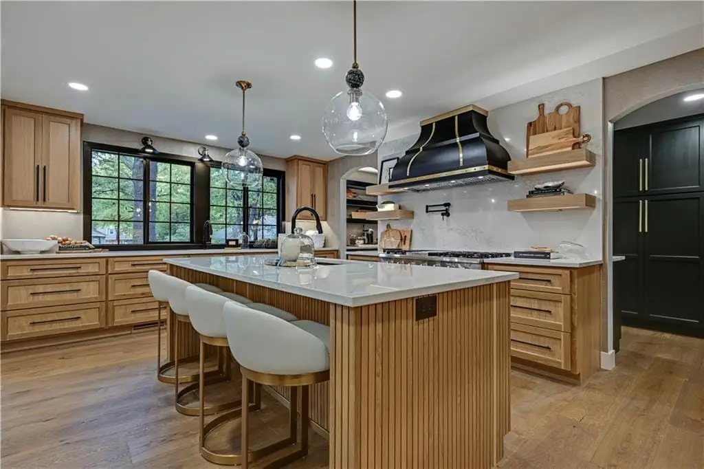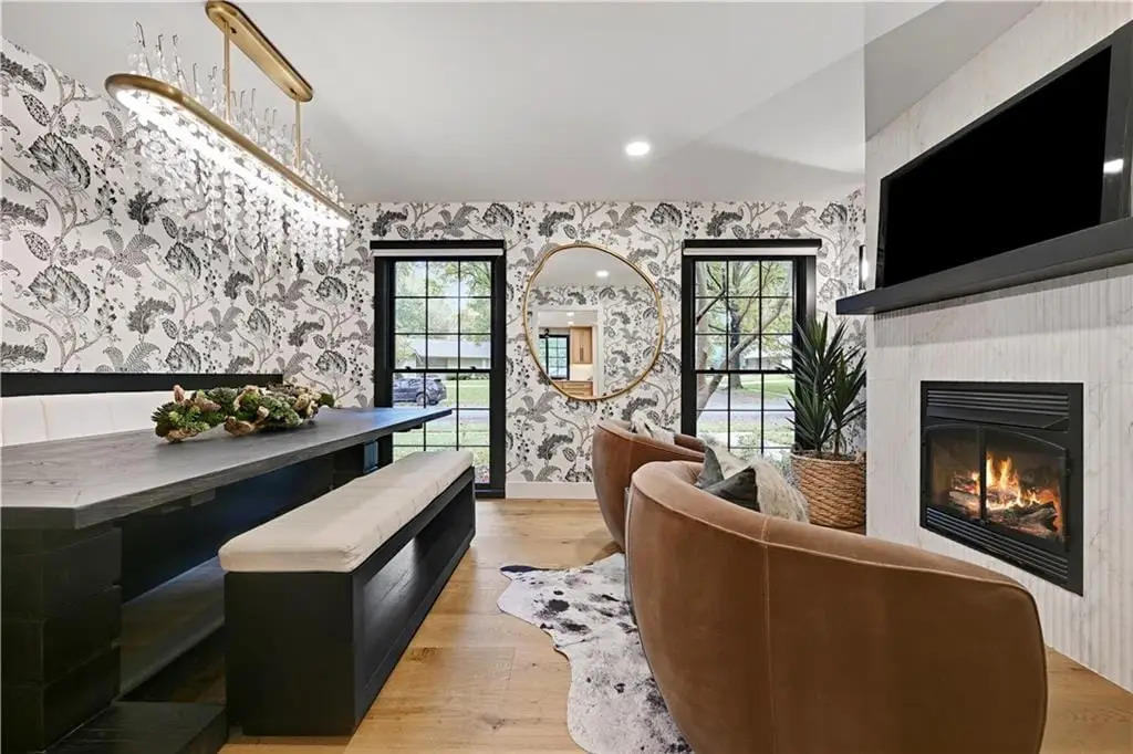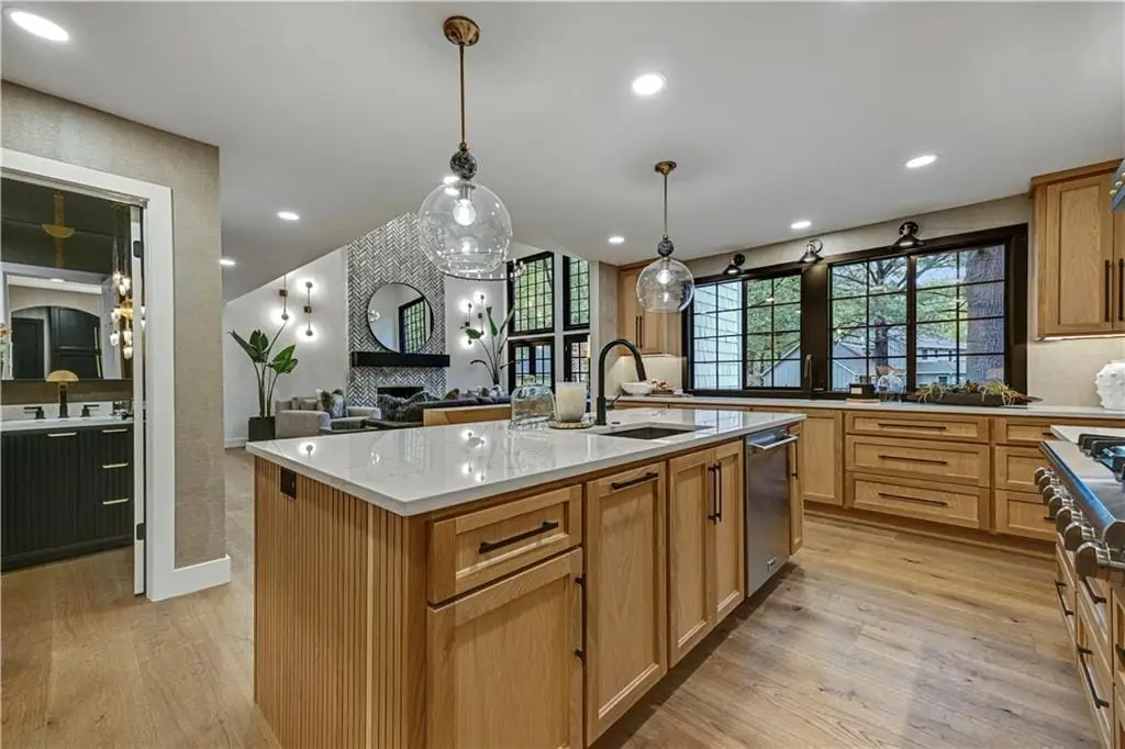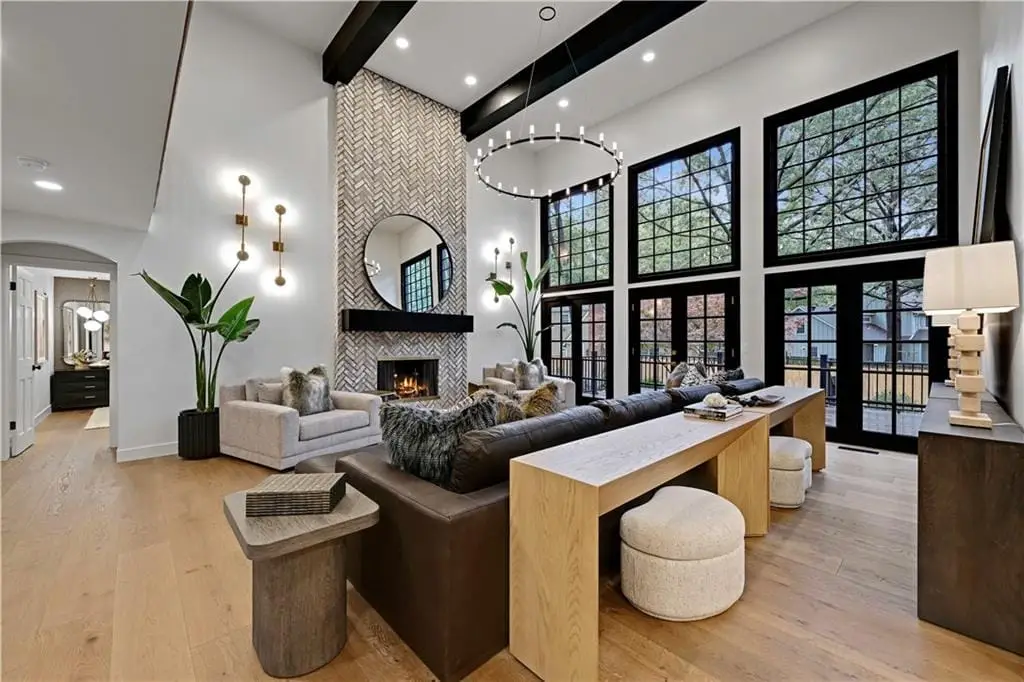Step inside this luxuriously reimagined residence, where creative, thoughtful design and exceptional craftsmanship redefine modern living. The open-concept main level features new hardwood flooring, an expanded great room with a custom herringbone brick fireplace, and abundant natural light. The gourmet kitchen is a true showpiece - custom white oak cabinetry, seamless quartz slab backsplash, dual sinks, 48 professional range, custom hood, pot filler, and pass-through windows for effortless indoor-outdoor entertaining. The morning room offers built-in banquette seating, a ventless gas fireplace, and designer finishes, creating the perfect gathering space.The first-floor primary suite delivers a spa-like retreat with a freestanding soaking tub, zero-entry shower, floor-to-ceiling tile, and a custom walk-in closet complete with built-ins and laundry hookups. Upstairs, discover a new loft and laundry room, custom railing, and designer lighting throughout. The finished lower level offers expanded living and entertainment space with custom library shelving, a quartz wet bar with full slab backsplash, beverage fridge, ice maker, bonus room, and beautifully finished baths. Outside, enjoy fresh landscaping, new sod, cedar accents, Knotty Alder double front doors, brick-lined walkways, new fencing, and elegant exterior lightingcreating a refined backdrop for outdoor living.Behind the beauty, every major system has been meticulously updated. A rare blend of sophistication and substance, this home offers inspired design, quality craftsmanship, and total peace of mind.