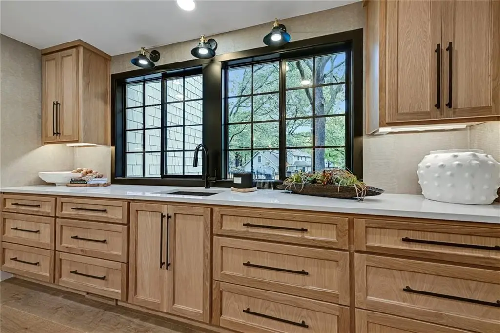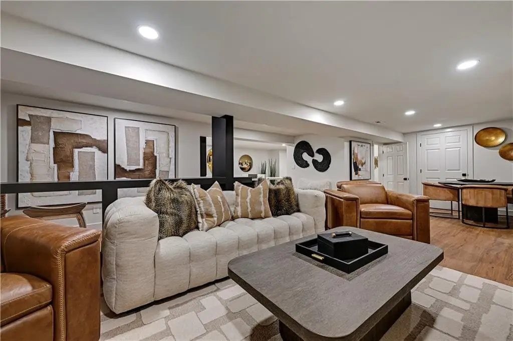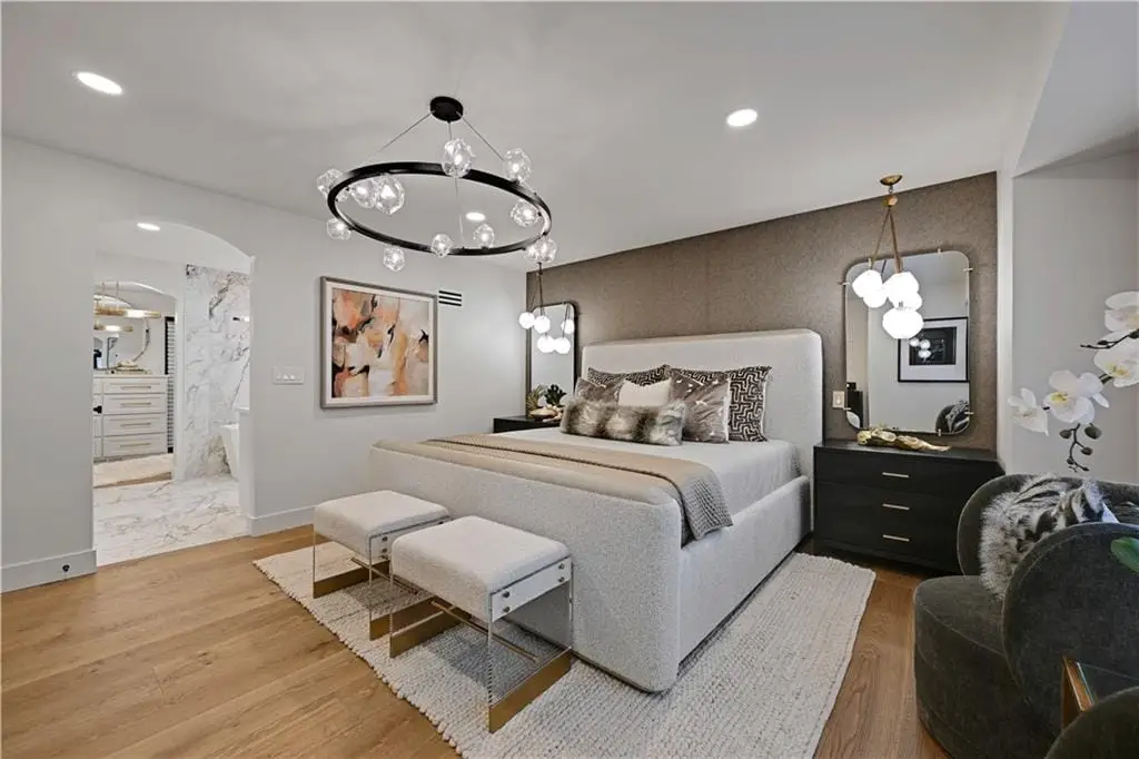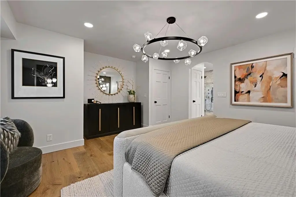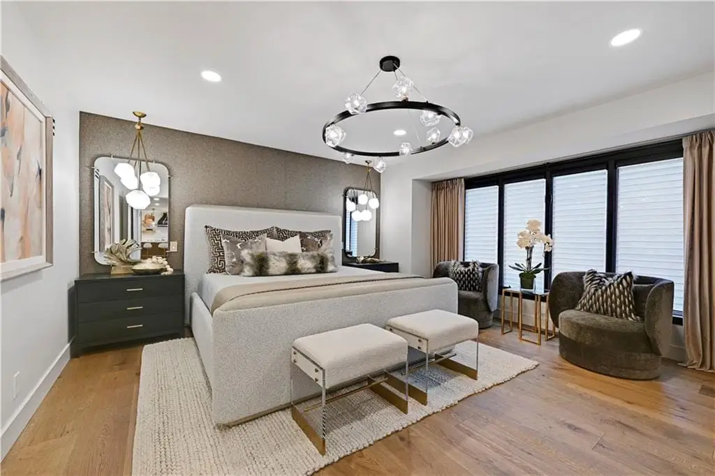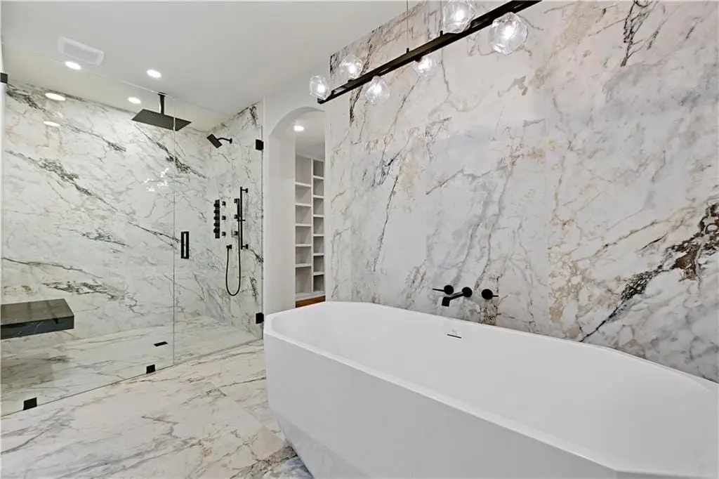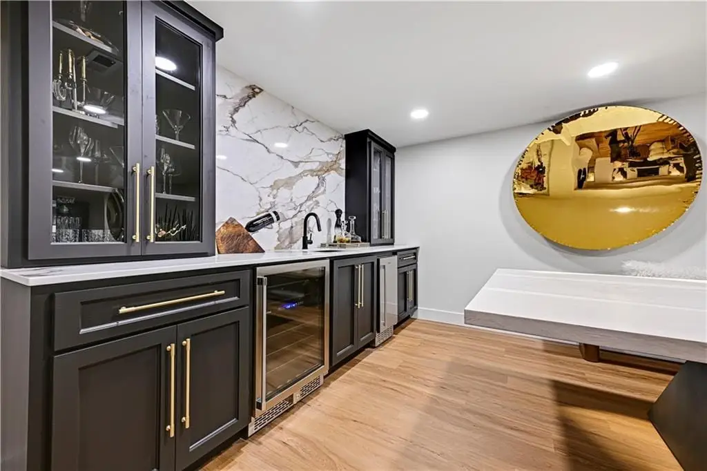 Step inside this luxuriously reimagined residence, where creative, thoughtful design and exceptional craftsmanship redefine modern living. The open-concept main level features new hardwood flooring, an expanded great room with a custom herringbone brick fireplace, and abundant natural light. The gourmet kitchen is a true showpiece - custom white oak cabinetry, seamless quartz slab backsplash, dual sinks, 48 professional range, custom hood, pot filler, and pass-through windows for effortless indoor-outdoor entertaining. The morning room offers built-in banquette seating, a ventless gas fireplace, and designer finishes, creating the perfect gathering space.The first-floor primary suite delivers a spa-like retreat with a freestanding soaking tub, zero-entry shower, floor-to-ceiling tile, and a custom walk-in closet complete with built-ins and laundry hookups. Upstairs, discover a new loft and laundry room, custom railing, and designer lighting throughout. The finished lower level offers expanded living and entertainment space with custom library shelving, a quartz wet bar with full slab backsplash, beverage fridge, ice maker, bonus room, and beautifully finished baths. Outside, enjoy fresh landscaping, new sod, cedar accents, Knotty Alder double front doors, brick-lined walkways, new fencing, and elegant exterior lightingcreating a refined backdrop for outdoor living.Behind the beauty, every major system has been meticulously updated. A rare blend of sophistication and substance, this home offers inspired design, quality craftsmanship, and total peace of mind.