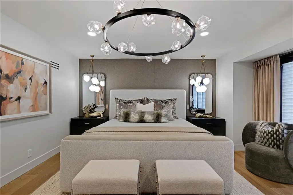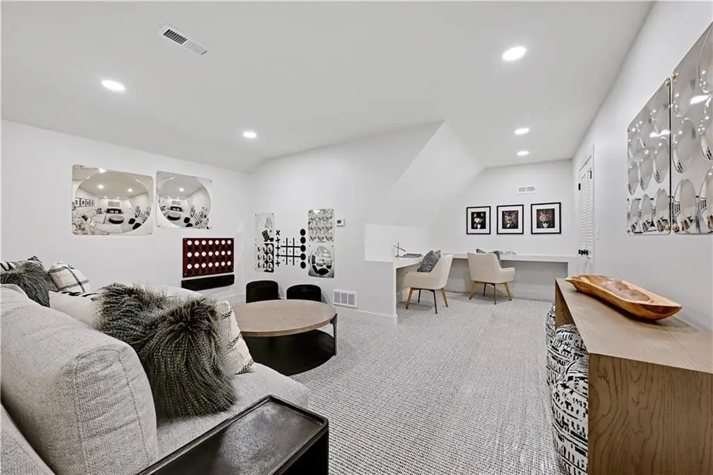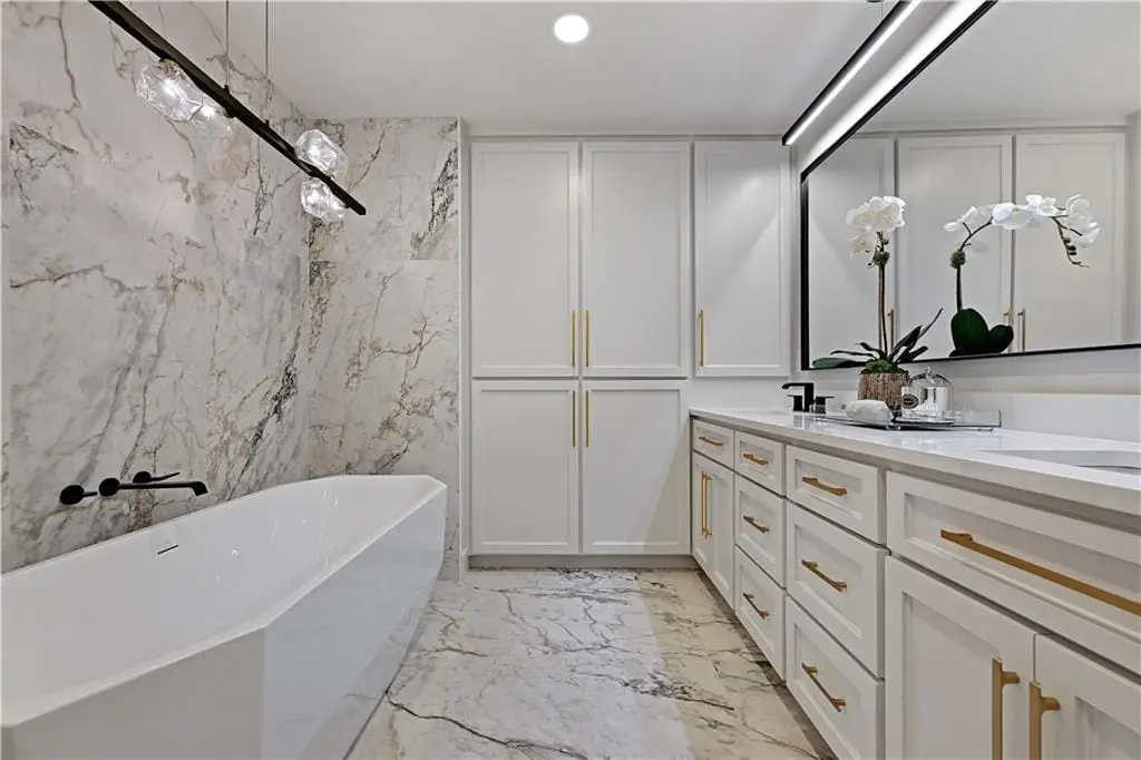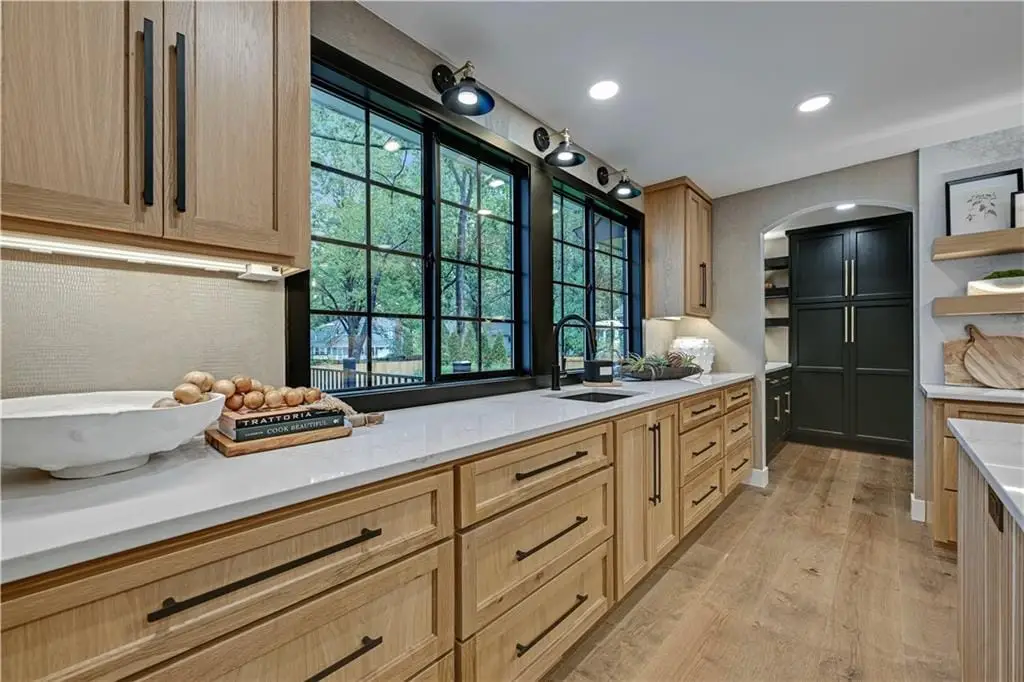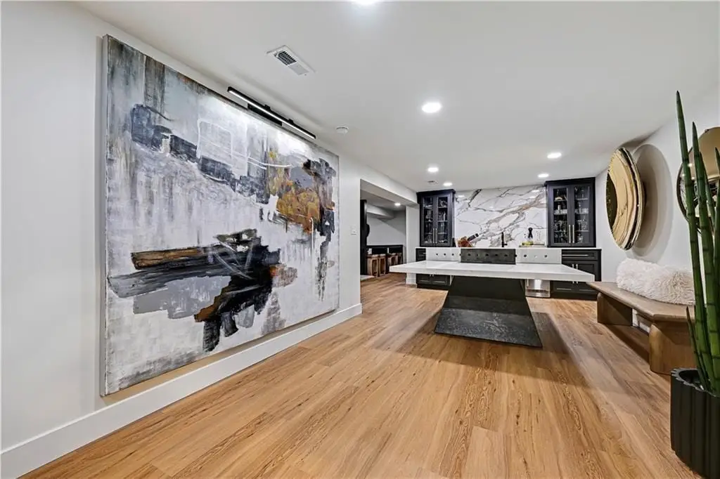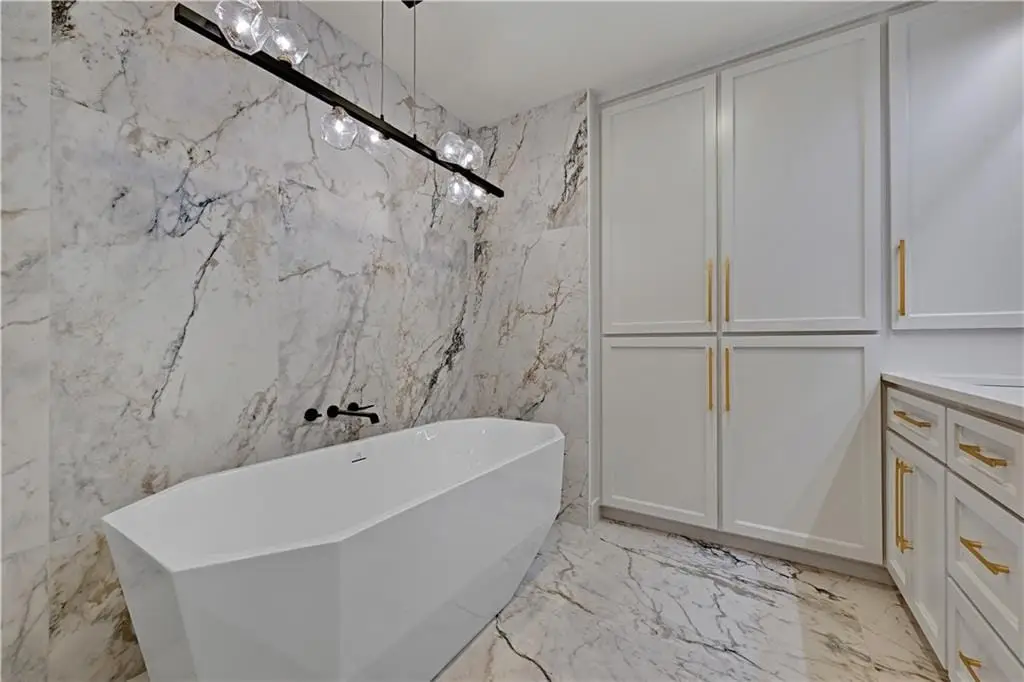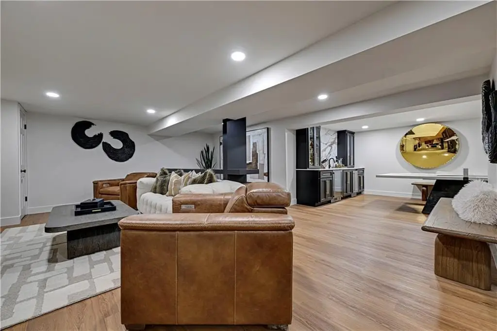Step inside this luxuriously reimagined residence, where creative, thoughtful design and exceptional craftsmanship redefine modern living. The open-concept main level features new hardwood flooring, an expanded great room with a custom herringbone brick fireplace, and abundant natural light. The gourmet kitchen is a true showpiece - custom white oak cabinetry, seamless quartz slab backsplash, dual sinks, 48 professional range, custom hood, pot filler, and pass-through windows for effortless indoor-outdoor entertaining. The morning room offers built-in banquette seating, a ventless gas fireplace, and designer finishes, creating the perfect gathering space.The first-floor primary suite delivers a spa-like retreat with a freestanding soaking tub, zero-entry shower, floor-to-ceiling tile, and a custom walk-in closet complete with built-ins and laundry hookups. Upstairs, discover a new loft and laundry room, custom railing, and designer lighting throughout. The finished lower level offers expanded living and entertainment space with custom library shelving, a quartz wet bar with full slab backsplash, beverage fridge, ice maker, bonus room, and beautifully finished baths. Outside, enjoy fresh landscaping, new sod, cedar accents, Knotty Alder double front doors, brick-lined walkways, new fencing, and elegant exterior lightingcreating a refined backdrop for outdoor living.Behind the beauty, every major system has been meticulously updated. A rare blend of sophistication and substance, this home offers inspired design, quality craftsmanship, and total peace of mind.