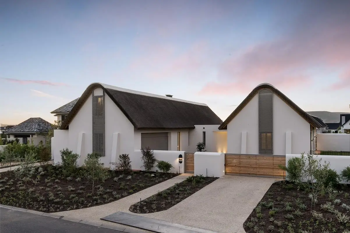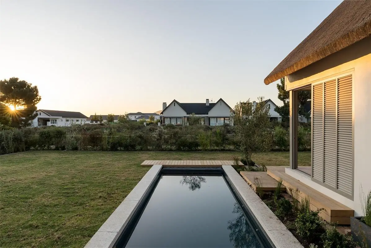 EXCLUSIVE DUAL MANDATE We are delighted to list this cleverly designed North-facing single level home on Pearl Valley Golf & Country Estate. The property has a visually unique appeal that blends modern features with the comfort of a more traditional feel. The functional and practical layout is perfect for family living and entertaining with the large entertainment areas, open plan to the kitchen, flowing out to the covered patio with its built in braai, a large heated pool and a sun filled North facing garden. One wing of the home is comprised of 4 bedrooms, all en-suite, with an additional 5th above the garage and with its own separate entrance - ideal for visitors or staff. Two of the bedrooms in the family wing are loft style with clever usage of the space above the bathrooms for a study or play area - perfect spaces for children. There are many added features such as the eye catching exposed poplar beams which decorate the interior roof detail and are an attractive focus point throughout, the roof height glass door and windows on the North side of the property bringing in light, a full solar PV system, an impressive heat pump and underfloor heating system throughout, ceiling fans, a motorised retractable pool cover and much more. A truly beautiful home.