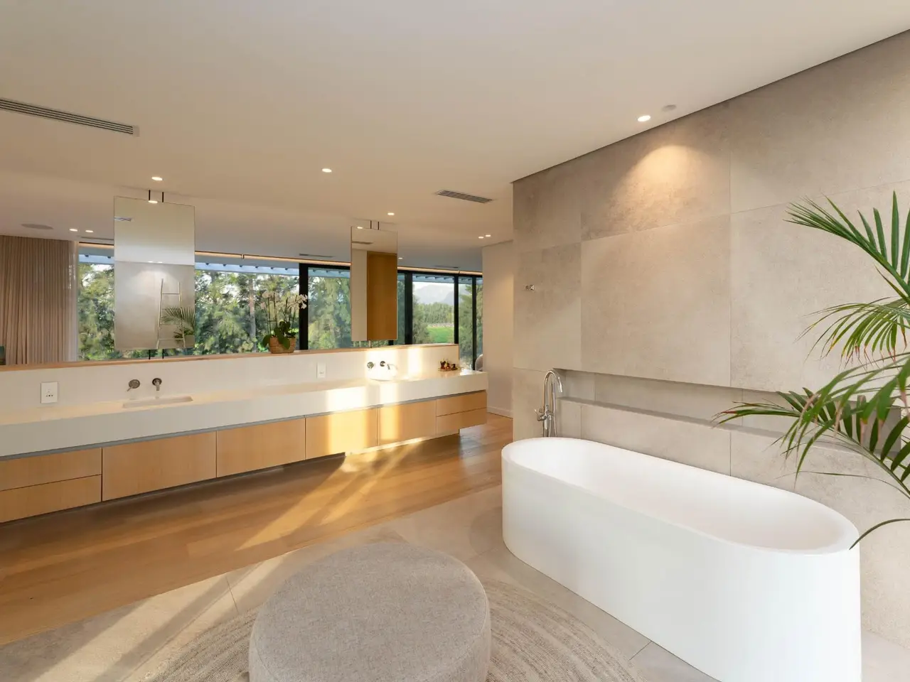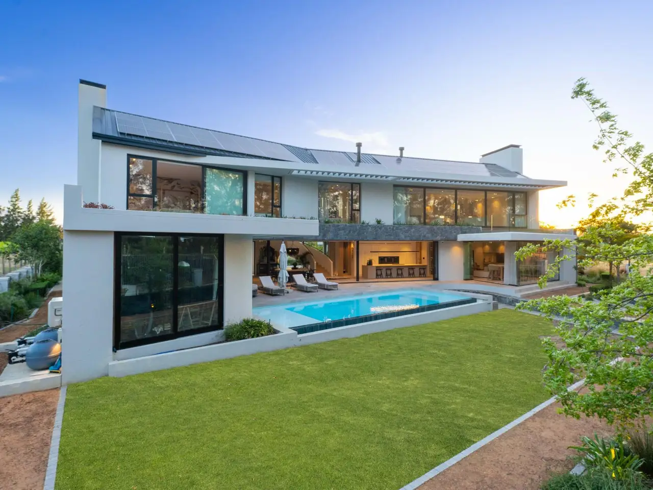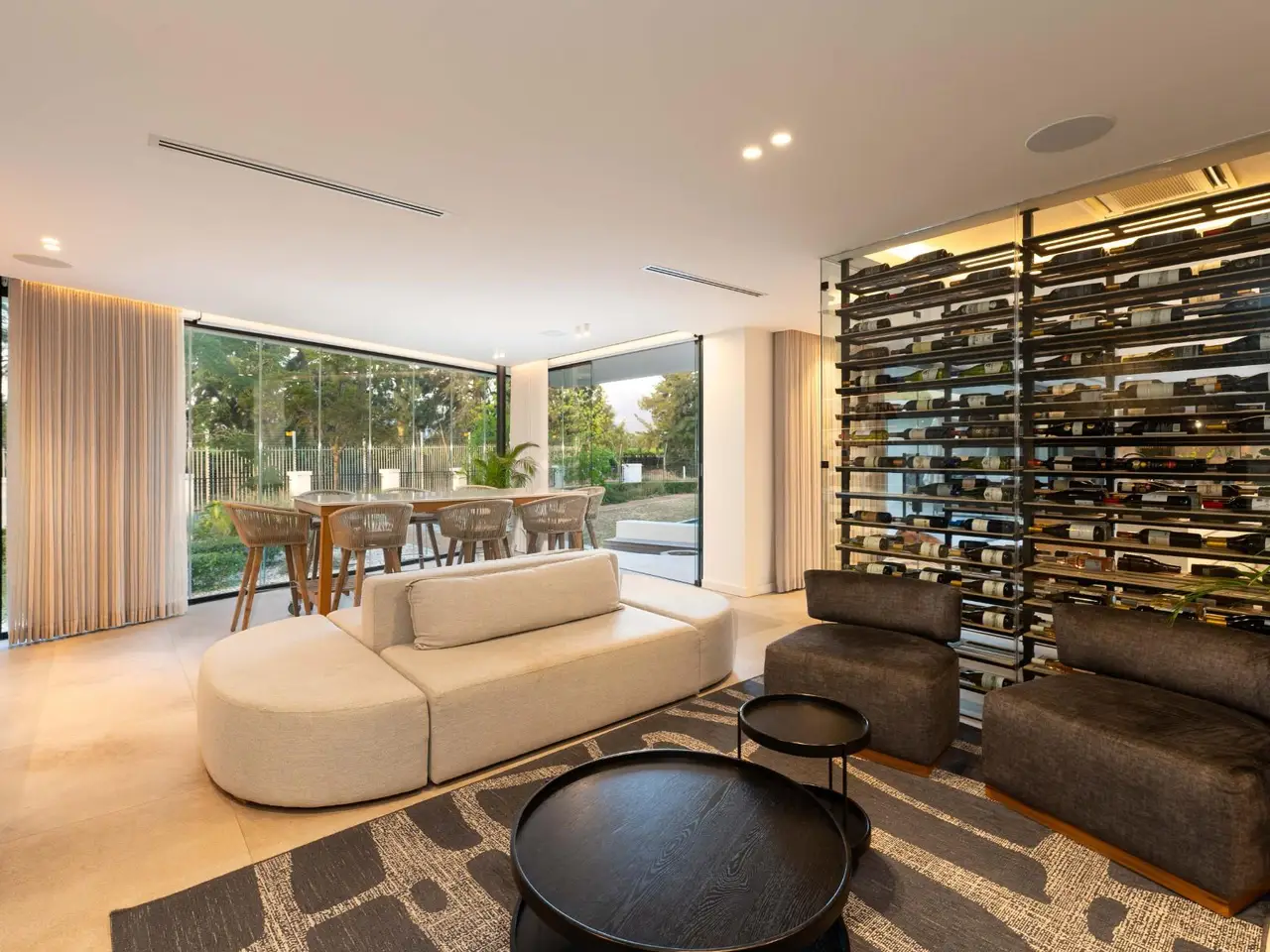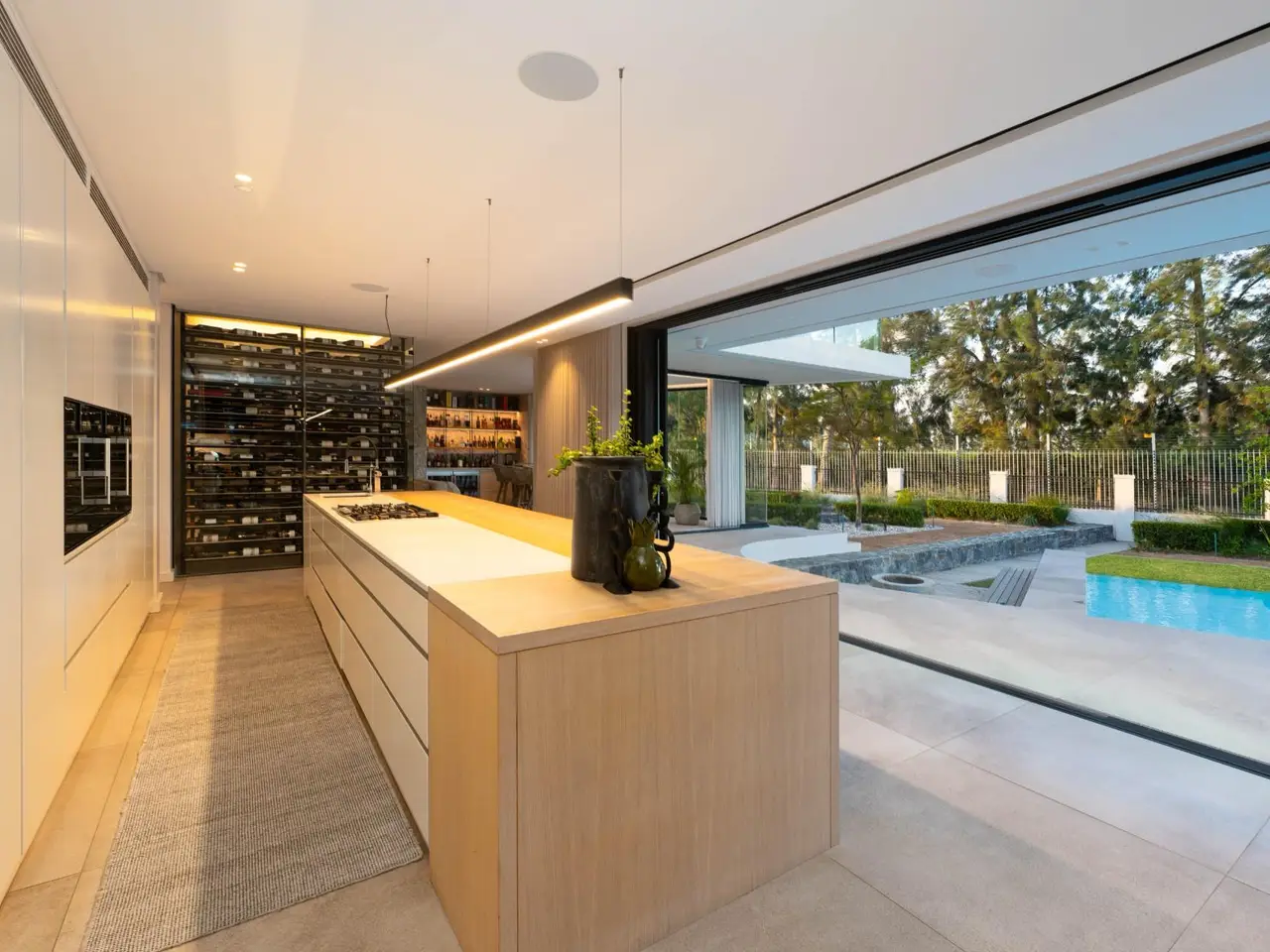 Exclusive dual mandate. Discover an extraordinary architectural residence designed for luxury, functionality, and privacy. Created in collaboration with Blockplan Architects - Gordon Hubbard, this home showcases meticulous craftsmanship, cutting-edge technology, and premium materials throughout. The expansive open-plan layout flows from elegant living areas to the outdoor entertainment zone. Floor-to-ceiling double-glazed windows and glass doors connect the interior with the garden and a bespoke swimming pool. Every aspect of the design maximises natural light, privacy, and the tranquil views of the surrounding greenery. The home's position ensures optimal natural warmth and light throughout the day. At the heart of the home lies a Gaggenau chef's kitchen - a statement of performance. With sleek cabinetry, integrated appliances, and a generous island, it is complemented by premium refrigeration, including a Liebherr fridge, freezer, bar fridge, and wine fridge. The custom-designed bar area and climate-controlled wine gallery further elevate the home's refined entertainment appeal. Each bedroom is a private retreat, offering space, light, and high-end finishes. Spa-inspired en-suite bathrooms create a sanctuary-like atmosphere with natural colours and ample light. Additional Features: Private study with built-in shelving and workspace Compact gym with panoramic views Separate art and design studio, fully plumbed and ready to convert into an extra bedroom with bathroom, pool room, sauna, or steam room Custom koi pond featuring Pedigree Kuhaku Japanese Koi, creating a serene and welcoming ambience at the entry Top-of-the-range smart home technology, including a full Control4 smart home system Solar integration for energy efficiency Integrated air conditioning Integrated Bowers & Wilkins surround sound inside and outside Underfloor heating in bathrooms Double-glazed windows throughout the residence Garages are designed extra high and wide for added versatility Furniture can be negotiated