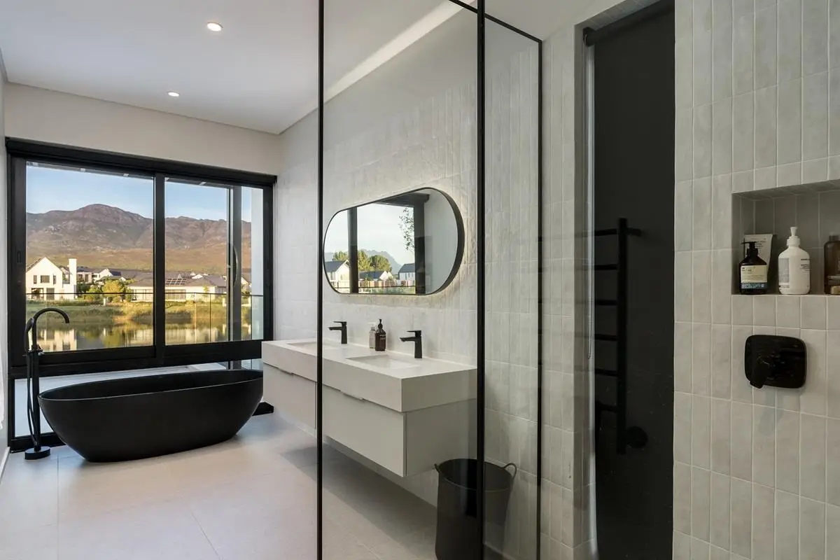 Exclusive sole mandate. Step into luxury living with this 4 bedroom double-story lake house in Val de Vie Estate, perfectly positioned to capture magnificent east-facing views of the Drakenstein mountain ranges. Designed for modern family living, this home offers a seamless blend of style, comfort, and functionality. As you enter, you'll be captivated by the open-plan living area, designed for both relaxation and entertaining. Large windows annd doors invite natural light and offer breathtaking views of the serene lake and surrounding mountains, creating a picturesque backdrop for everyday life. The modern kitchen boasts high-end appliances and ample counter space, seamlessly flowing into the dining and living areas. Step outside to a generous patio, ideal for al fresco dining and soaking in the stunning views over the water. Upstairs you have 3 en-suite bedrooms each offering privacy and sophisticated finishes and a pajama lounge, perfect for family relaxation or a cozy retreat. A custom wine cellar, ideal for wine enthusiasts and entertainers. Laundry combined with a scullery, ensuring an organized and efficient household. 3 garages providing ample space for vehicles and additional storage. This property is more than just a home it's an investment in your lifestyle, offering luxury, tranquility, and the unique lifestyle that comes with living in Val de Vie Estate