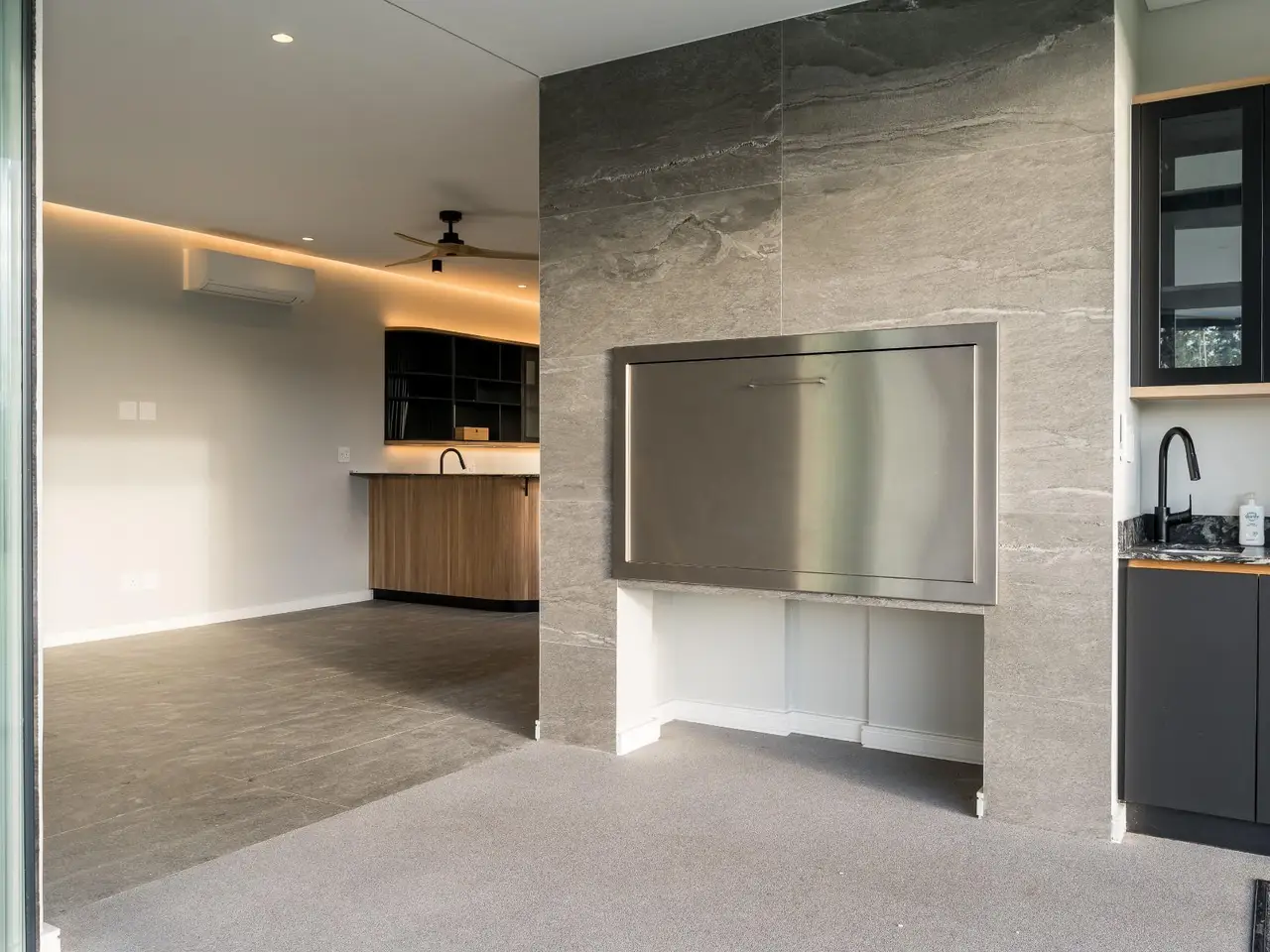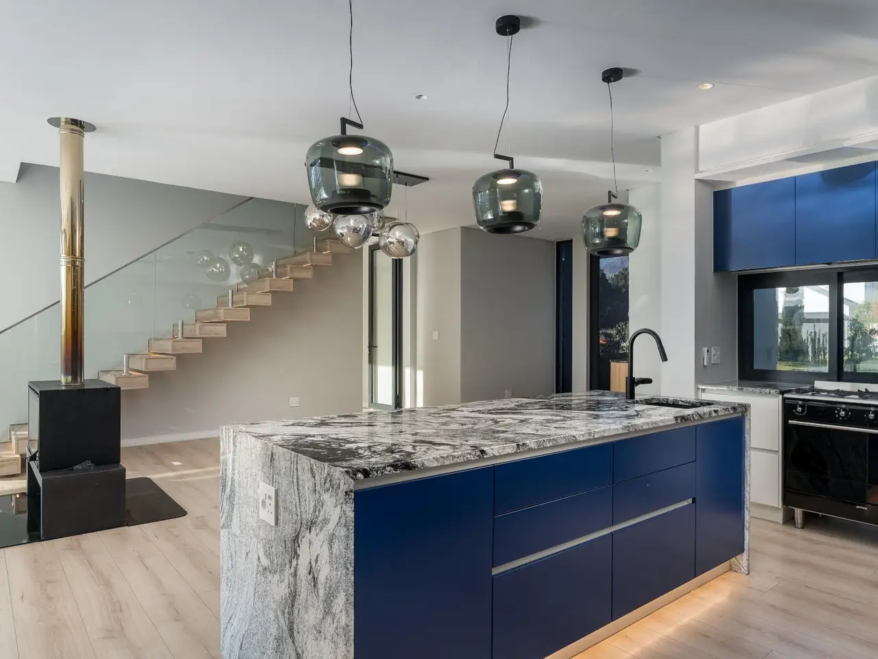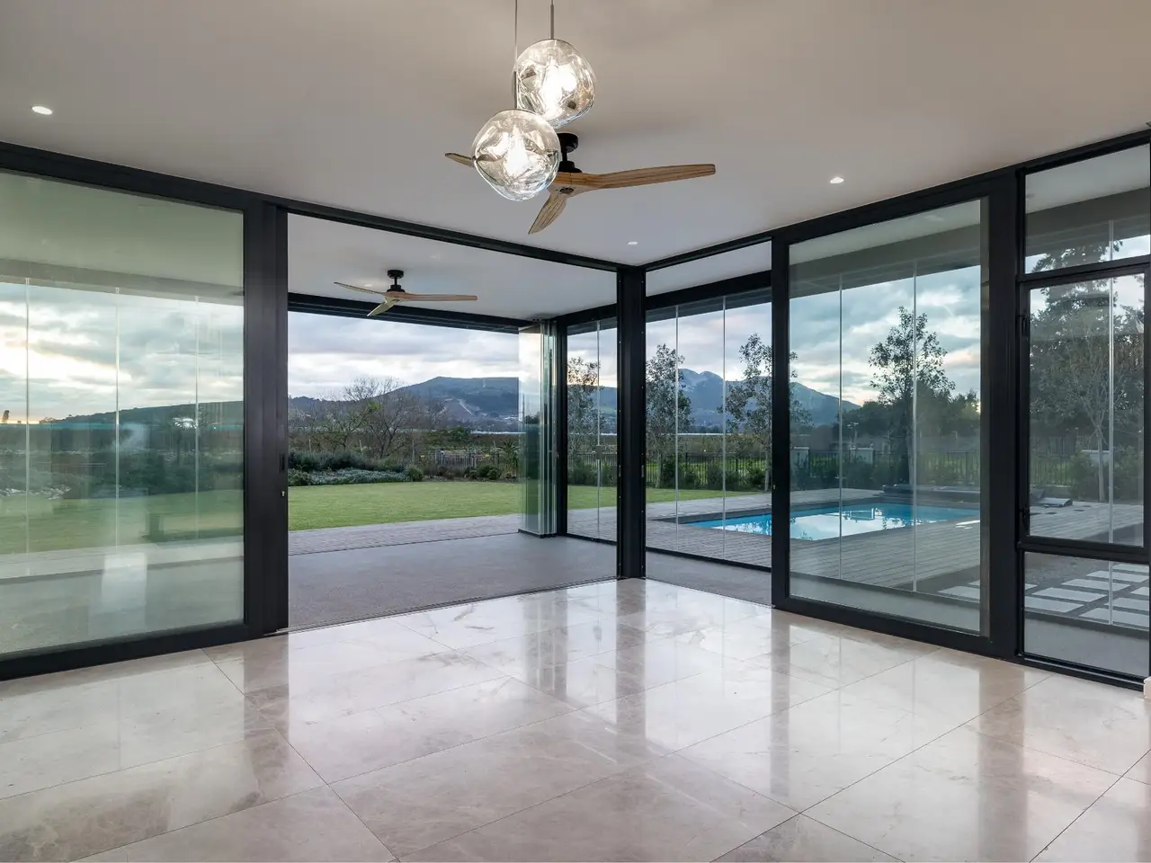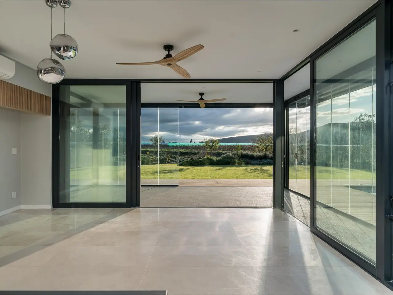 Where mountain views, modern design, and estate lifestyle meet. Situated in the prestigious River Farm area of Val de Vie Estate, this beautifully designed five-bedroom residence offers panoramic views of the Berg River, private vineyards and mountain ranges - an ideal blend of natural beauty and sophisticated living. The layout is thoughtfully planned for both family life and entertaining. The open-concept living space features large glass doors that flood the interior with natural light and lead to a covered entertainment area complete with a built-in braai and bar. A stylish kitchen with a central island, walk-in pantry, and scullery caters to both everyday use and special gatherings. A sliding window brings fresh air and scenic garden views directly into the cooking space. Upstairs, three luxurious en-suite bedrooms open onto a balcony with river and mountain vistas. The main suite is a standout, offering a spacious bathroom with double vanities and a double shower. An additional lounge upstairsGÇöideal for a home office or reading area - also enjoys its own balcony access. Downstairs, two more bedrooms (one en-suite) open to the landscaped garden, creating a private wing perfect for guests or multi-generational living. A second lounge on this level offers added flexibility for quiet evenings or family movie nights. The home is equipped with solar panels, a powerful 30kW inverter system, air conditioning throughout, and a heated saltwater pool - designed for comfort and sustainability. A double garage, separate laundry room, and staff WC round out the practical features. Living in Val de Vie Estate means access to world-class amenities including state-of-the-art security, wellness facilities, top-rated restaurants, scenic trails, polo fields, and quite a few elite schools.