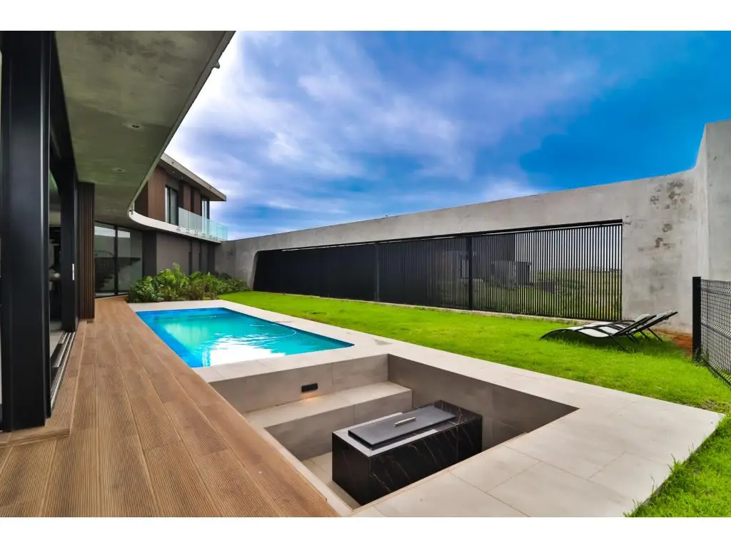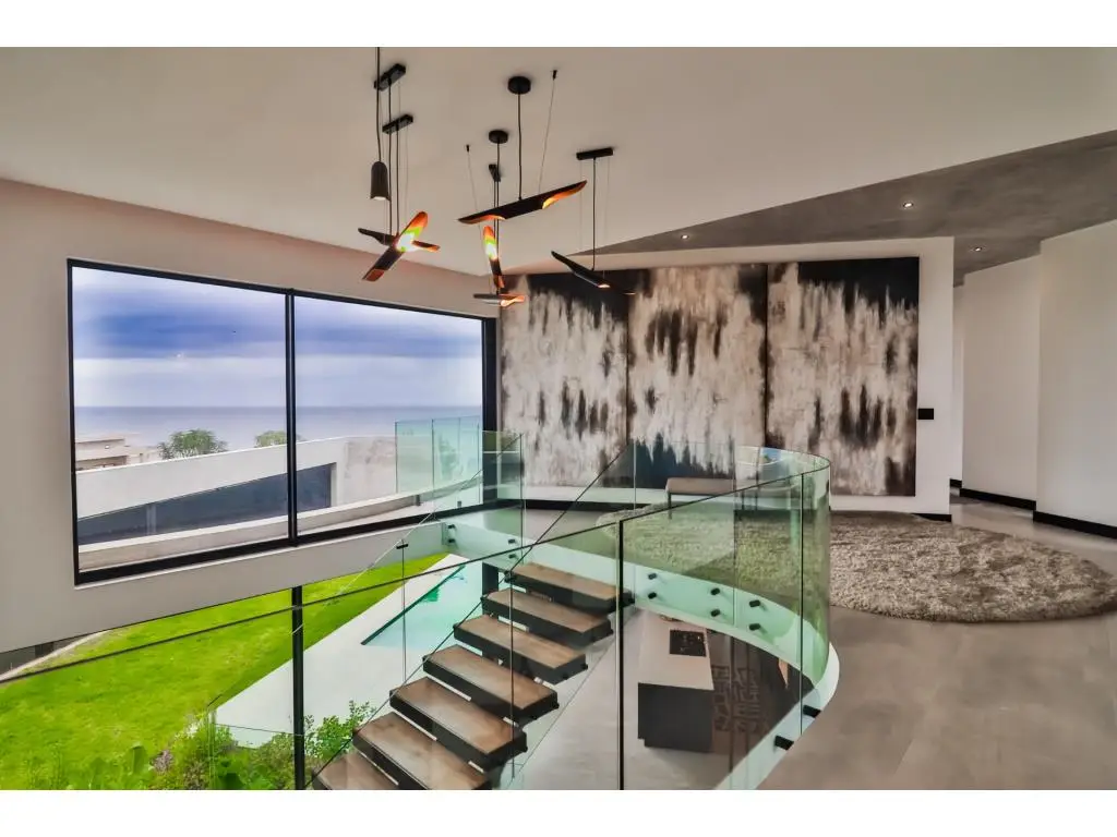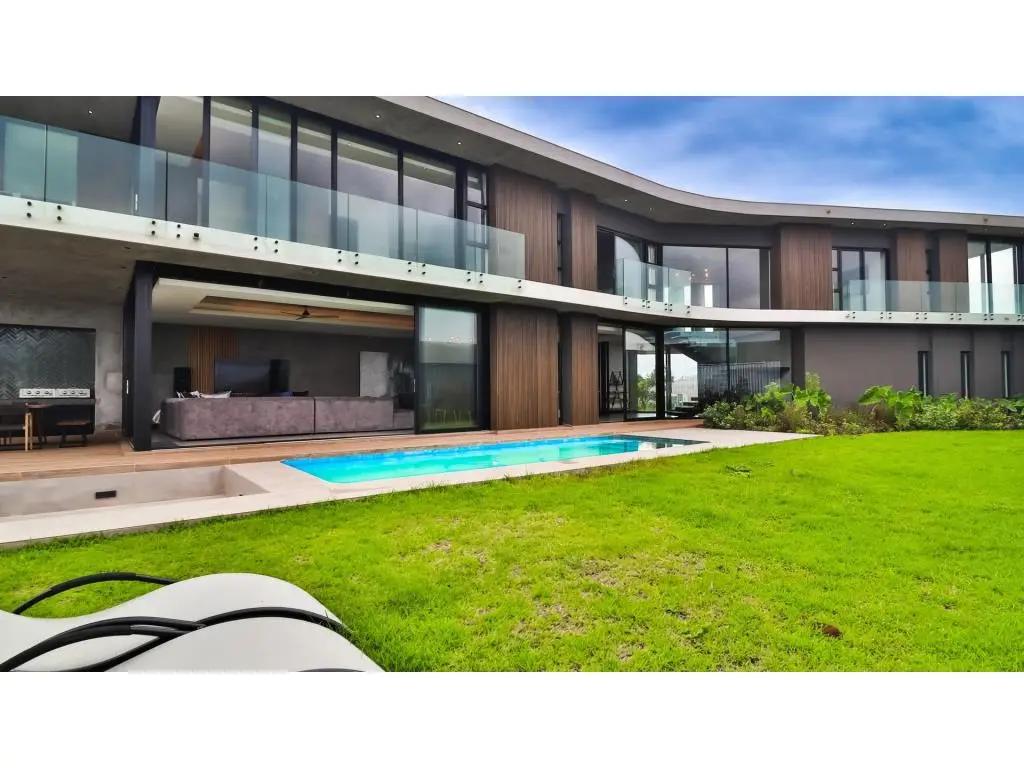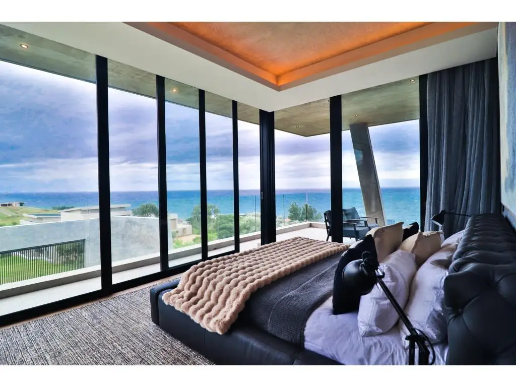 Perched in the prestigious Mont Clam Oceanside Estate in Sheffield Beach, this newly completed modern masterpiece offers the ultimate in luxury coastal living. Boasting the finest finishes throughout, the home captures breathtaking panoramic sea views from every angle. The striking architectural design seamlessly blends elegance and functionality, creating a haven of sophistication and comfort. The lower level is an entertainer's dream, featuring an open-plan kitchen and dining area that flow effortlessly into a spectacular living space. Expansive glass doors open to a lush garden, complete with a sparkling pool and fire pit, perfect for relaxation and social gatherings. A covered patio features a built in braai, and a triple garage adds convenience and security, completing this remarkable coastal home. Upstairs, four generously sized bedrooms await, each with its own en-suite bathroom, offering uninterrupted ocean vistas and access to private balconies. Natural light floods the interiors, enhancing through cleverly angled walls, a great sense of space and tranquility. Thoughtfully designed for modern living, the home ensures every detail is meticulously crafted to the highest standards. Full access to all Zululami and Seaton facilities, including private beach access, beach club, sports pavilions and more