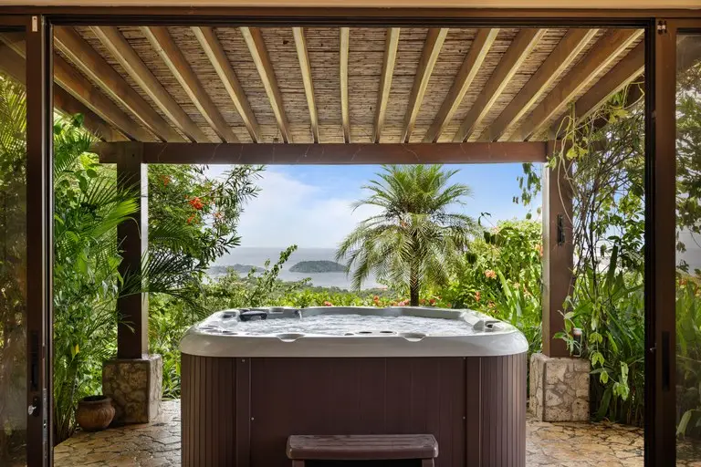 Welcome to Casa Miramar, a 4-bedroom, 4.5-bath Mediterranean-style villa located in the hills of Pacific Heights. The home's interior showcases soaring vaulted ceilings with exposed wood beams, expansive windows, and elegant finishes that highlight the stunning ocean views. The gourmet kitchen is fully equipped with high-end appliances, a breakfast bar for three, and opens to a formal dining area that seats six. The adjacent living room is spacious and inviting—ideal for entertaining or quiet evenings at home. Each of the four bedrooms features a king-size bed, en-suite bathroom, air conditioning, and generous closet space. The primary suite offers direct access to the pool terrace, a cozy seating area, and a private jacuzzi surrounded by lush greenery. Step outside to your private oasis. The infinity-edge pool overlooks the Pacific Ocean and is complemented by a fully equipped outdoor kitchen, bar, BBQ grill, and ample dining and lounging spaces—perfect for enjoying Costa Rica’s year-round tropical climate. Casa Miramar is just five minutes from some of Guanacaste’s most beautiful and secluded beaches, including Playa La Penca, Playa Prieta, and Playa Pan de Azúcar. Playa Potrero, known for its calm waters and family-friendly vibe, is also nearby. The town of Potrero offers a variety of restaurants, grocery stores, cafes, and essential services like medical clinics and pharmacies. Whether you’re looking for a serene retreat or a luxurious base for beach adventures, Casa Miramar blends elegance, comfort, and location in one unforgettable property.