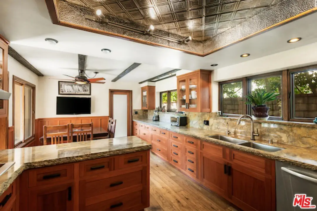 Come join the renewed sense of community in the Palisades Highlands. People are coming back and life seems almost normal here. This is a very warm home with many upgrades and generous use of wood and natural stone surfaces. The lower level has beautiful wide-plank oak floors throughout. The living room has a tongue and groove, beamed and vaulted ceiling. The kitchen is upgraded with a live-edge granite counter top, quality stainless steel appliances, induction cooktop and lots of counter and cabinet storage space. Four bedrooms and two bathrooms are all upstairs. The Primary bedroom has vaulted, tongue and groove ceiling, a unique pot belly stove gas space heater to cozy up to on those chilly winter nights. The Primary bath has a combo steam unit/bathtub/shower room that is very spa-like. The back yard has recently been completely redone with a privacy hedge and new large, low-maintenance synthetic lawn. Situated on a very quiet street, the views of the Santa Ynez Mountain Ridge brings in a peaceful nature vibe and sense of tranquility that sweeps you away from today's hustle bustle, hectic world. A fantastic amenity, the Santa Ynez Recreation Center, complete with 25 yard lap pool, kiddy pool, spa, children's playground, tennis and pickle ball courts, gym, ping-pong and billiards, is right around the corner. It is also very close to the endless network of hiking and biking trails of the Santa Monica Mountain Range, with several trailheads within a couple of minutes. Nearby local restaurants are also close and the new Caruso Center in the Palisades village is just a few minutes away. A great home in a great location that offers a great lifestyle.
