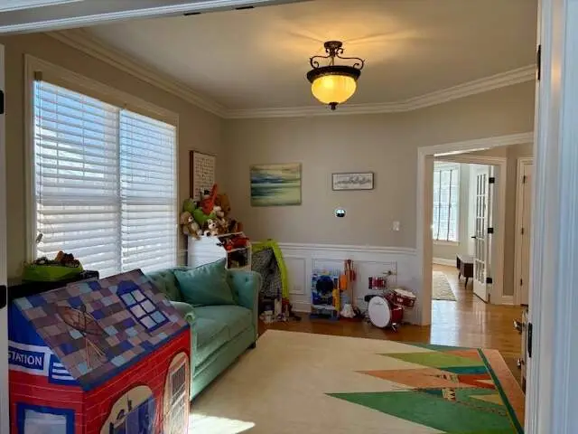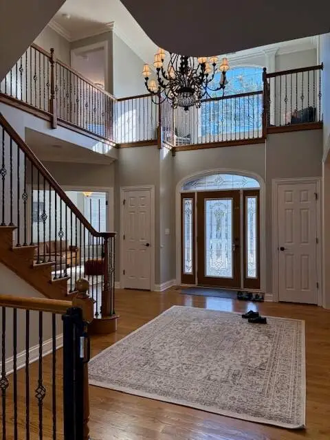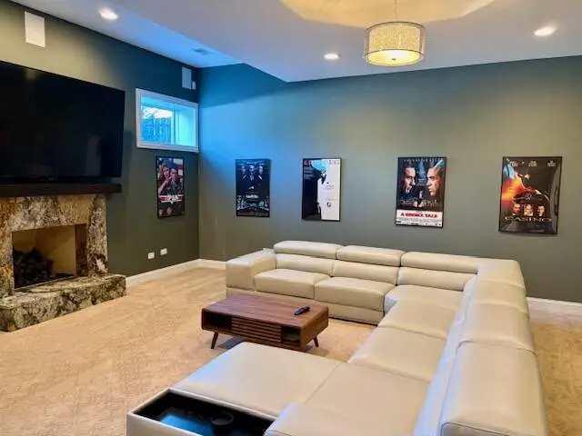 Sótano terminado con techos de 14 pies y áreas multimedia.