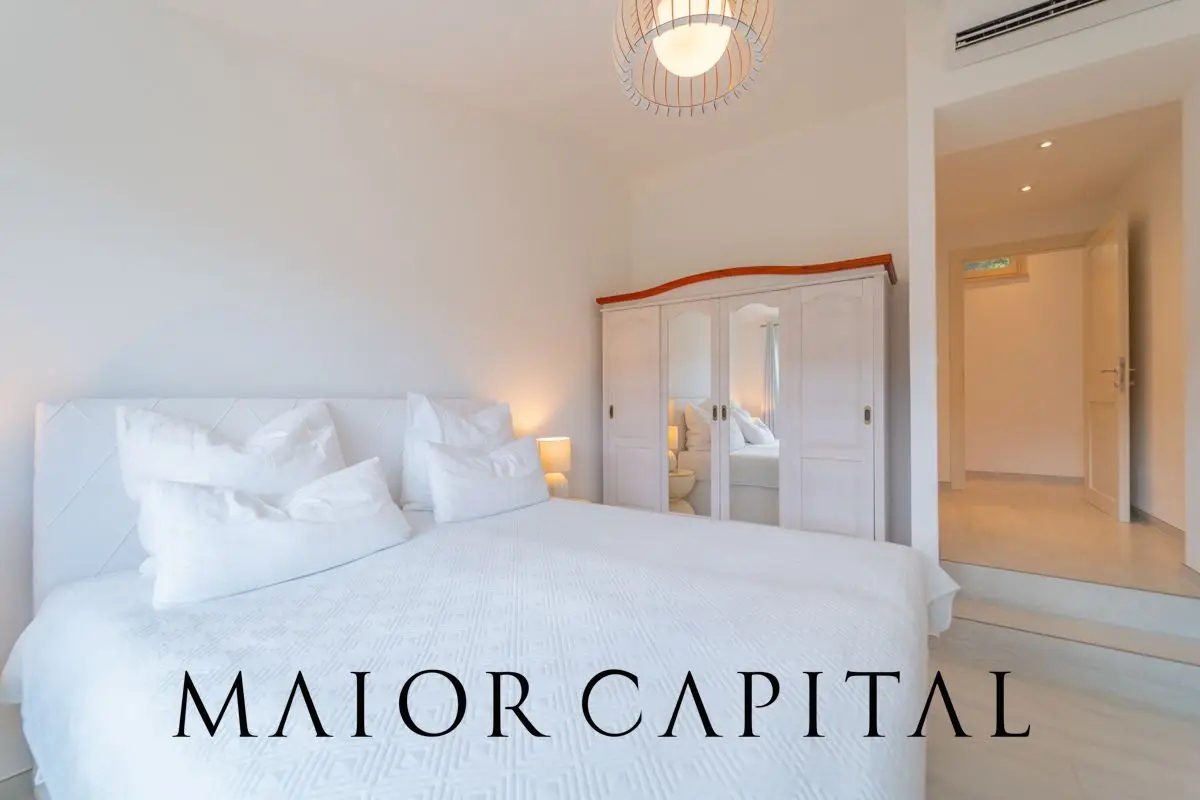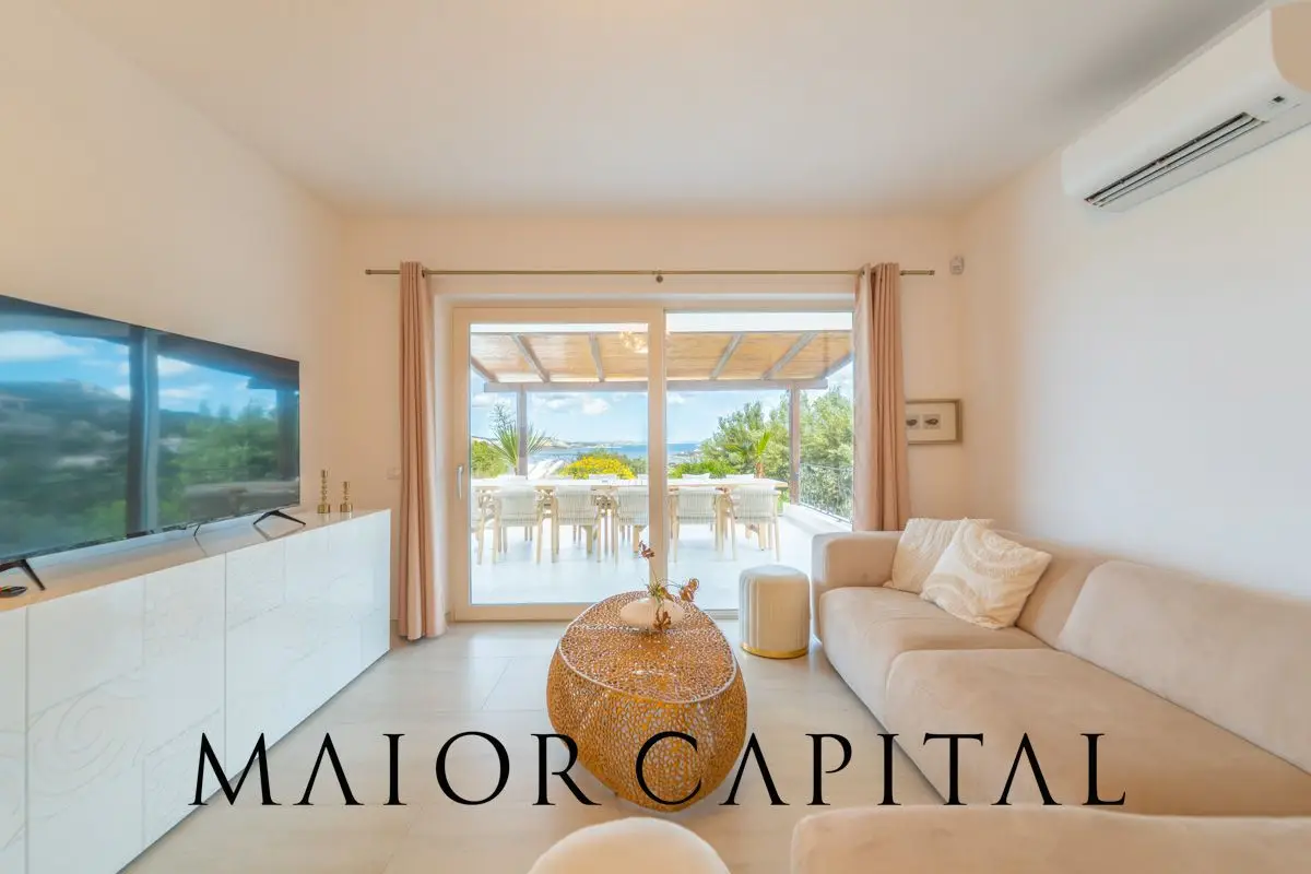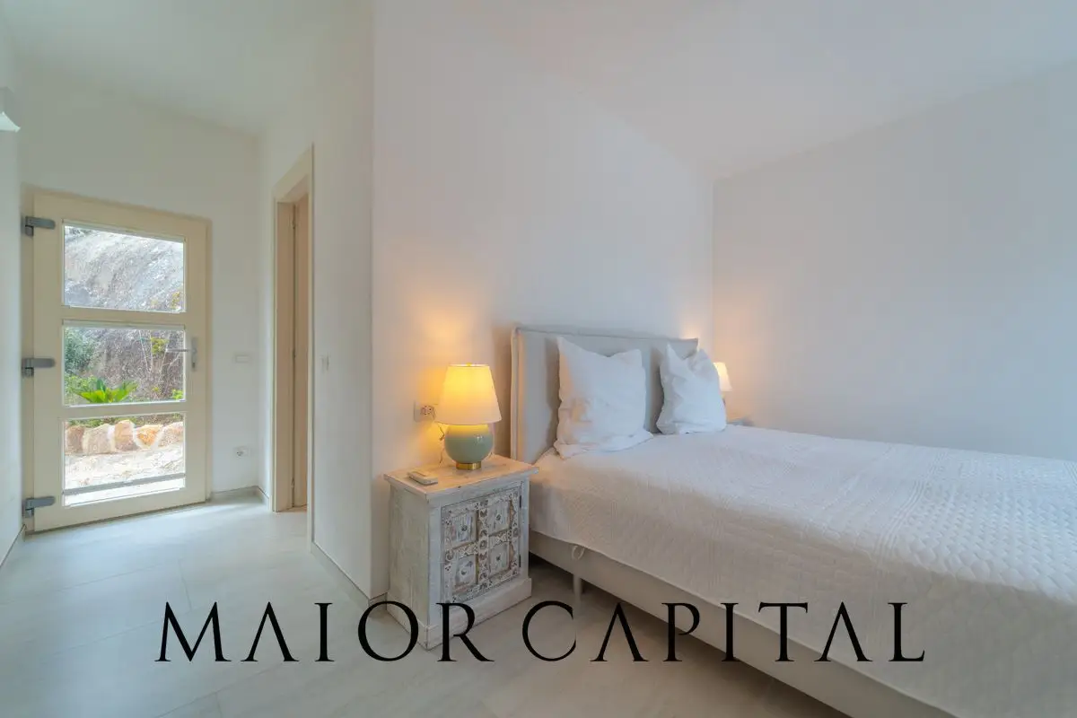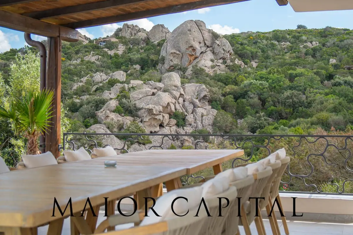 Just minutes from the historic Piazzetta — the elegant heart of the village — the villa blends harmoniously into its surroundings, embraced by wind-sculpted granite rocks and a lush private Mediterranean garden of approx. 2,000 sqm.