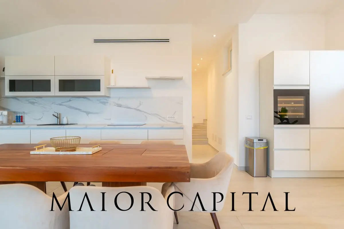 Spanning approx. 160 sqm over multiple levels, the villa is designed to ensure maximum privacy and living comfort. Interiors are decorated in soft tones of white and beige to enhance light and space, in harmony with the surrounding landscape.