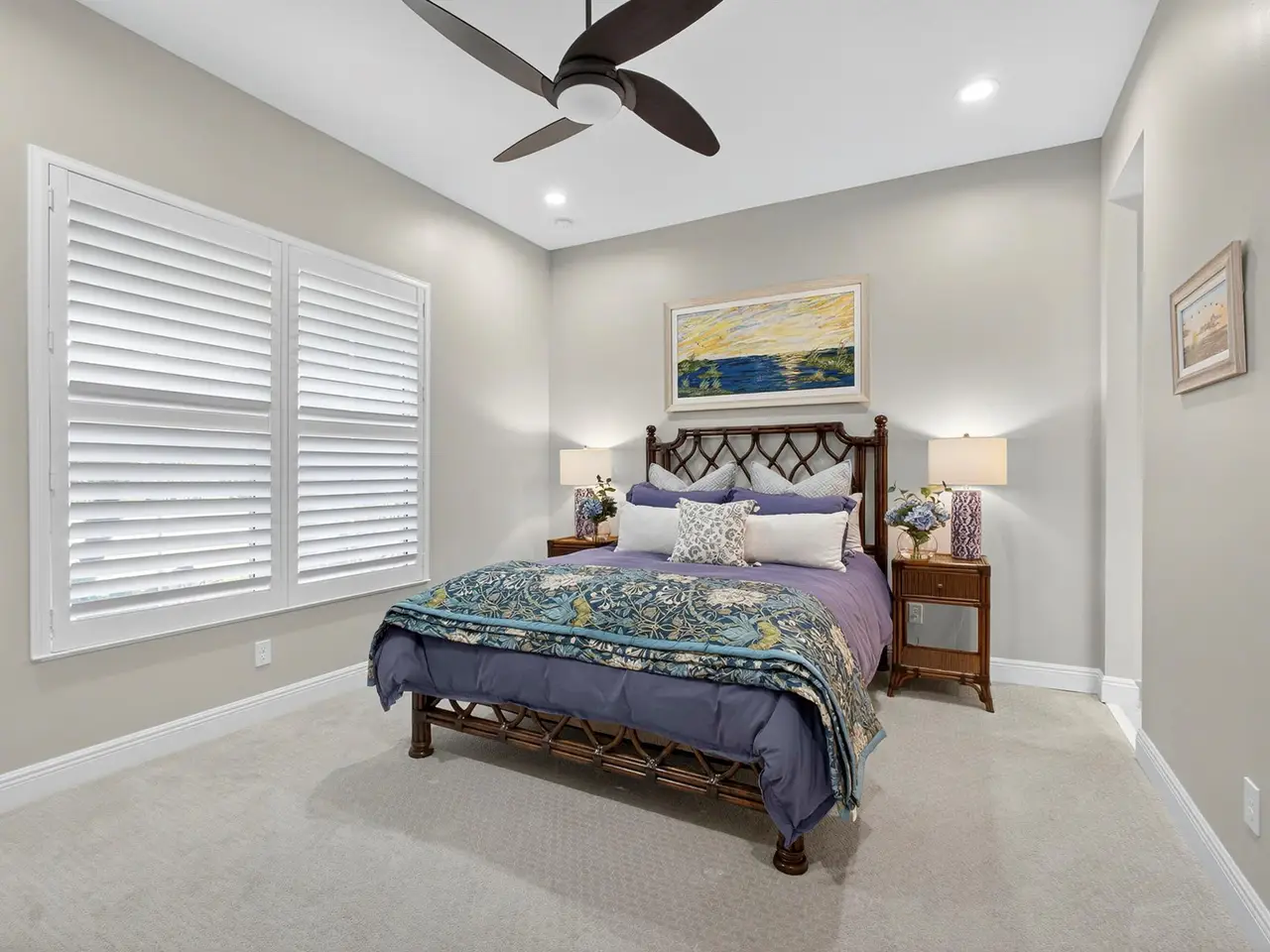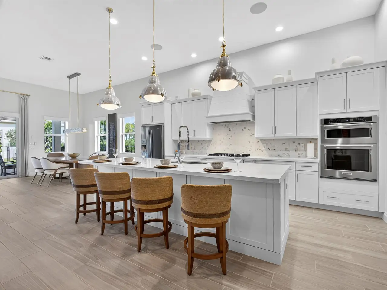 This Inviting home greets you with a covered porch and a welcoming entry, leading into a grand foyer that opens to an expansive great room with a resort style ambiance. Offering 3 bedrooms, 3 baths plus office on a spacious corner lot. Enjoy the convenience of extra guest parking and walking distance to the Club with a multitude of amenities. Just a few of the upgraded features throughout include, custom cabinetry, designer faucets, upgraded flooring, French doors, granite countertops, tile backsplash, upgraded baths, enhanced electrical, custom window treatments, custom garage cabinets, ceiling fans, outdoor kitchen, designer lighting upgrades, built in speakers, upgraded washer and dryer.
