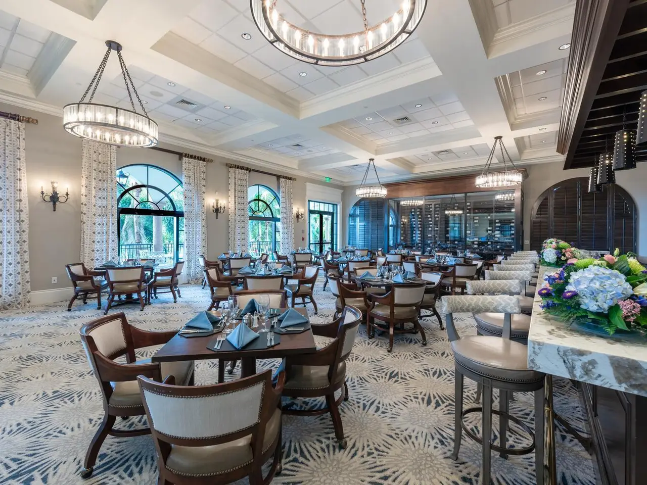 Live luxuriously on the 16th green of the Arnold Palmer Signature Course in the prestigious Frenchman's Reserve, a flagship Gold Community. This elegant 4-bedroom plus a den/office, 5.1-bath estate offers 4,465 sq ft of refined living space with dramatic 21-foot ceilings and abundant natural light throughout. Built by Toll Brothers, this home features a thoughtfully designed layout with a first-floor guest suite offering private terrace access, a spacious den/office, and a grand primary suite with dual bathrooms and sitting area. Upstairs, you'll find a versatile loft and two additional guest bedrooms; each with ensuite baths, creating the perfect setup for privacy and comfort. The second floor also offers an oversized loft area perfect for/ optional fifth bedroom.