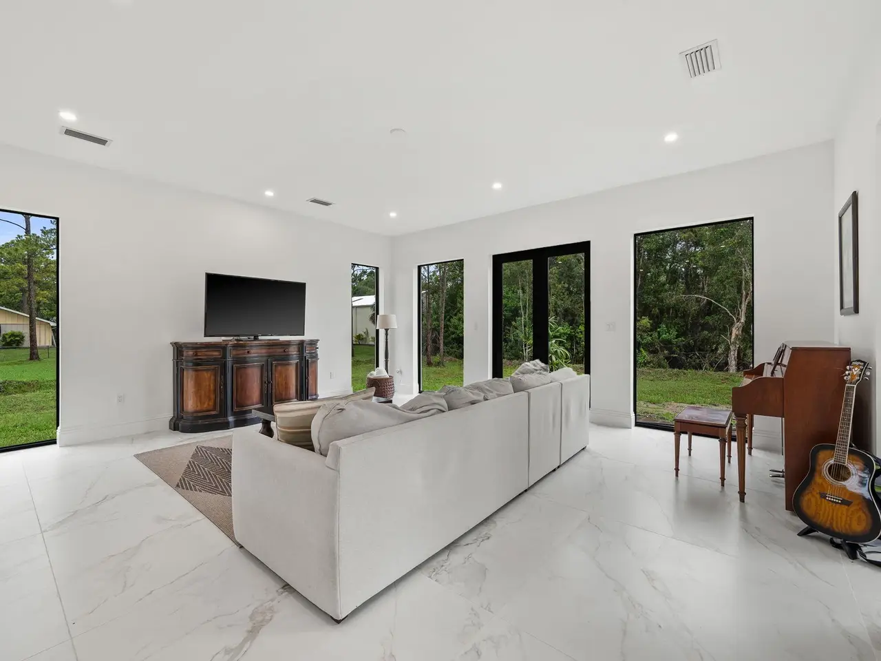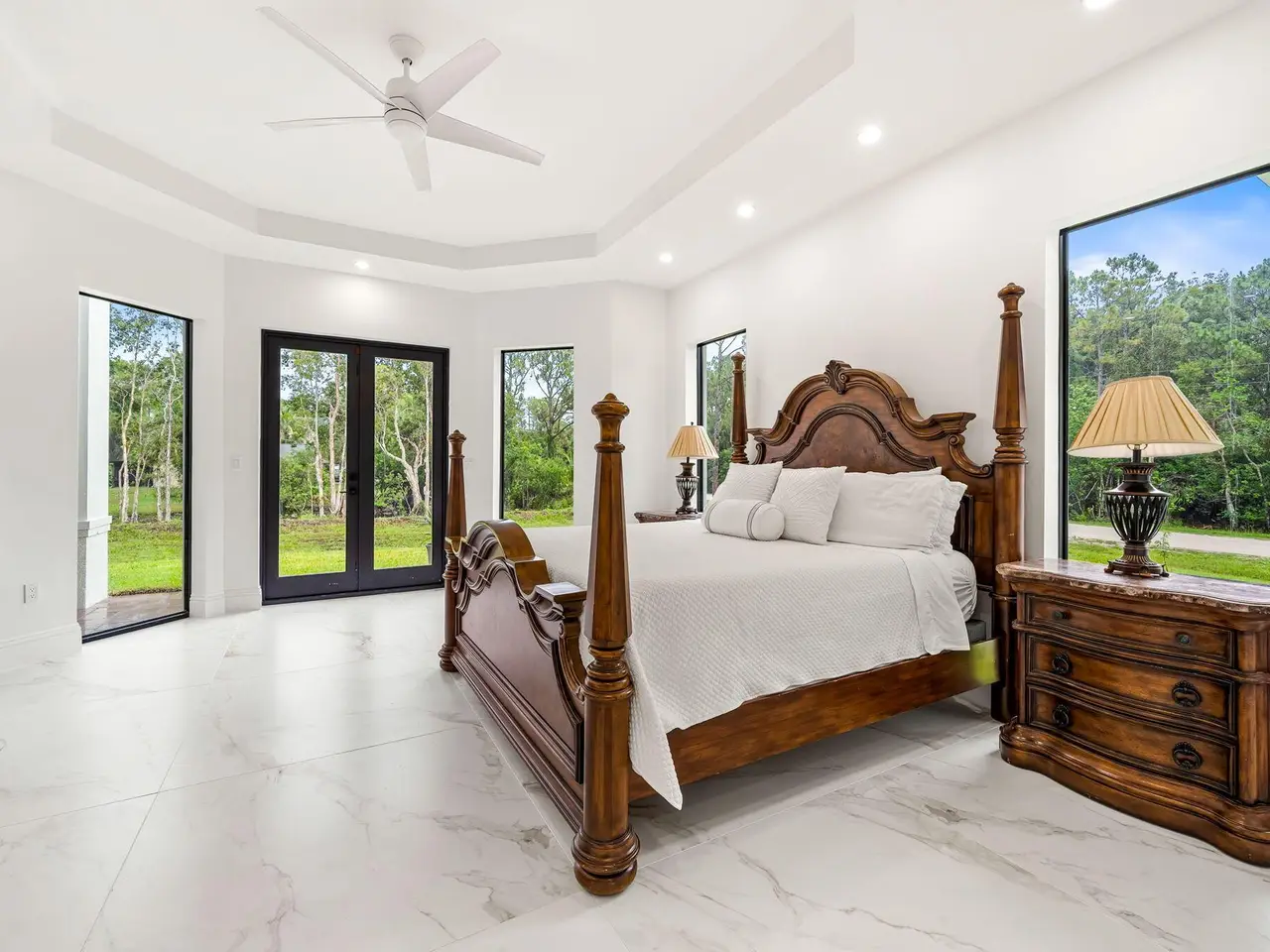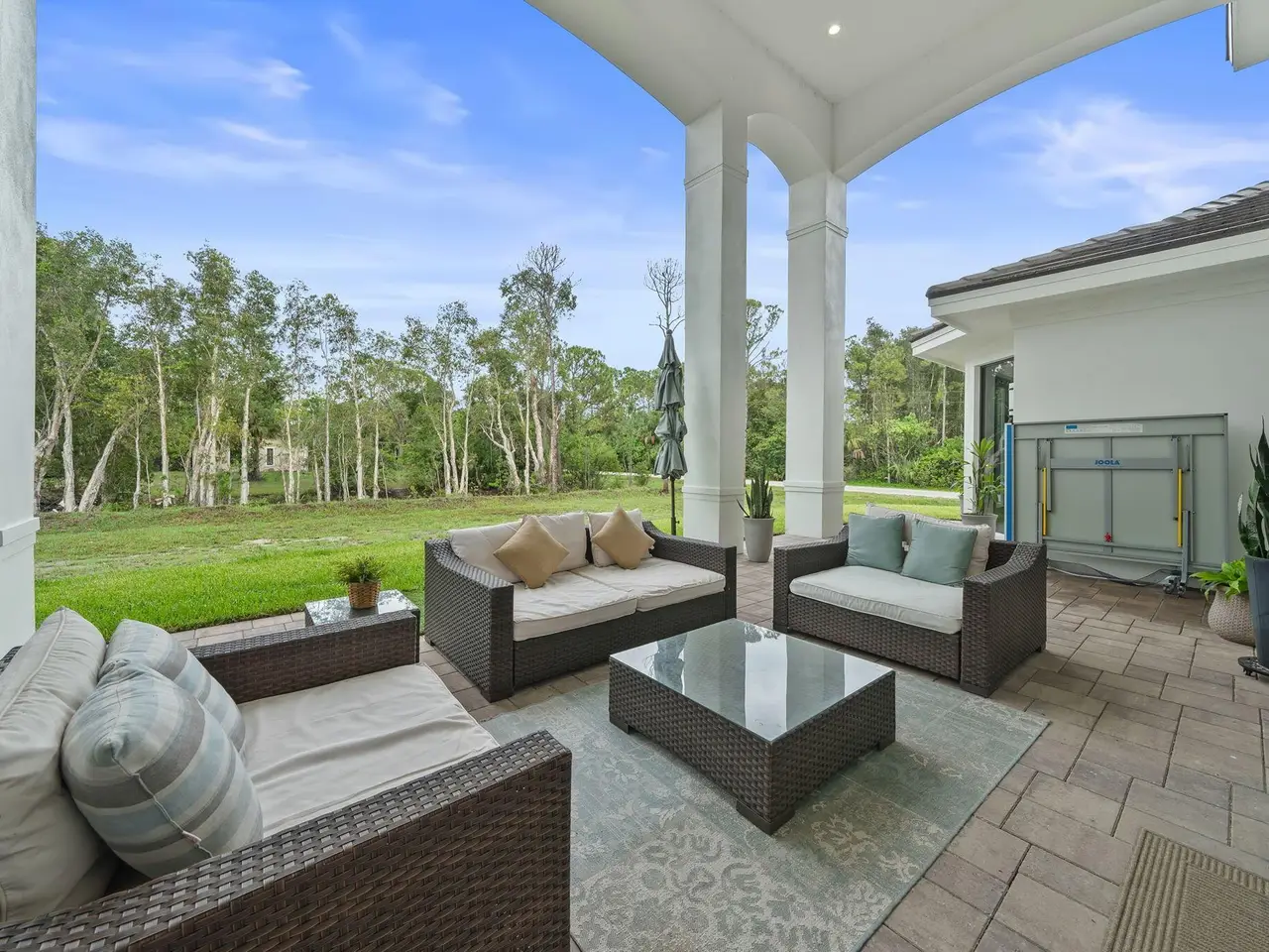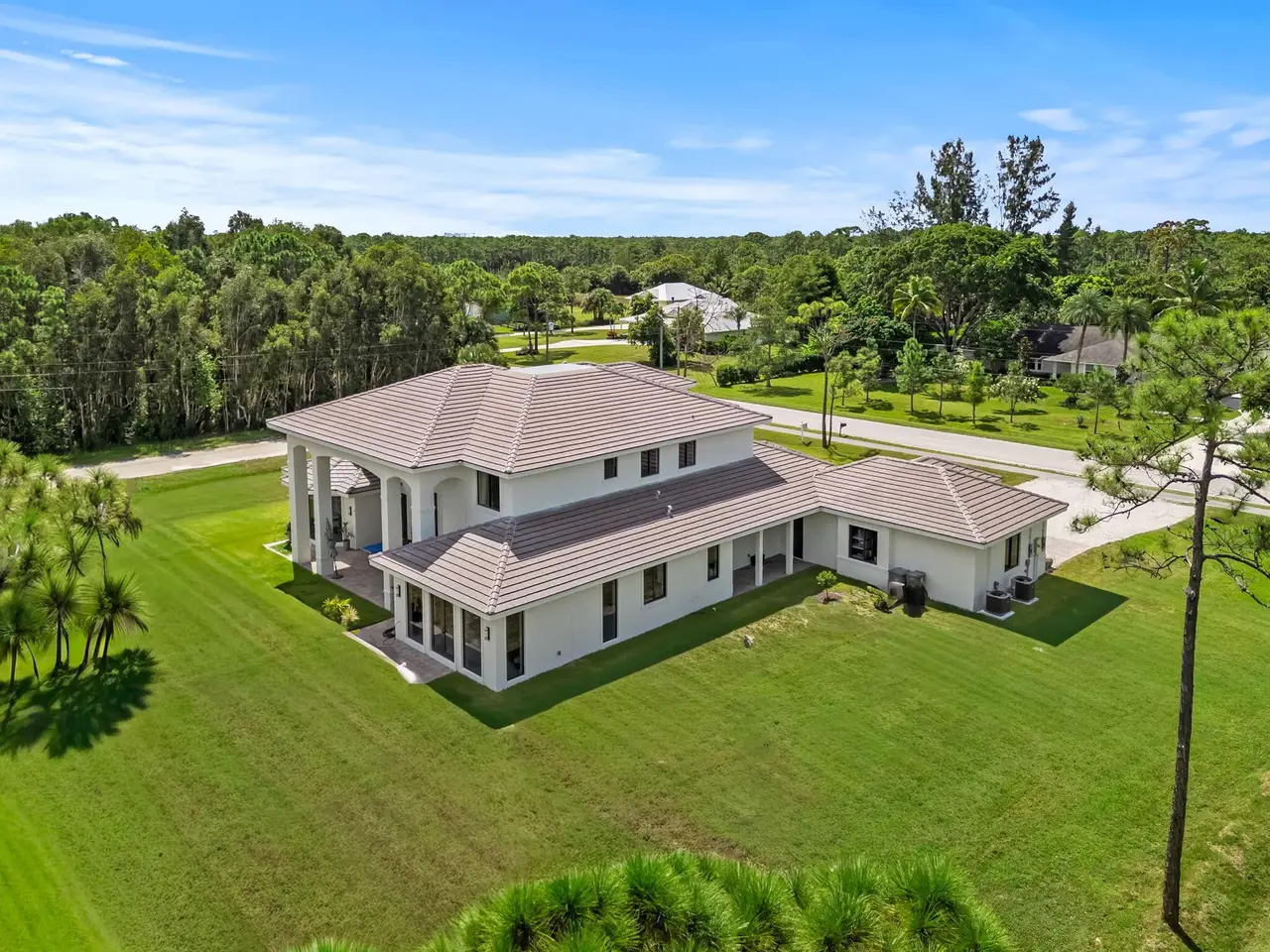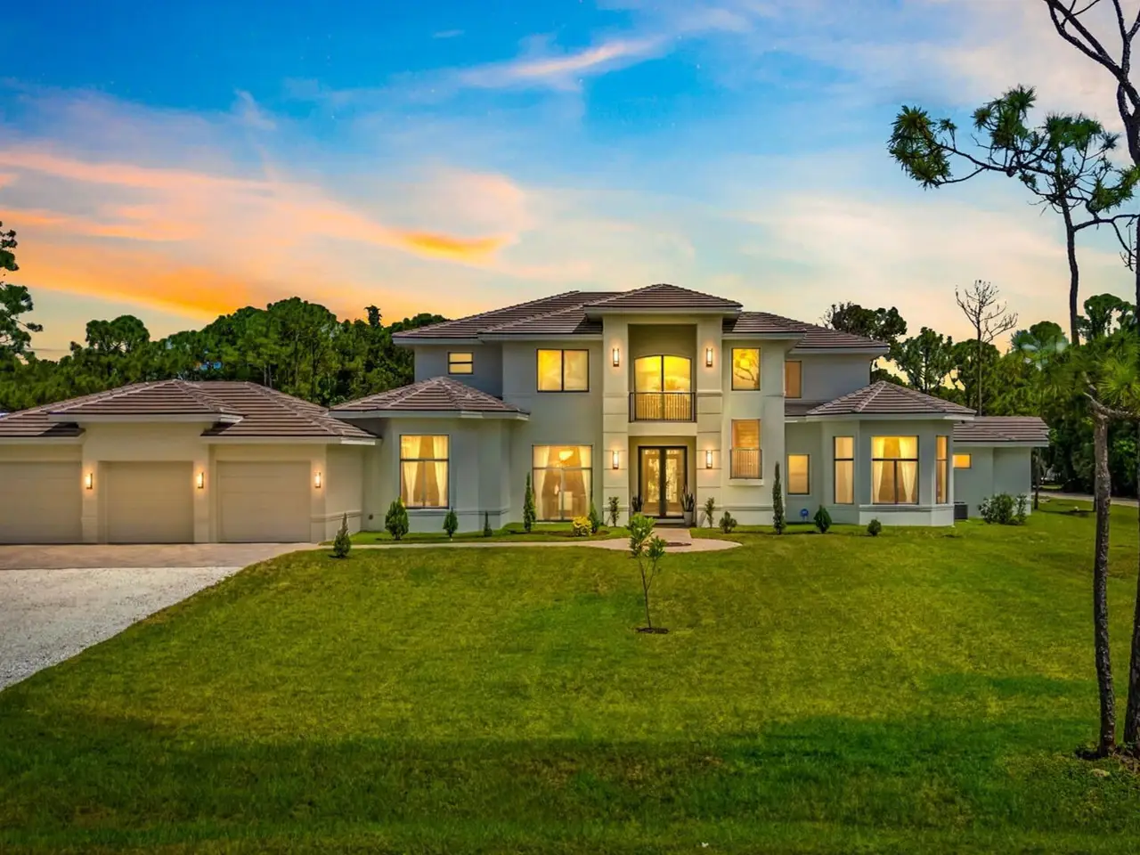 Step into your own private resort compound in Palm Beach Country Estates, a brand new 2024 luxury home designed for both grand entertaining and tranquil everyday living. Now, currently priced $400,000 below appraised value (appraisal in document section of listing) and an unbelievable value for new construction at appx $450/SqFt. Situated on a premier 1+ acre corner lot with city water and a prime location near the main entrance, this custom-built estate offers 5,495 sq. ft. of beautifully crafted interiors, featuring 5 bedrooms plus an office and loft, and 6.5 bathrooms including private en suites and a convenient cabana bath.From its striking architectural elevations to its long private driveway and extra deep 3 car garage, every element of this property exudes scale and