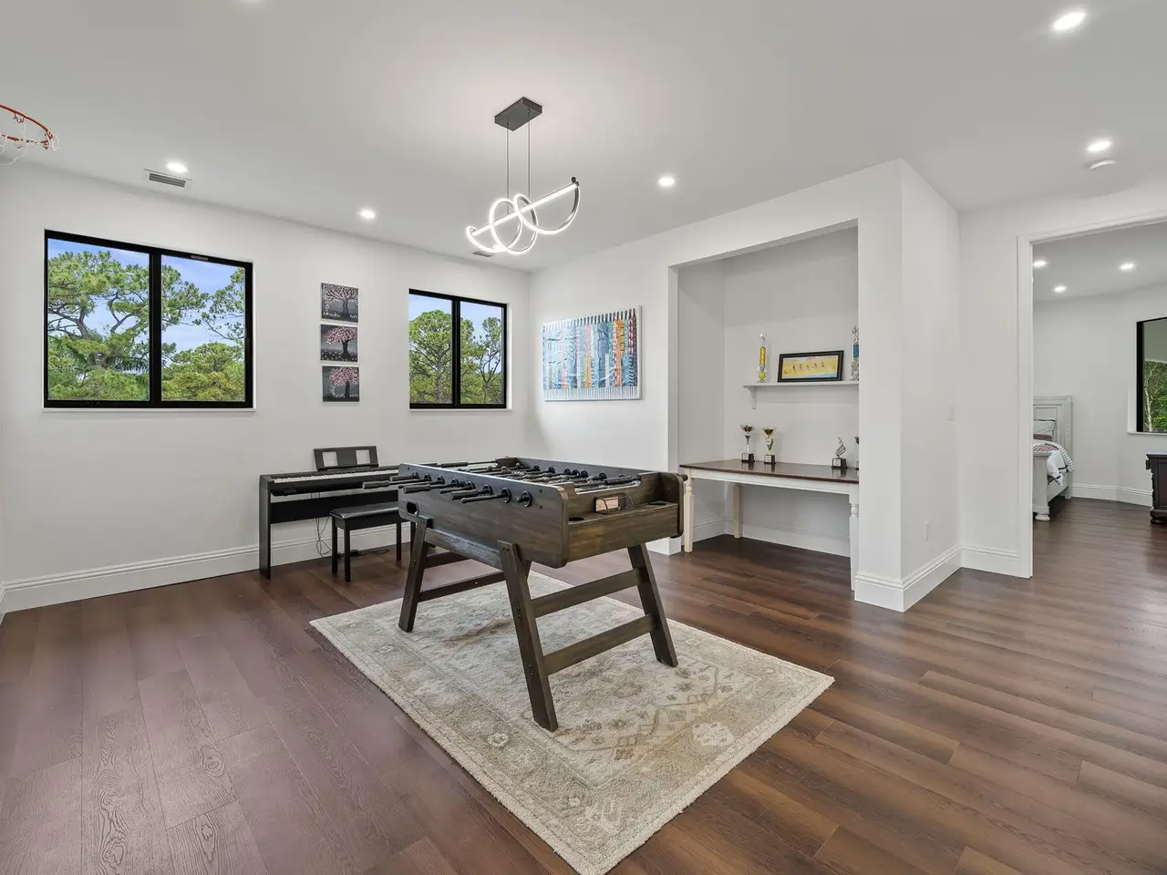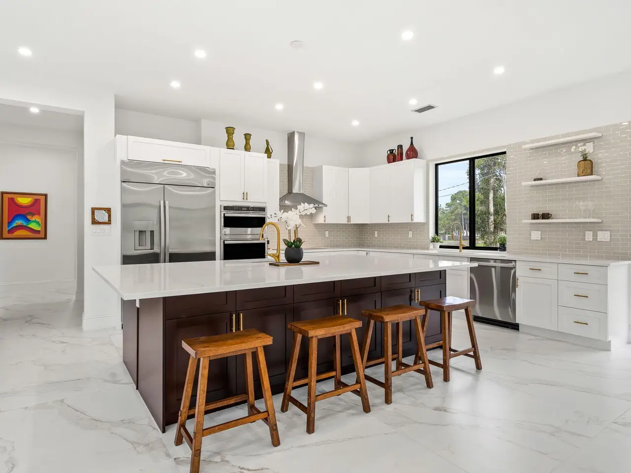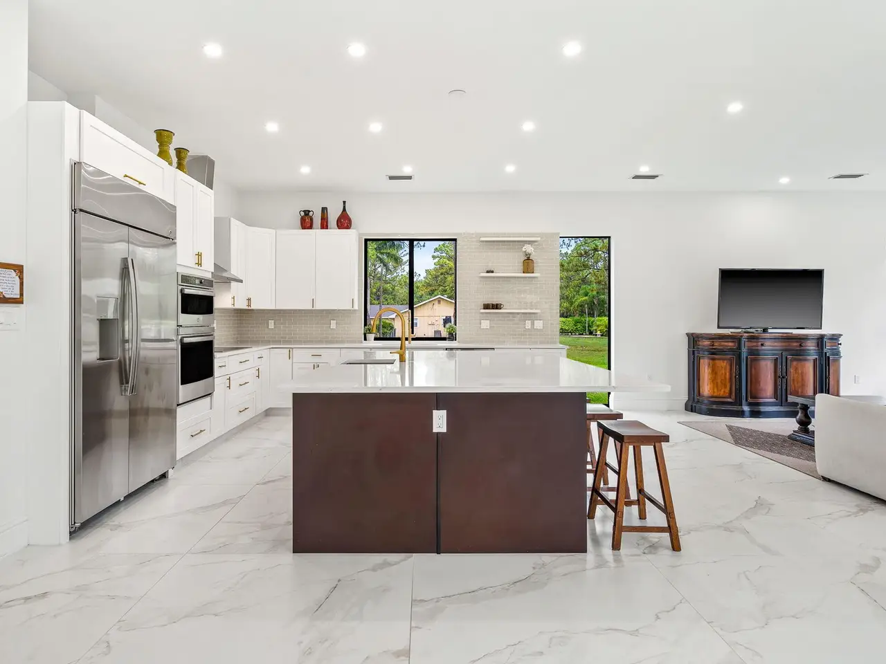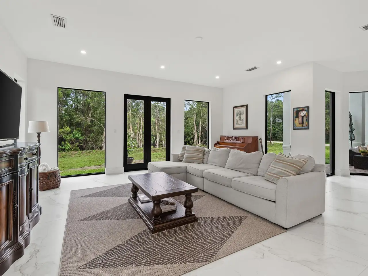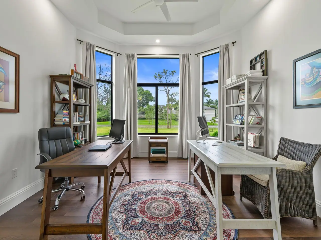 Step into your own private resort compound in Palm Beach Country Estates, a brand new 2024 luxury home designed for both grand entertaining and tranquil everyday living. Now, currently priced $400,000 below appraised value (appraisal in document section of listing) and an unbelievable value for new construction at appx $450/SqFt. Situated on a premier 1+ acre corner lot with city water and a prime location near the main entrance, this custom-built estate offers 5,495 sq. ft. of beautifully crafted interiors, featuring 5 bedrooms plus an office and loft, and 6.5 bathrooms including private en suites and a convenient cabana bath.From its striking architectural elevations to its long private driveway and extra deep 3 car garage, every element of this property exudes scale and