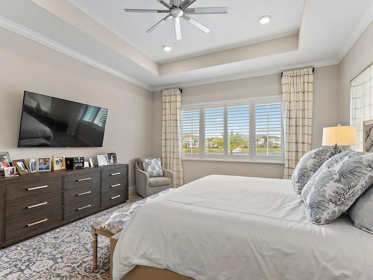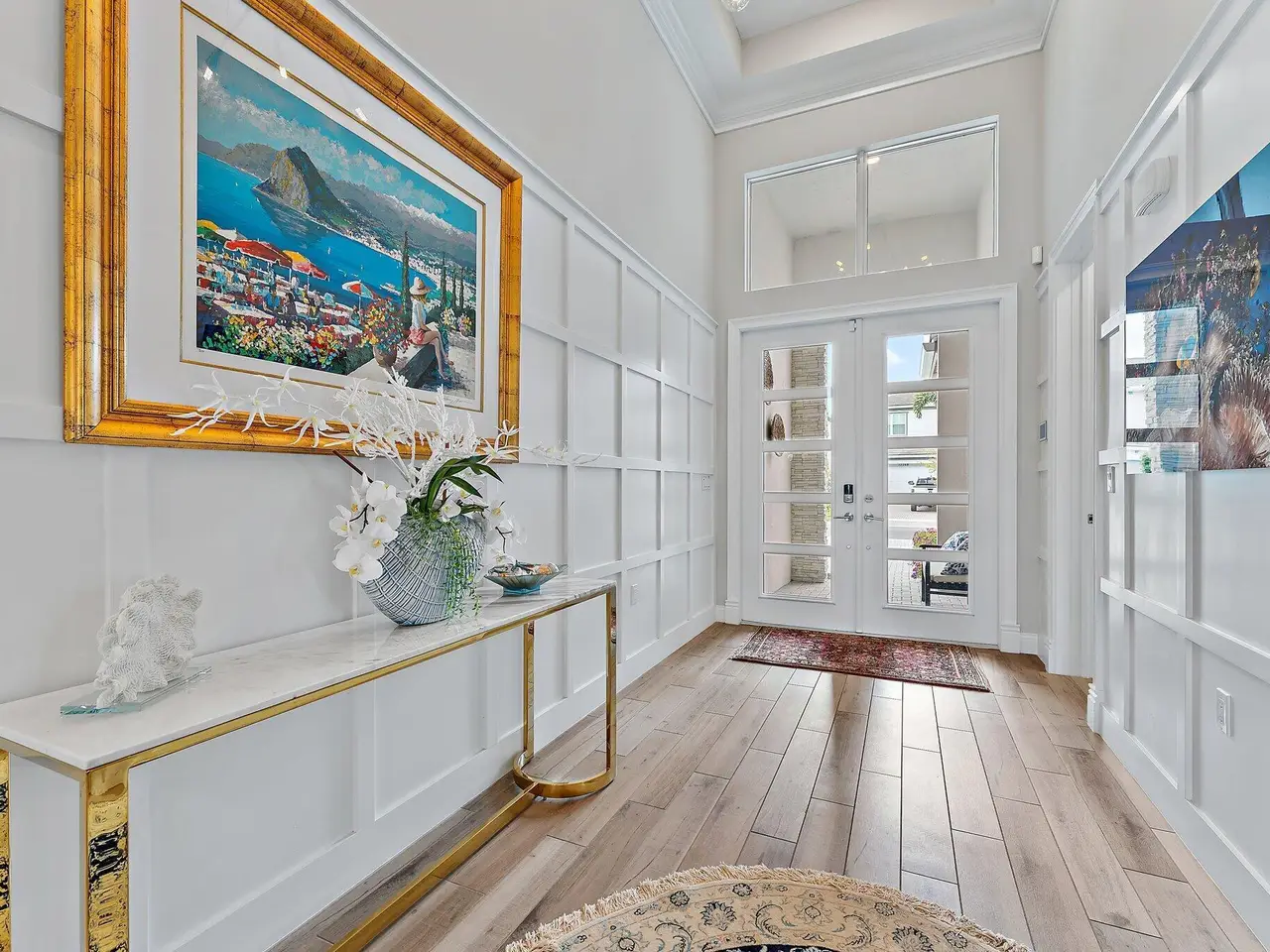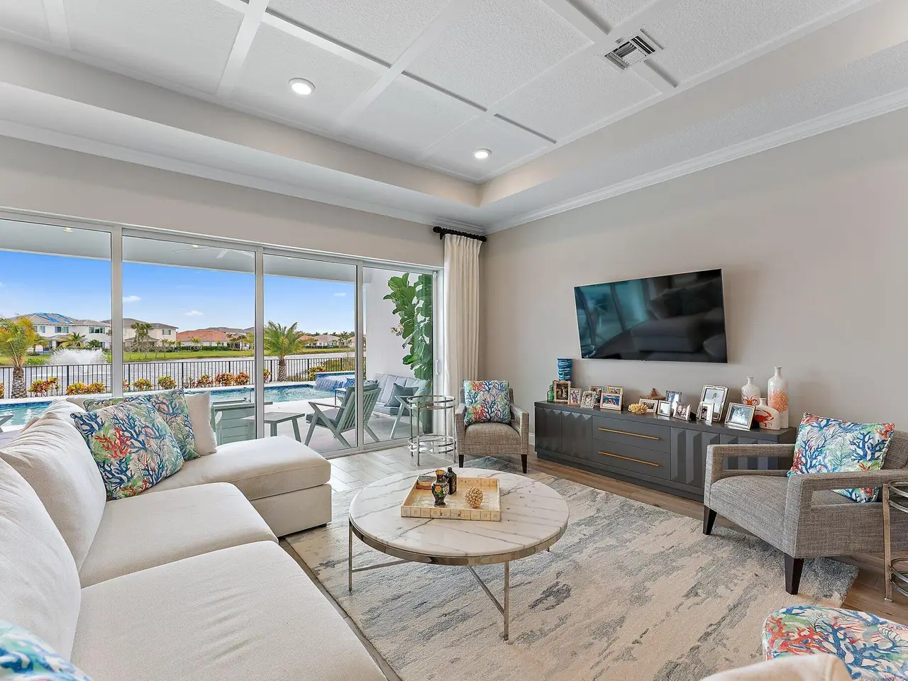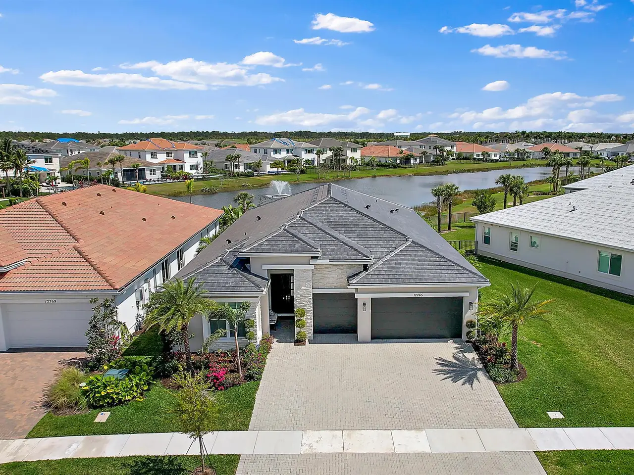 Enjoy stunning wide lake views from the back yard of this professionally decorated home built by K. Hovnanian Homes in 2023. Avenir is conveniently located near Sand Hill Crane Golf Club, an 18-hole championship course, PBIA, shopping and fine dining. Community amenities include resort-style pools, spa, pickleball, tennis, two fitness rooms, indoor/outdoor lounge, outdoor game area, playground, community club house, and much more.