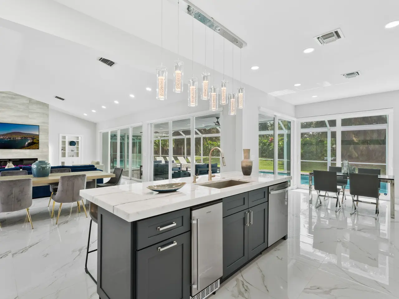 Masterfully modernized estate home in world-renowned PGA National. This stunning one-story CBS home spans over 3,800 sq. ft. of living space with 4 bedrooms & 4.5 baths. This residence features 2 large primary suites and a very private guest suite with its own entry & dry bar--perfect for in-laws or extended stays. Every detail has been upgraded: new roof, impact windows & doors, Lutron smart system, & imported porcelain floors from Spain throughout. The chef's kitchen includes double ovens, vented hood, standalone ice maker, & filtered water tap. All baths are newly redesigned with elegant finishes. Outside, enjoy a resurfaced pool, new heater, screen enclosure, & paver patio ideal for entertaining. This is your opportunity to live steps away from an internationally acclaimed golf resort.