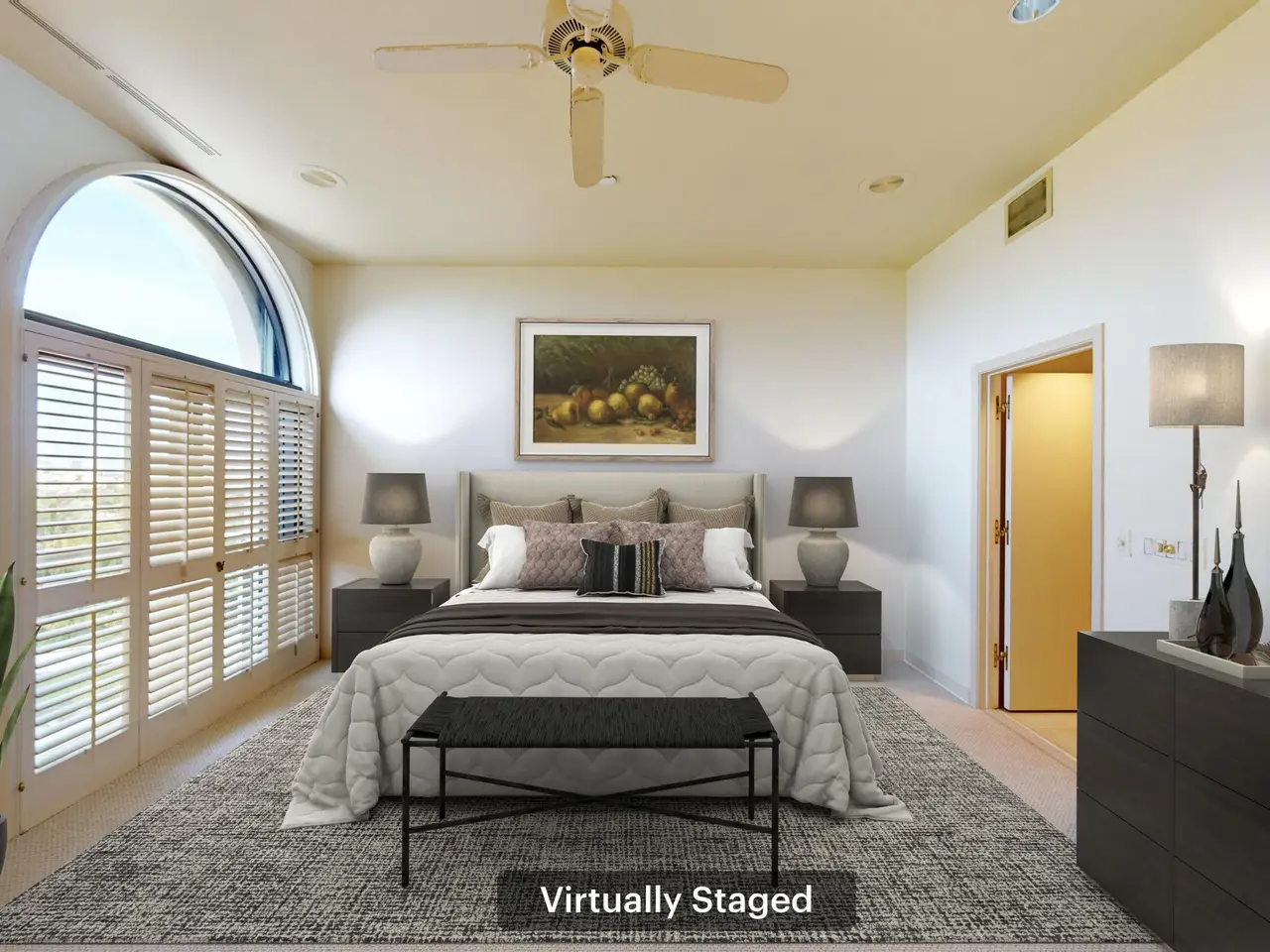 This elegant Palm Beach penthouse overlooks the city skyline, ocean, and The Breakers Hotel. Once owned by many notable socialites, this 3-bedroom, 3-bath residence offers scenic views and unmatched privacy. High ceilings and floor-to-ceiling windows fill the home with natural light, opening onto a covered patio perfect for taking panoramic views of the golf course, city & ocean. The spacious livingroom is lined with multiple windows and adjoins a separate kitchen with an island and a cozy bedroom/office down the hall.The primary suite, located just off the entry, offers expansive, boutique-style closets and a luxurious bath with soaking tub, walk-in shower, and dual vanities. A guest suite next door features its own en suite bath and Juliet balcony overlooking downtown West Palm Beach