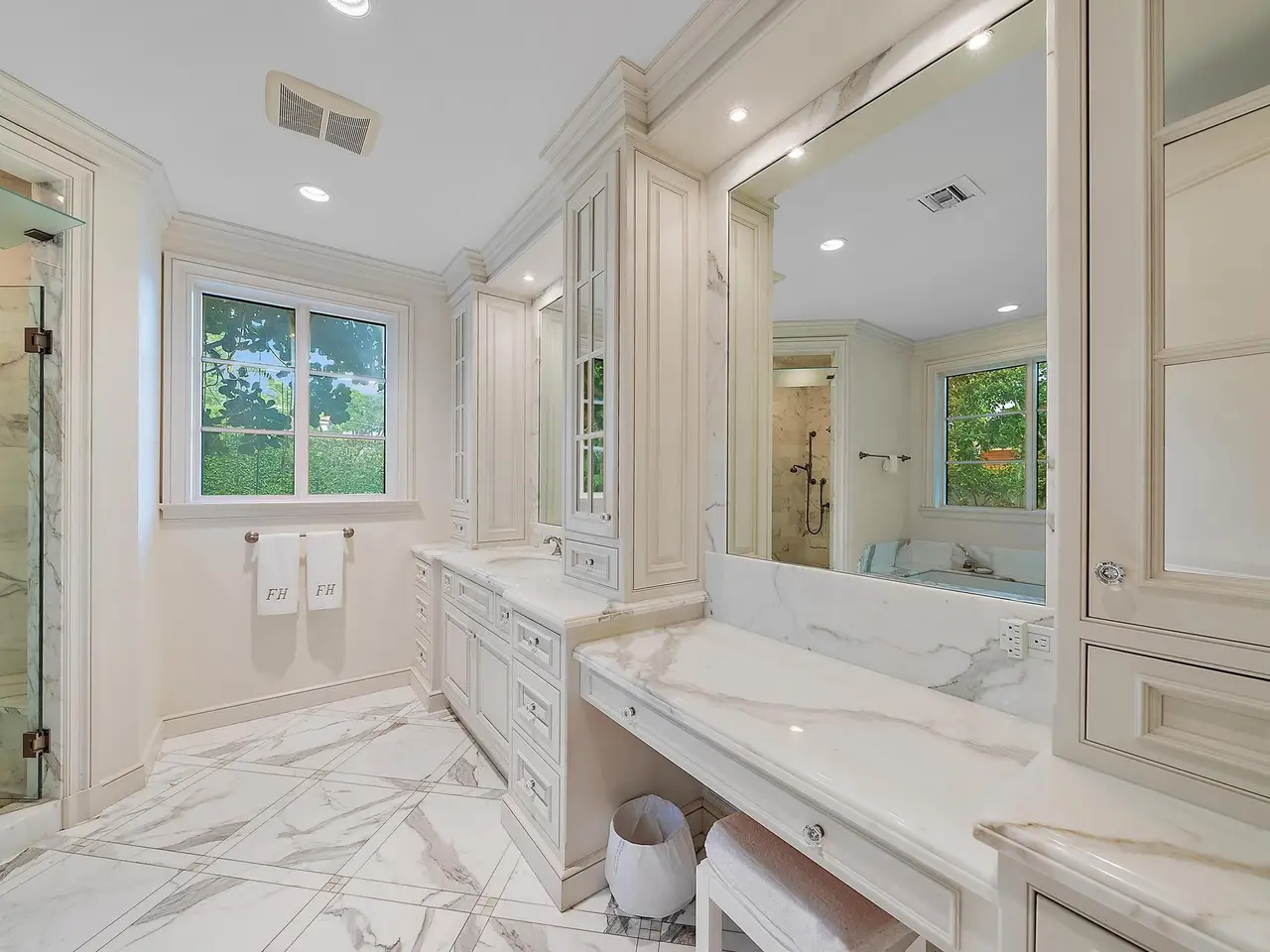 Discover this exquisite West Indies-style home, built and finished by Leeds Custom Design, and nestled on a picturesque 1/3-acre lot. An inviting open great room welcomes you, featuring a dual-sided fireplace that elegantly connects to the dining area. The kitchen is a culinary dream, showcasing a state-of-the-art Wentworth kitchen with Wolf, Sub-Zero, and Miele appliances, along with a large island and cozy breakfast area. The family room, complete with a home theater, is adjacent to a relaxing covert loggia with a beautiful wall fountain. Retreat to the primary suite, which exudes elegance with two ensuite bathrooms. All other bedrooms, each with an ensuite bath, are located on the second floor for added privacy.