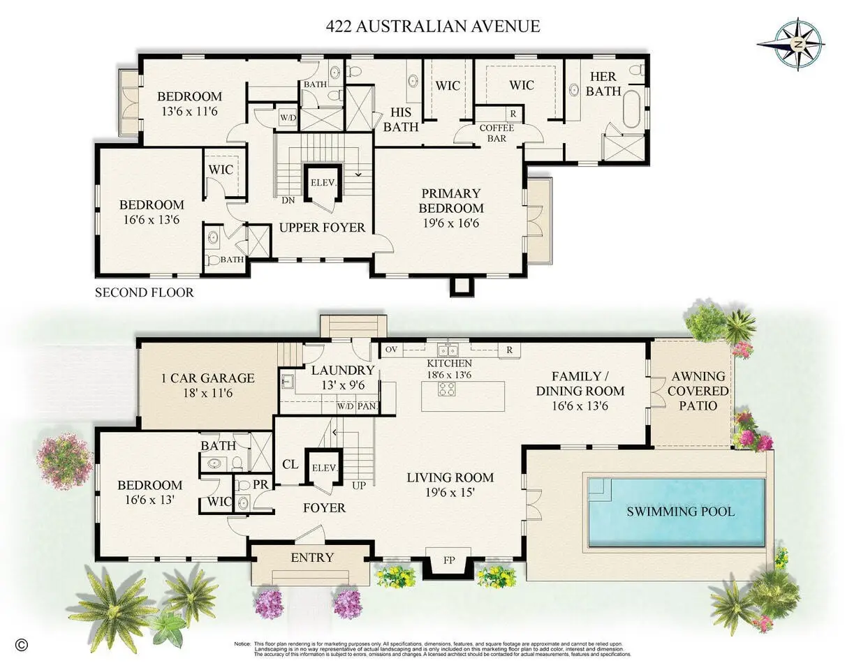 Welcome to 422 Australian Avenue, a newly constructed state-of-the-art Modern Mediterranean home with quintessential island finishes, situated ideally in the heart of Palm Beach. This 4 bedroom, 5 and a half bathroom turn-key residence is move-in ready and boasts classic tropical details including Cypress trim and Dominican Coral hardscape, French limestone floors throughout the first floor, hard-wood on the second floor, and an immaculately well thought out floor plan. The property features an elevator, high ceilings, outdoor loggia and shower, and a surplus of natural light throughout. The Primary suite includes his and her baths, his and her closets, and a lovely wet bar. With its perfect midtown locale, 422 Australian Avenue is just 3 blocks from renowned shopping and dining on Worth Avenue, with the Palm Beach Marina and Park also a stone's throw away. With new construction just recently completed in 2025, this mid-island property is expected to receive a Certificate of Occupancy shortly and will soon be ready for immediate enjoyment.
