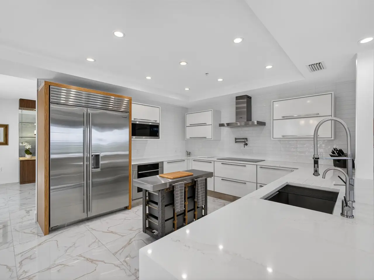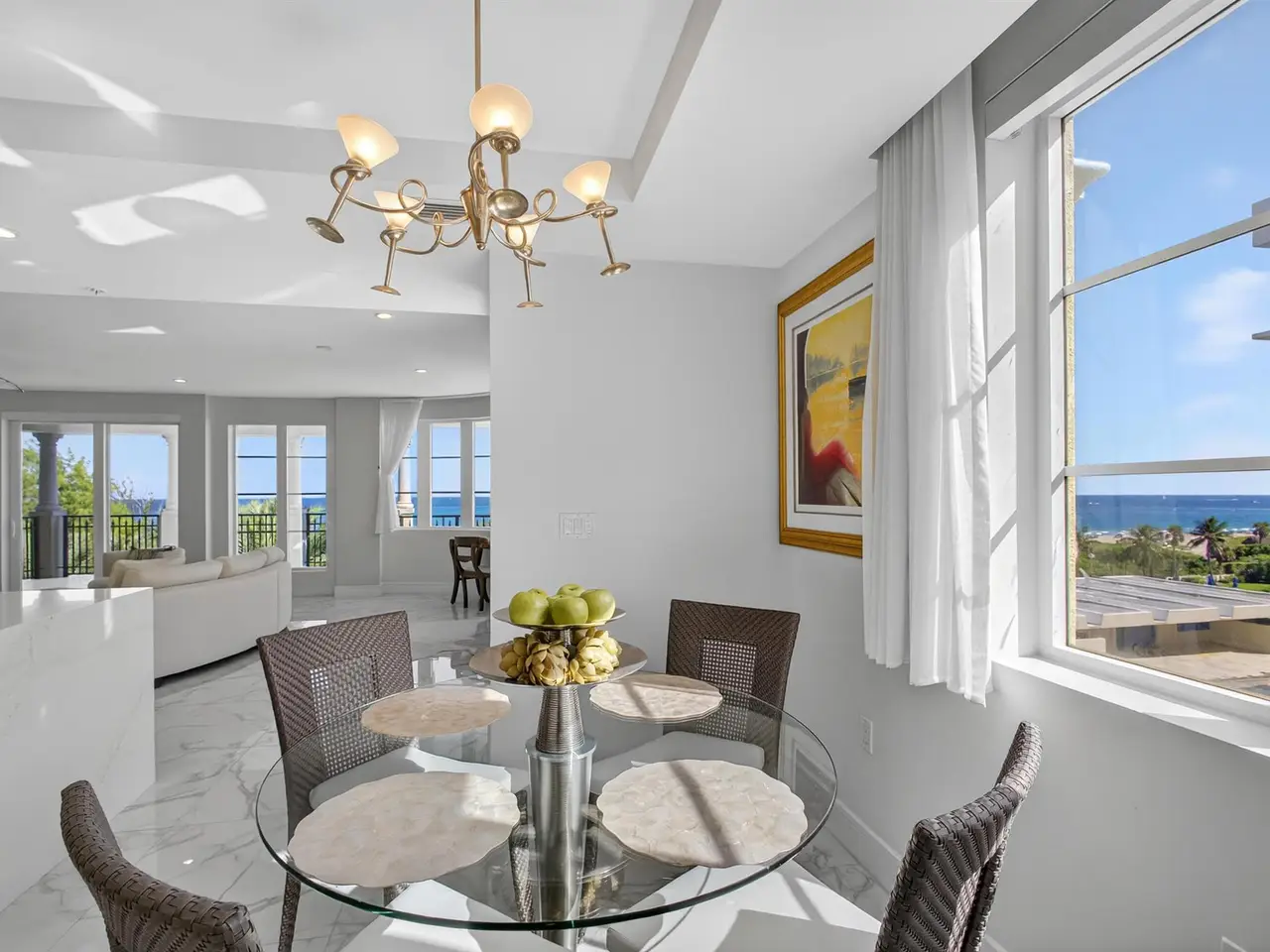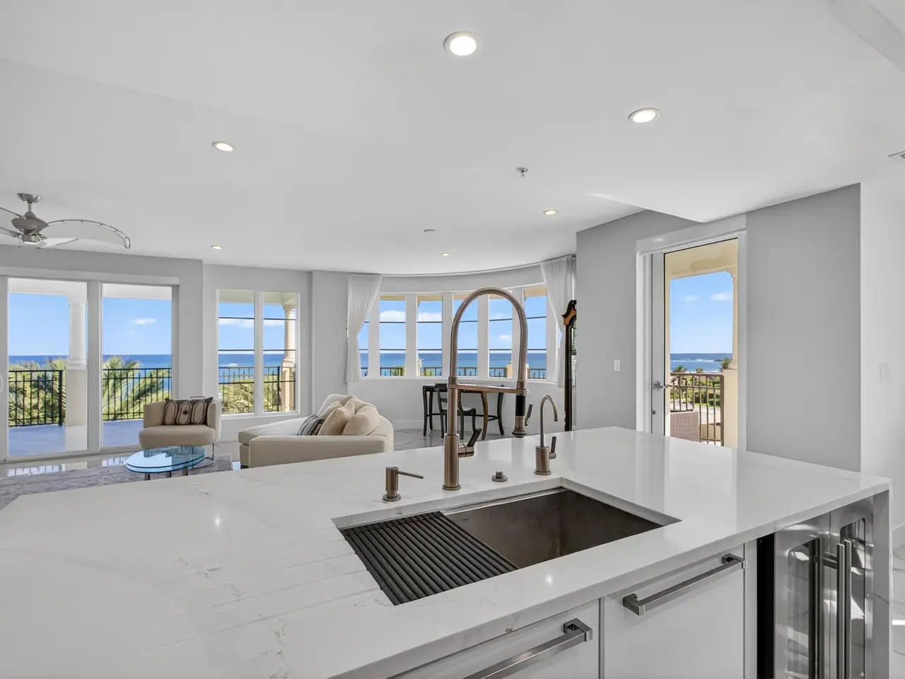 The finest oceanfront condominium in Palm Beach Shores. Exquisite, luxury boutique building with only 34 residences! Rarely available 3/3.5 SE corner w/3,295 a/c sf and 771 sf of covered balconies. Breathtaking ocean views! This gracious, move-in ready residence has been the recipient of recent high-end renovations, including: Kitchen remodel w/Sub-Zero, Wolf & Cove appliances, primary suite/bathroom remodel, custom living & dining room built-ins, large format porcelain floors, powder rm & secondary baths upgrades. A/C units (2019). Resort-style amenities, including an amazing South Beach-style pool area. 150' of deep, sandy beach w/+/- 280' dune. 2 garage spaces, EV charging stations. Reserve Study Completed! No Assessments! Only 7 mi to Palm Beach, 13 mi to PBIA!